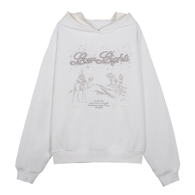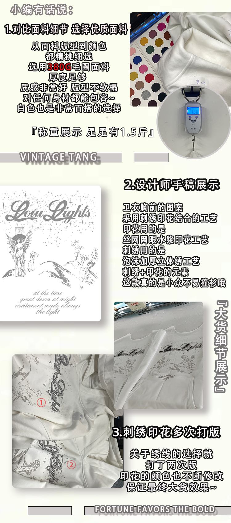 VintageTang美式復古白色380G重工刺繡印花oversize連帽運動衫吉叄