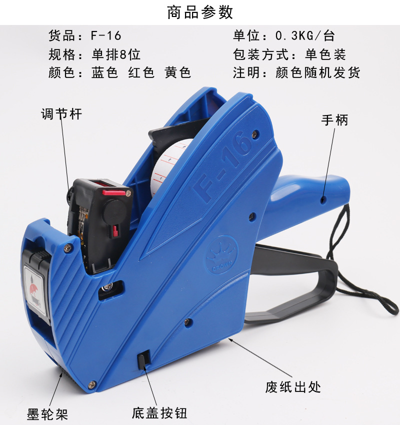 皇冠F-16标单排价机 8位打码机打价机标价器打价器带纸全英文包装