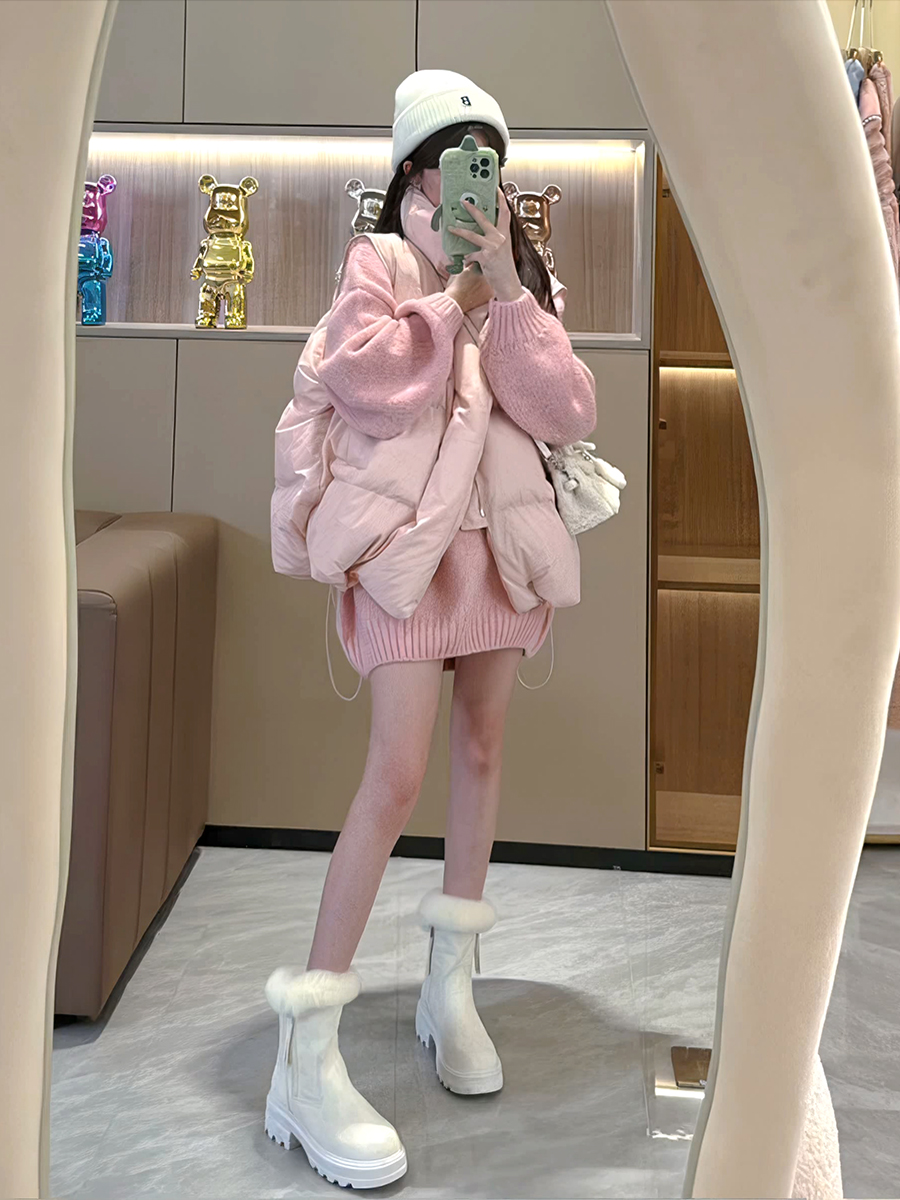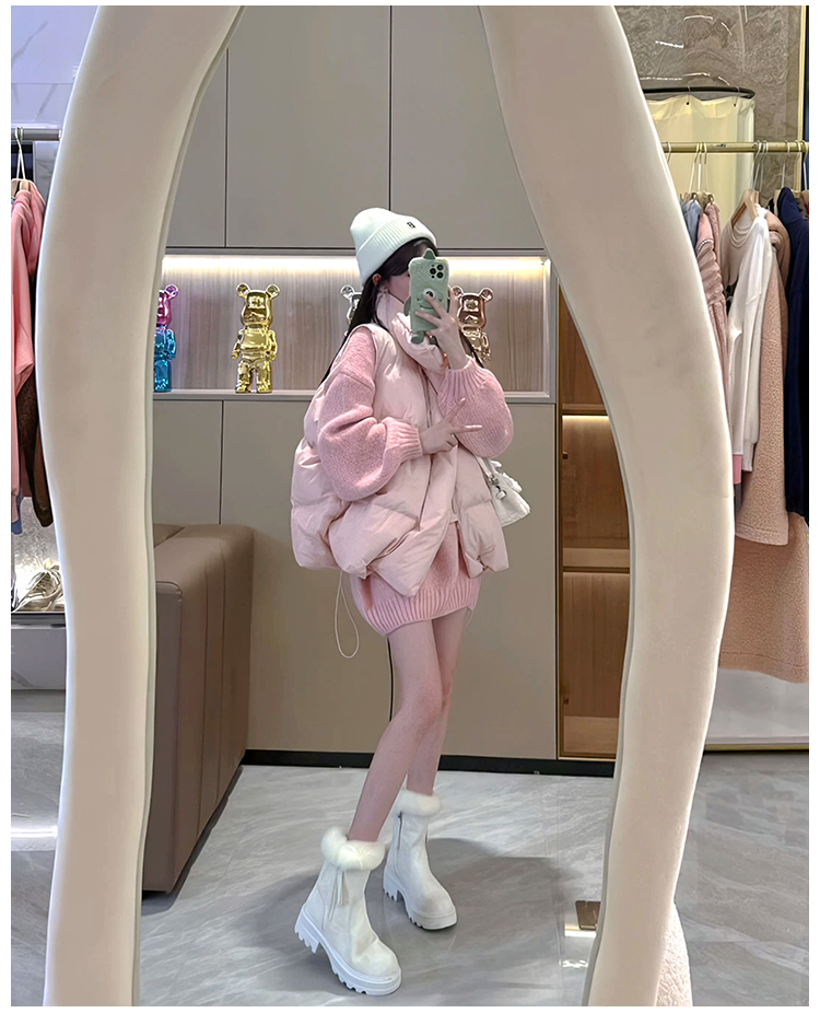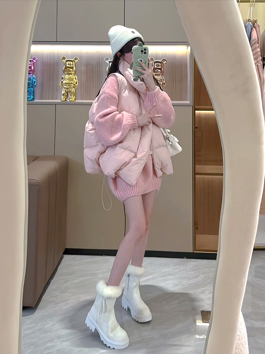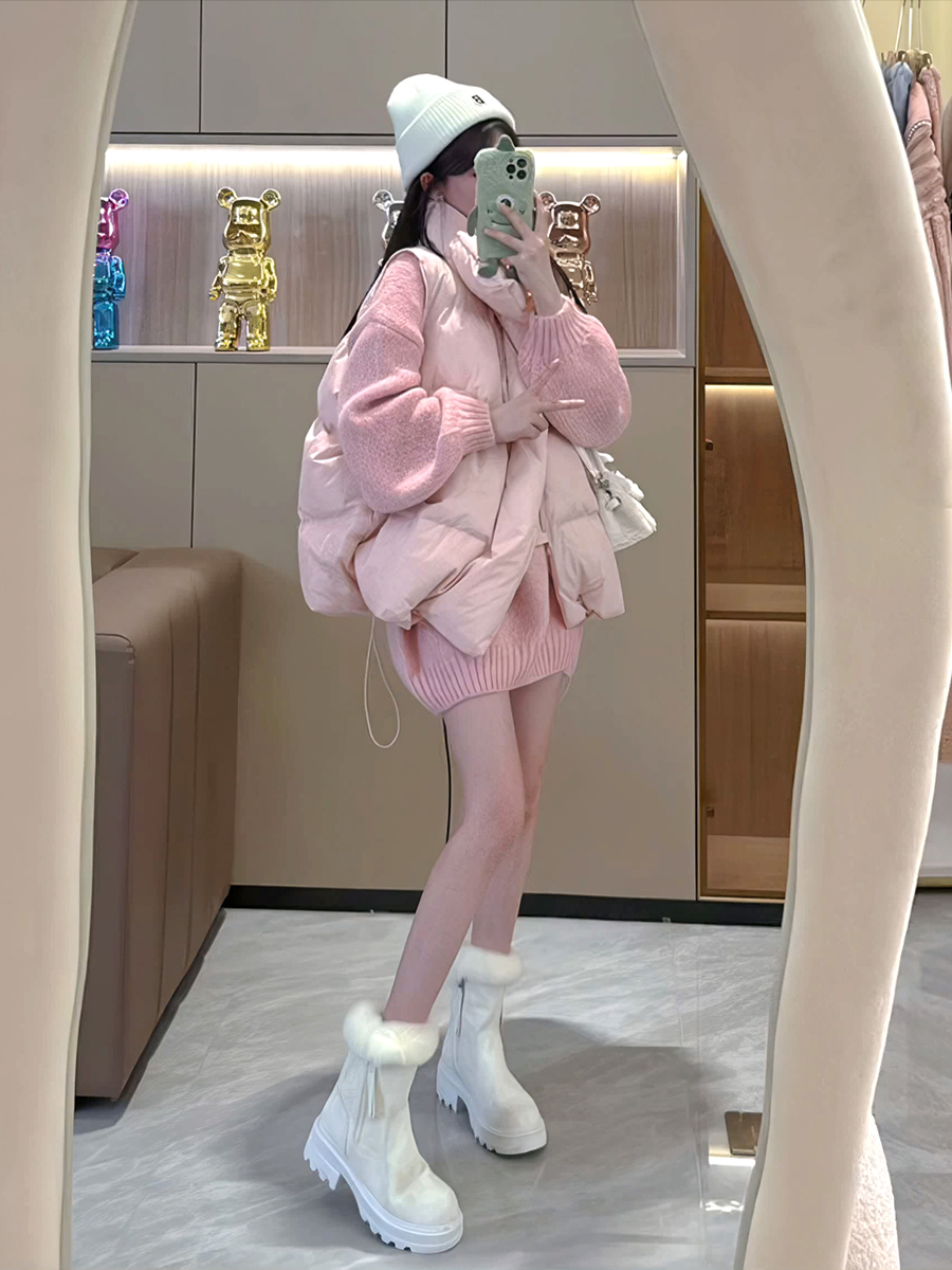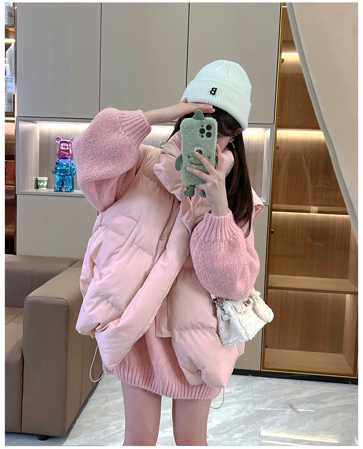 羽絨棉服馬甲女2023年秋冬季新款百搭短款坎肩粉色背心甜美外套