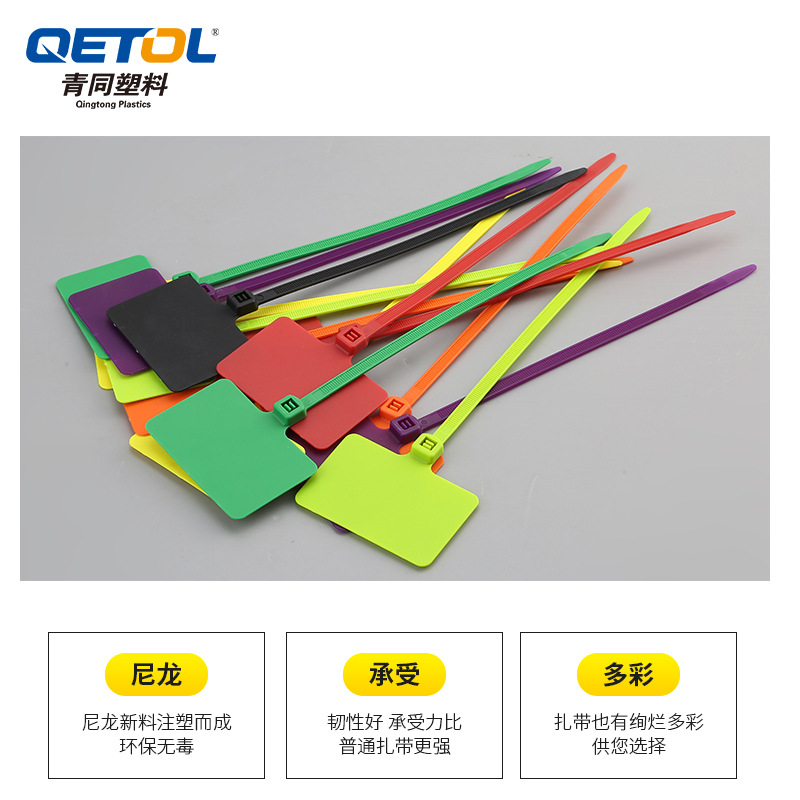 尼龙防水标牌扎带批发加粗印字线路一次性彩色物流标签标牌扎带