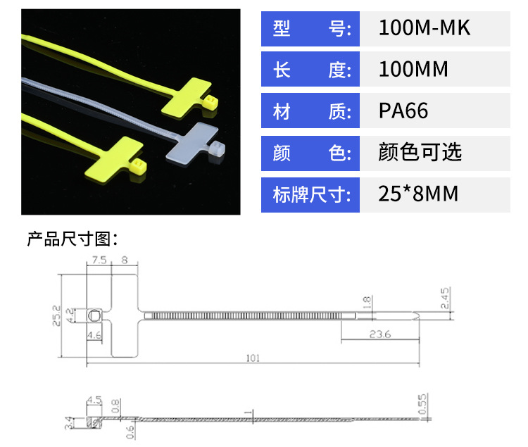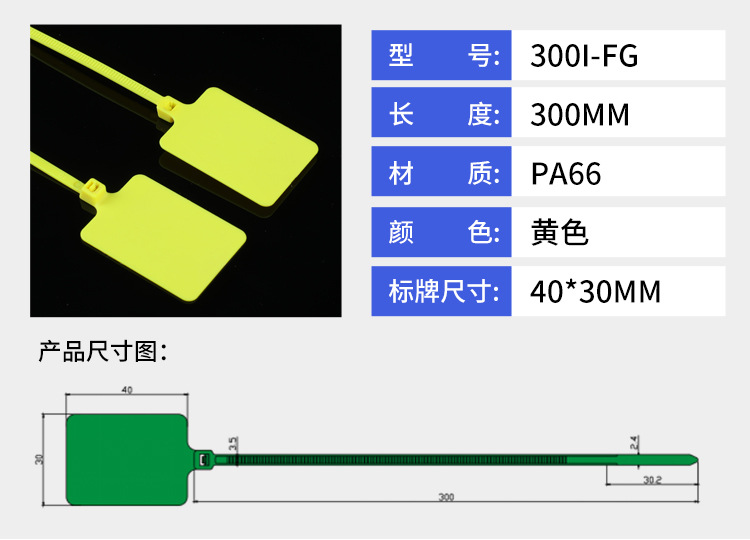 扎带 标牌绑扎带 可印字 200S-MK防拆标识 黄橙绿白黑 标牌扎带