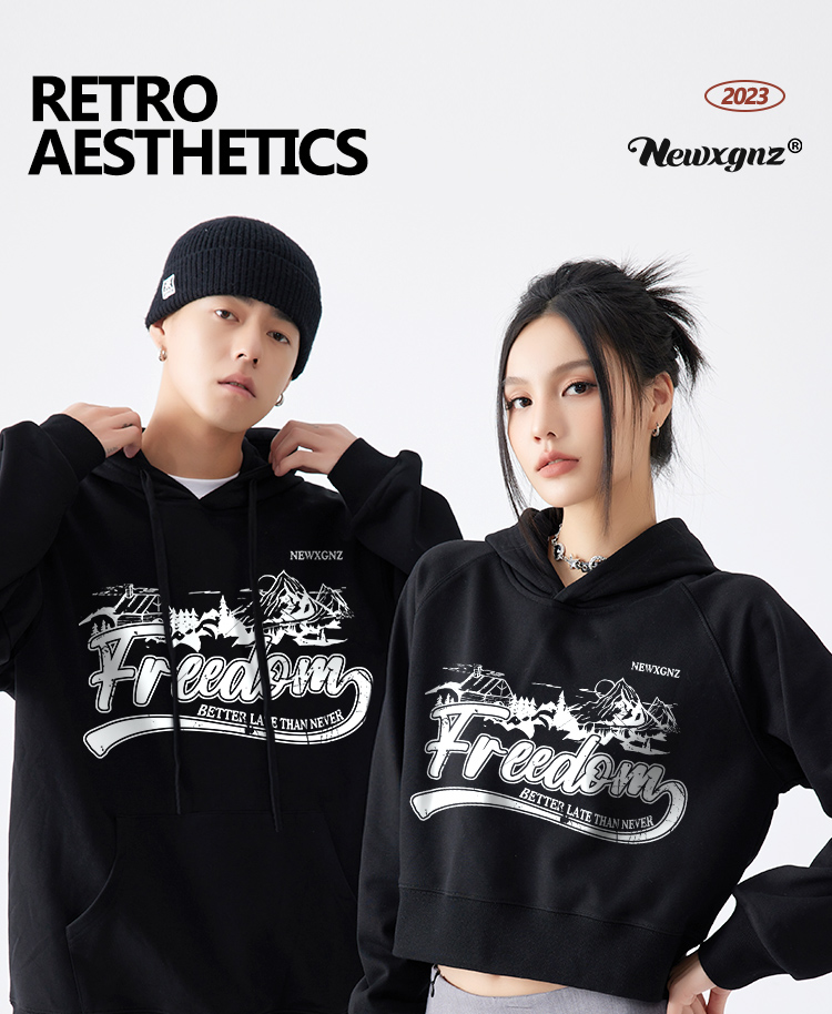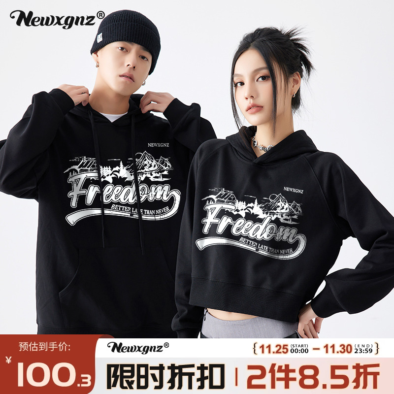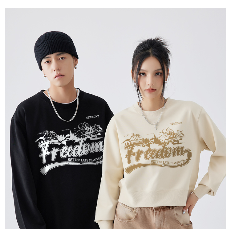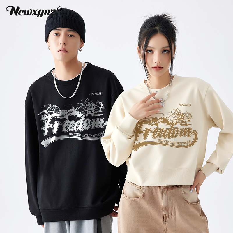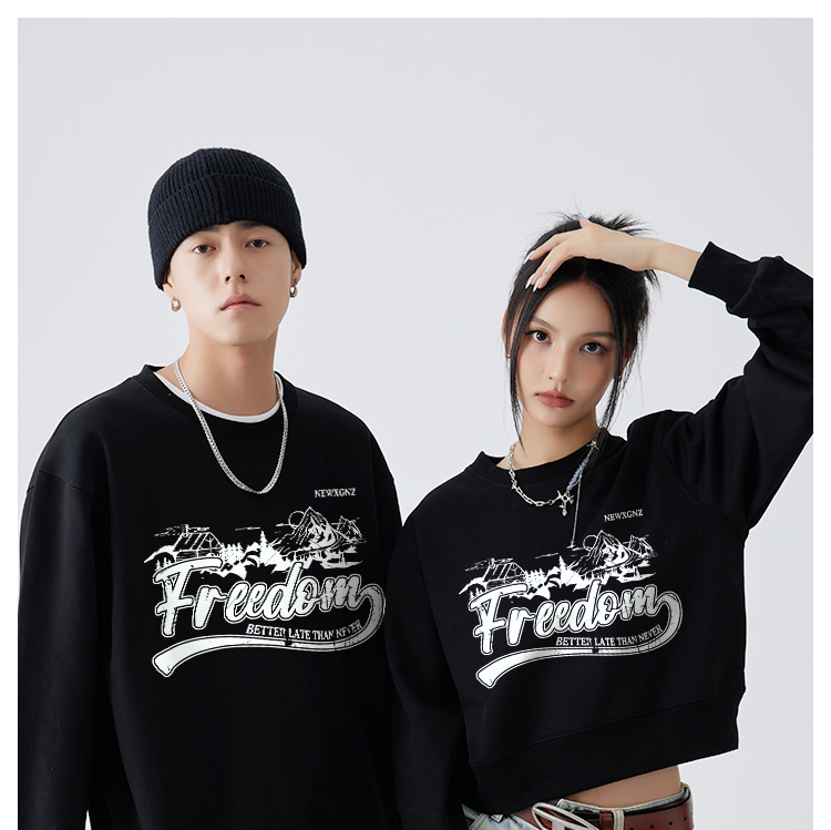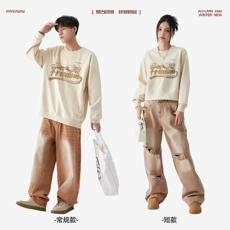 特別的情侶裝厚T恤美式復古寬鬆設計感短款男女情侶裝秋季印花潮牌