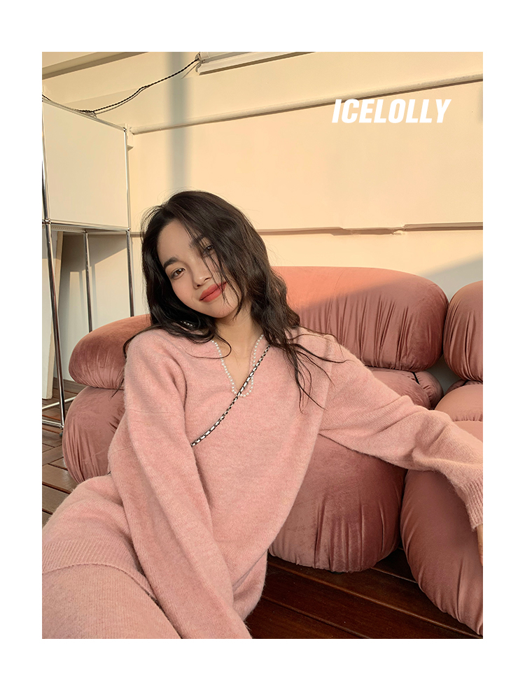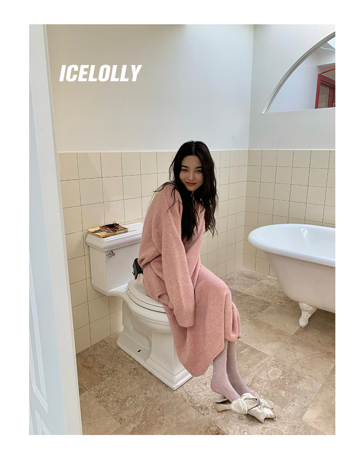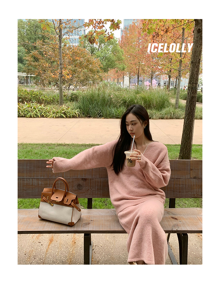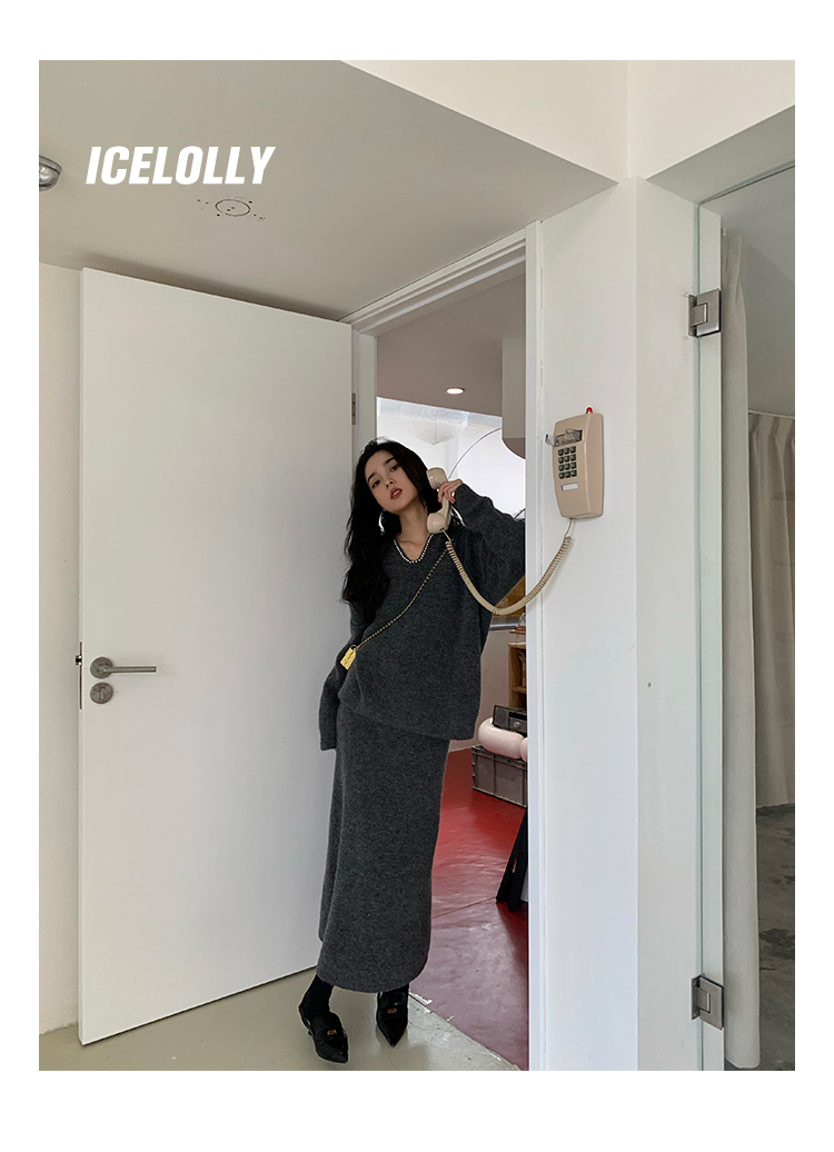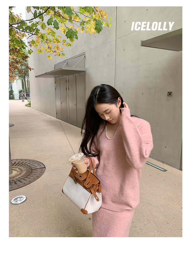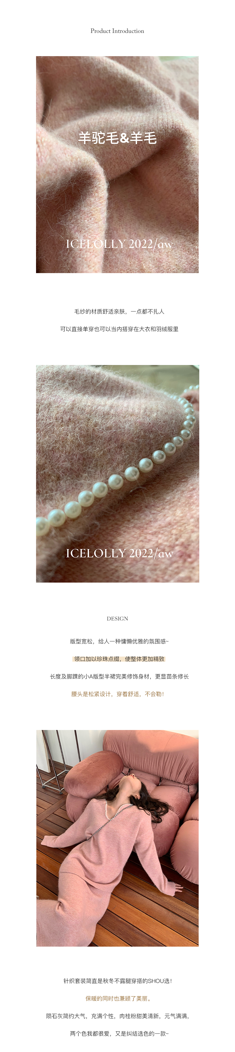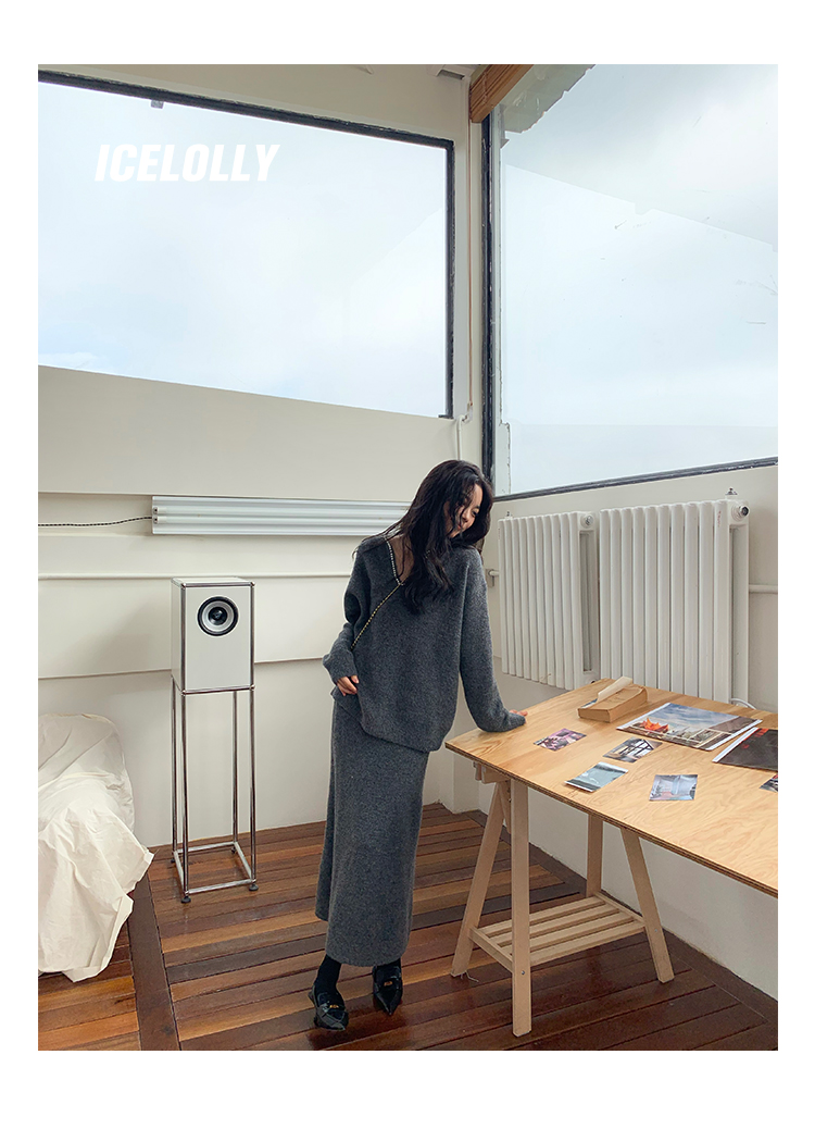 顏色分類 隕石灰 套衫.,肉桂粉 套衫.,隕石灰 半裙.,肉桂粉 半裙.