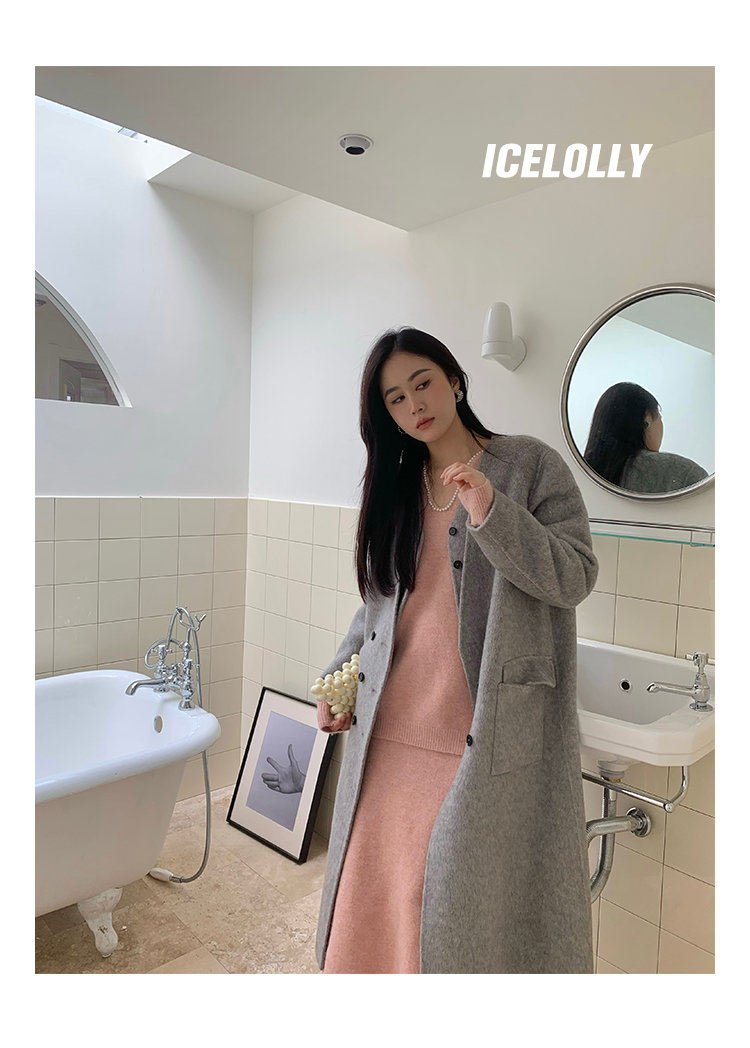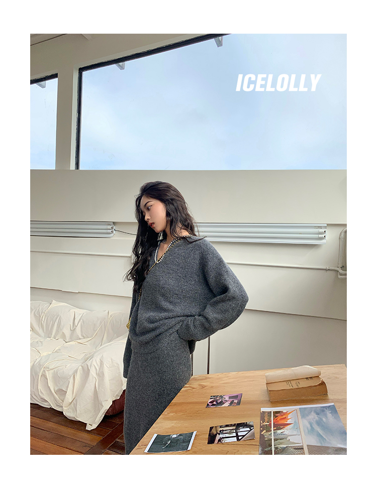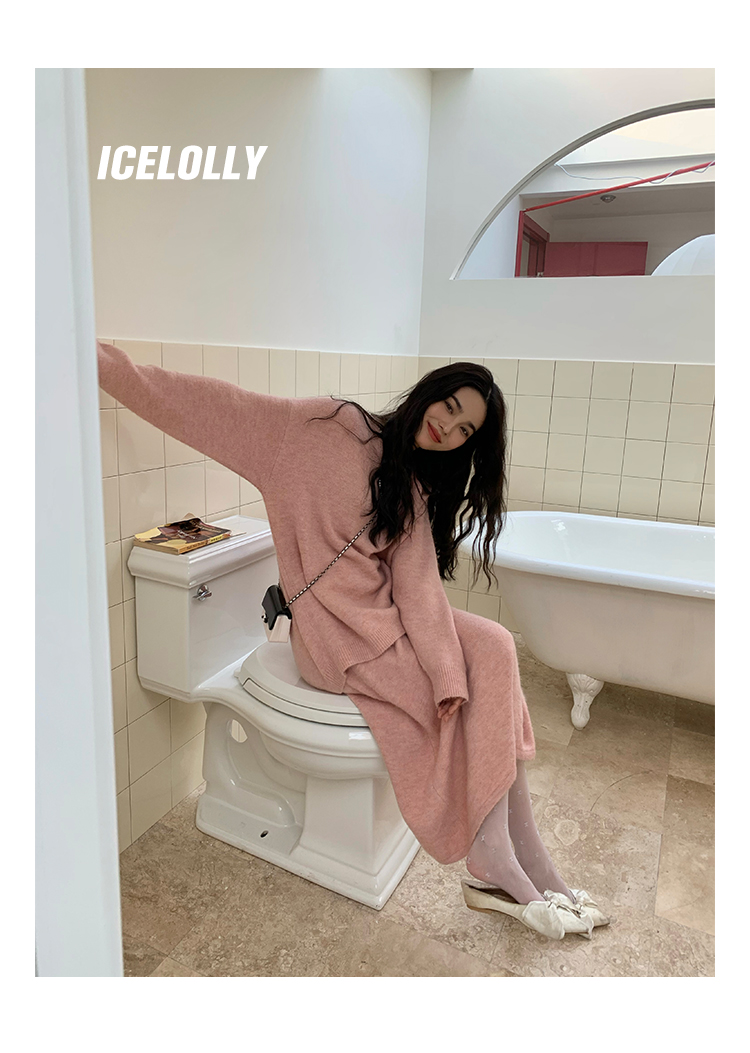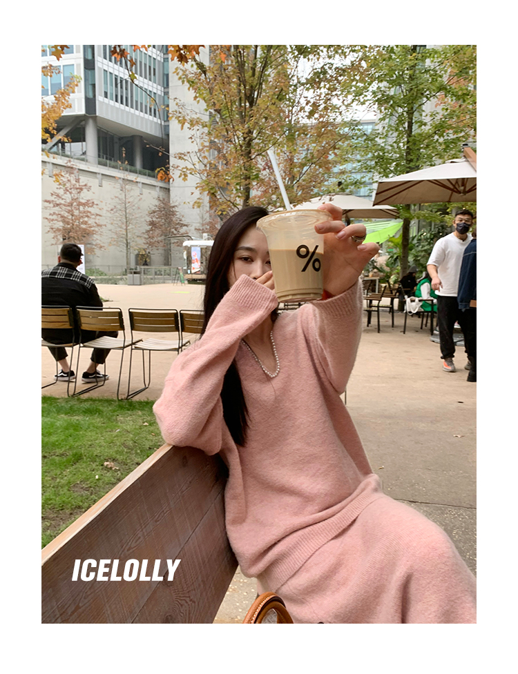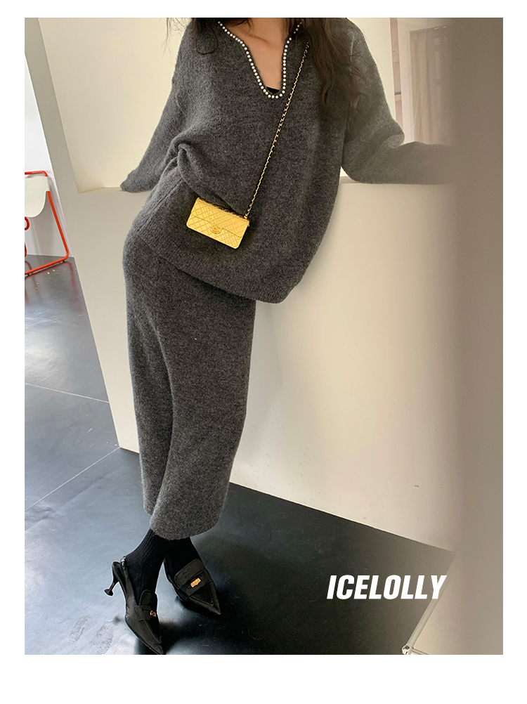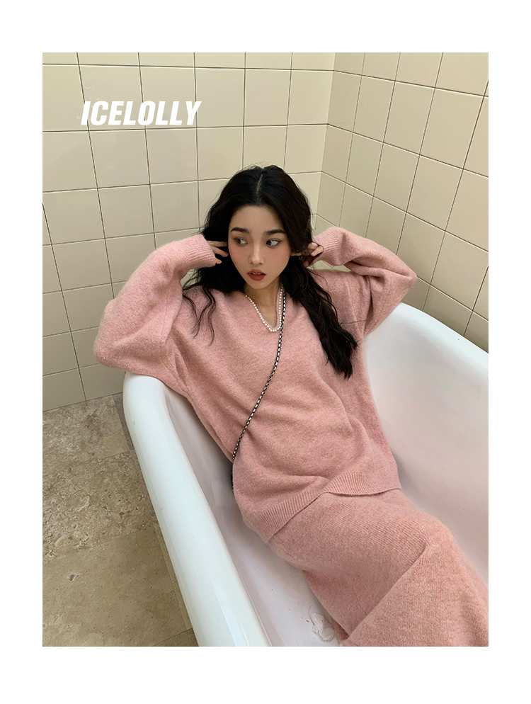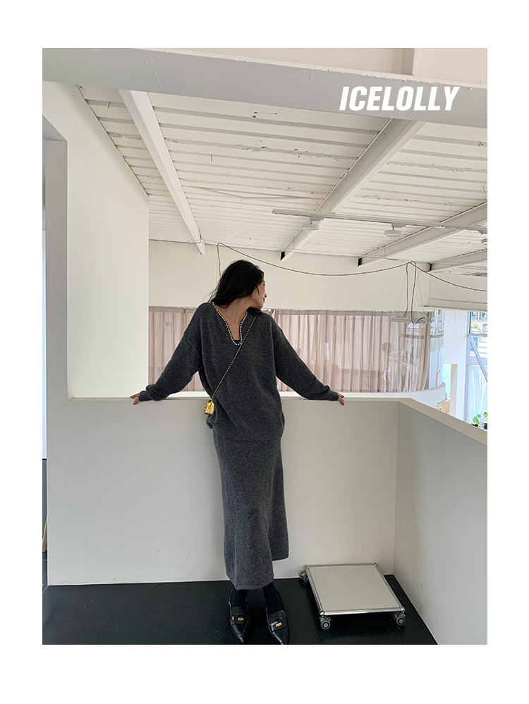 顏色分類 隕石灰 套衫.,肉桂粉 套衫.,隕石灰 半裙.,肉桂粉 半裙.
