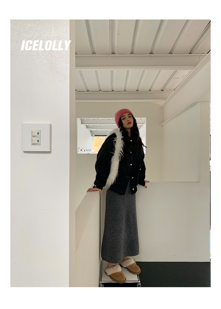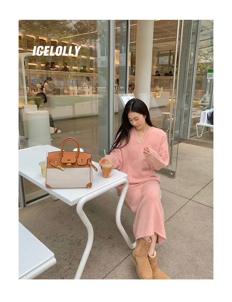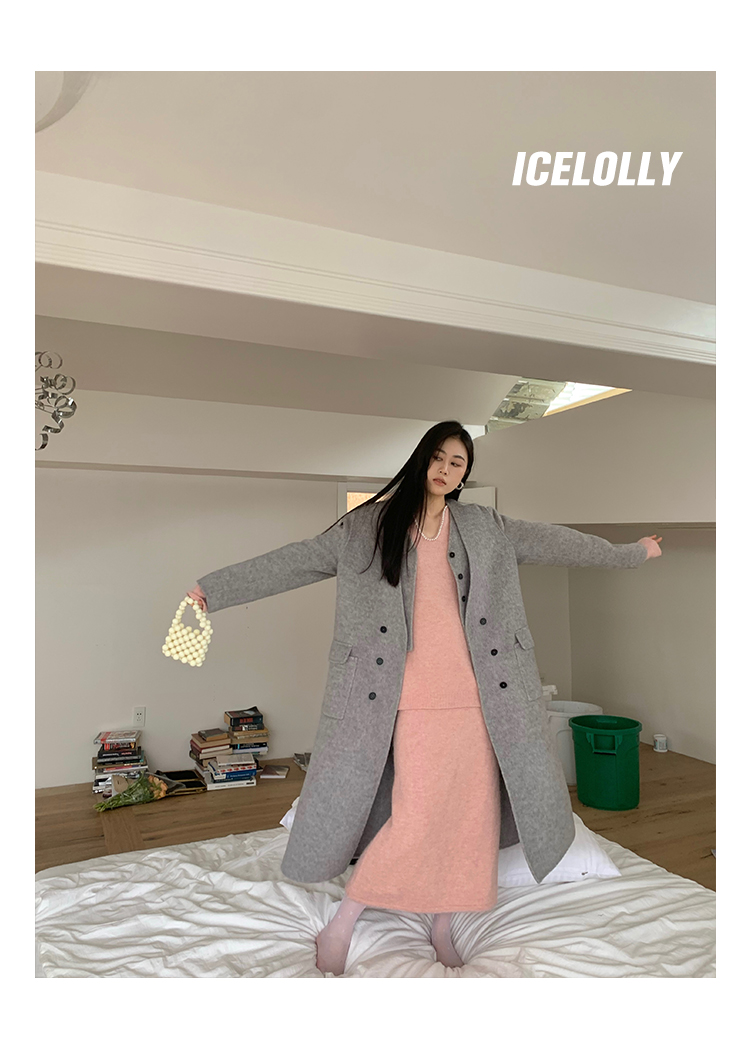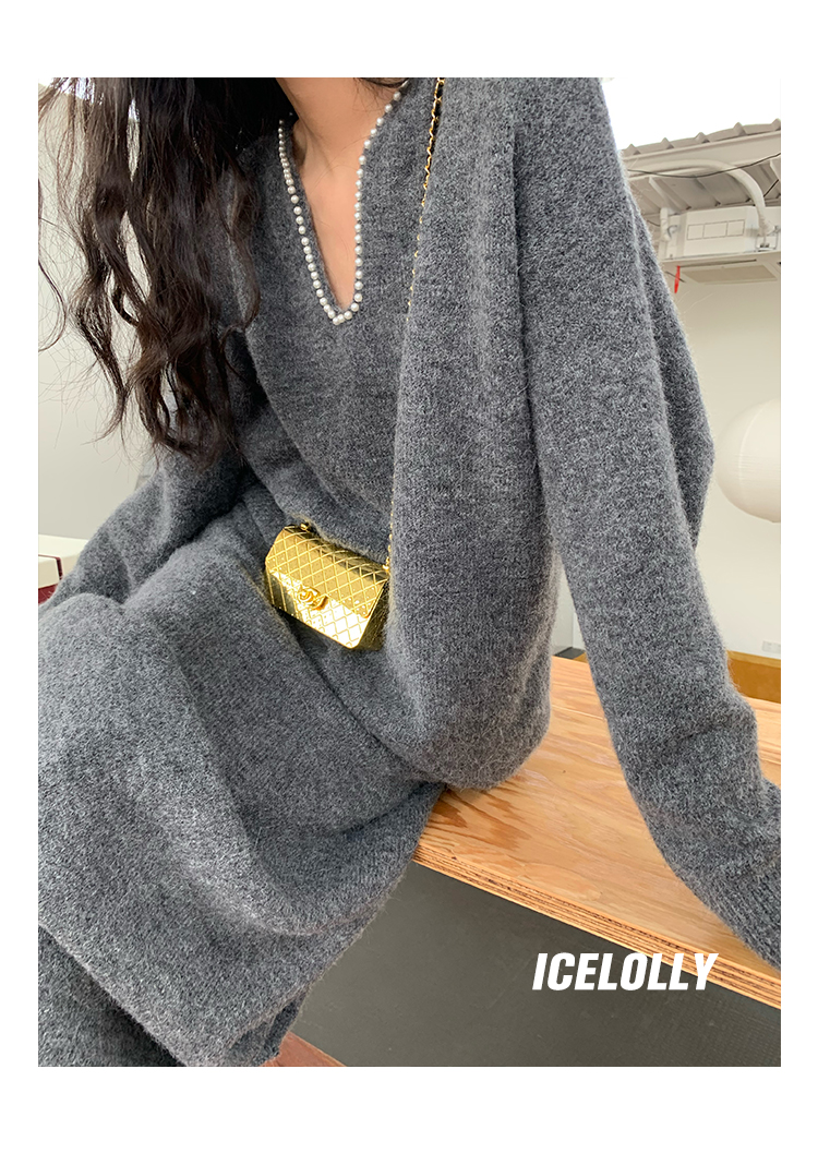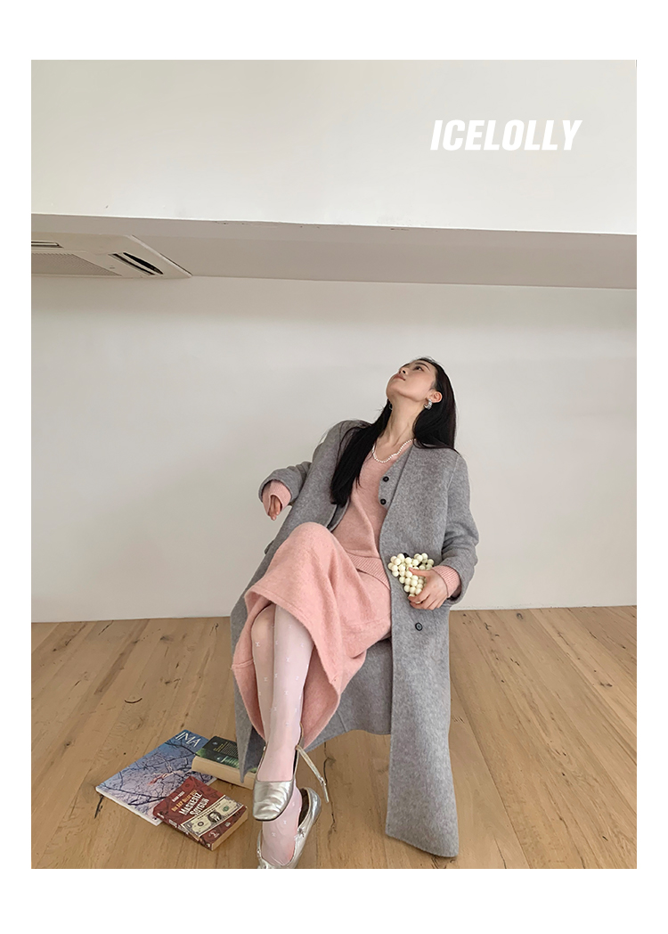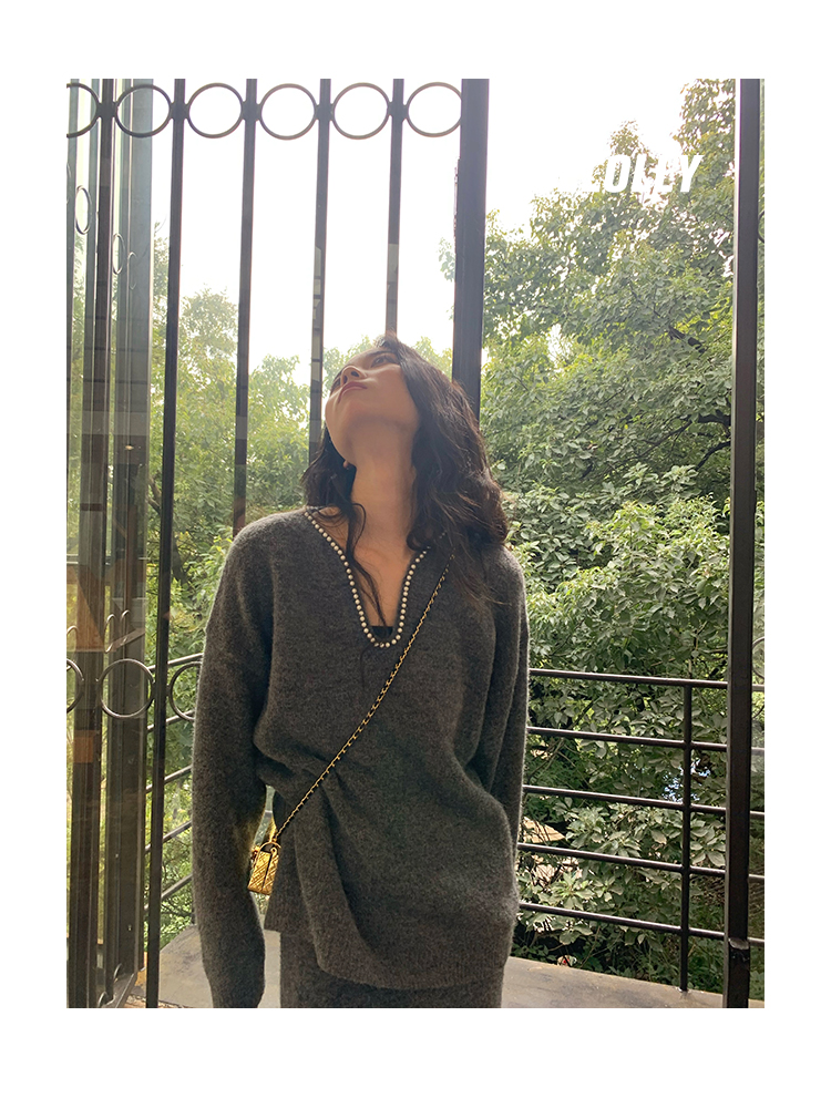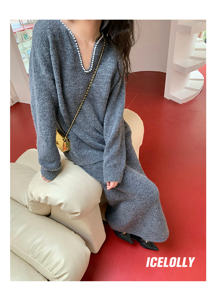 顏色分類 隕石灰 套衫.,肉桂粉 套衫.,隕石灰 半裙.,肉桂粉 半裙.