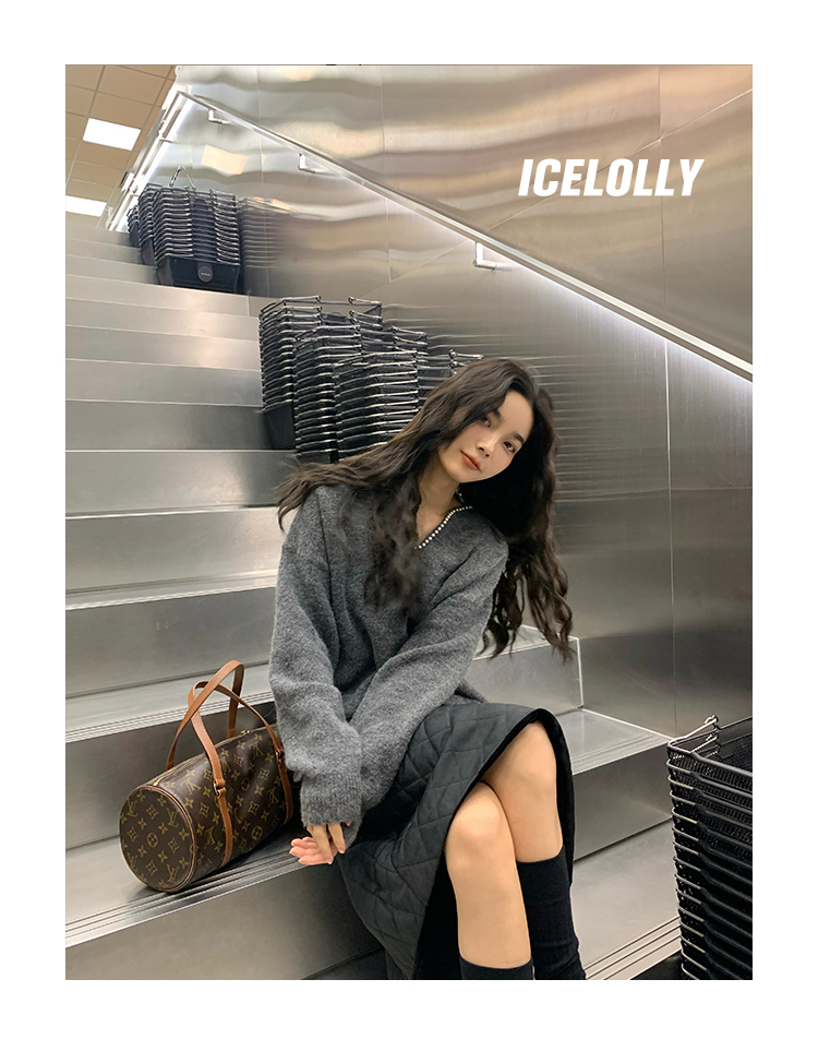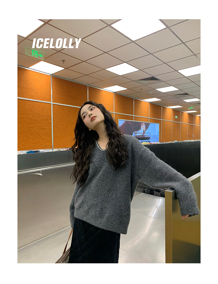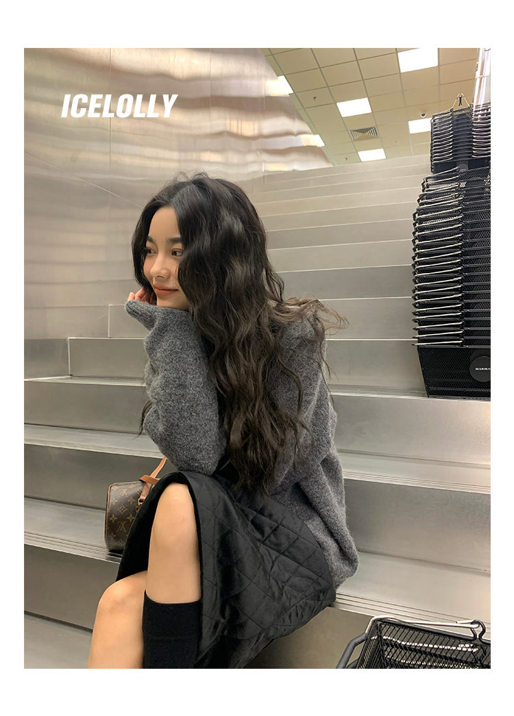 ICELOLLY羊毛設計感炸街毛衣女秋冬季2022爆款內搭加厚針織打底衫