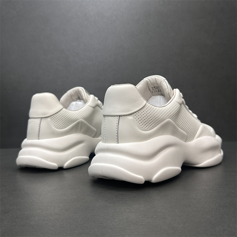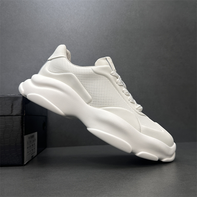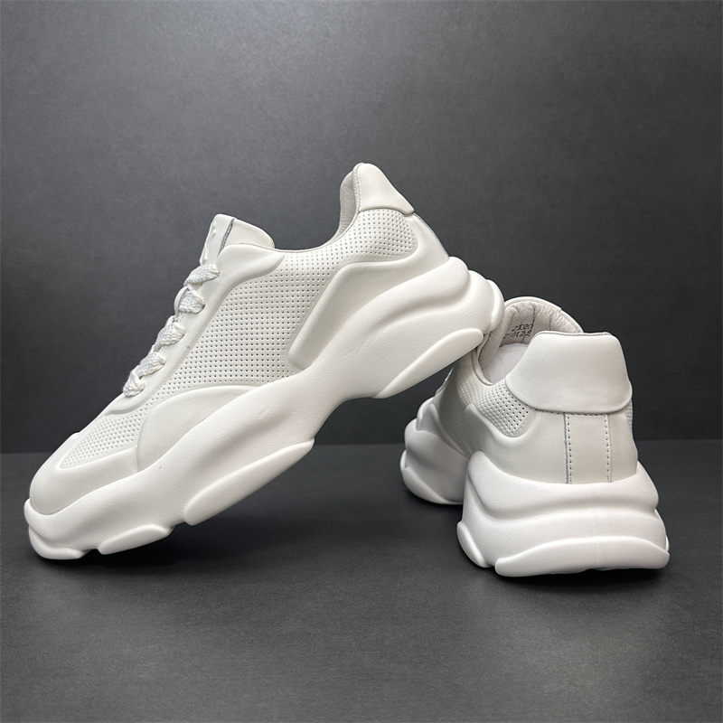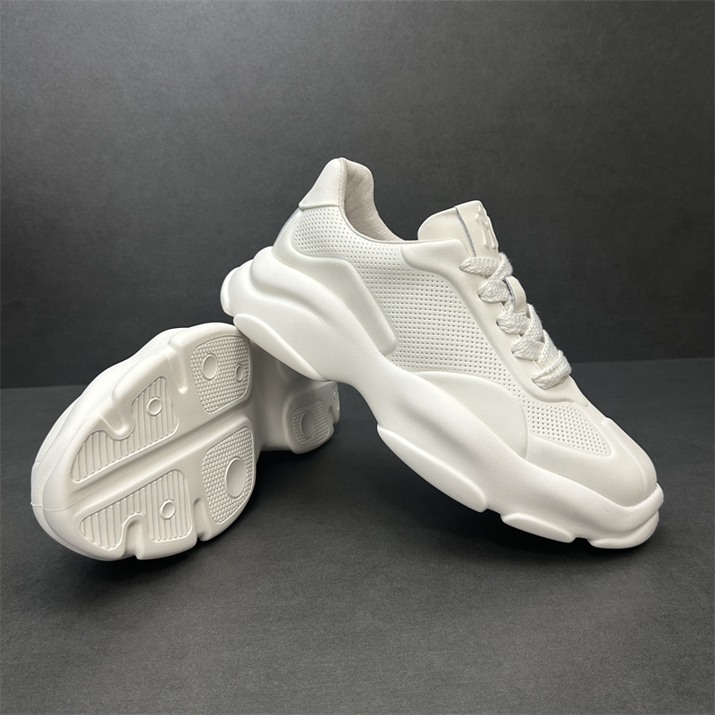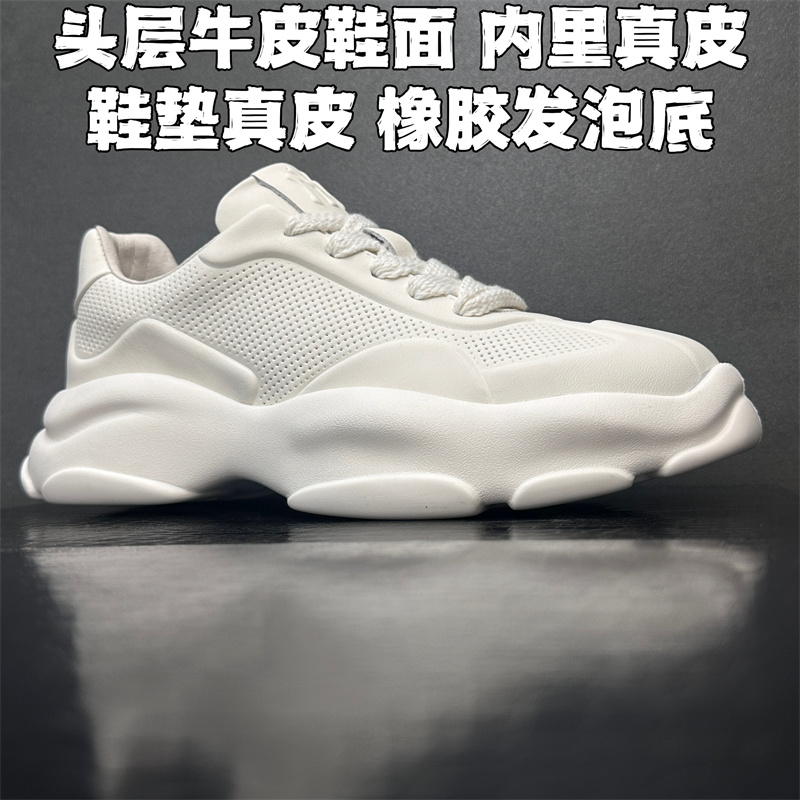 2023歐洲站新款潮鞋頭層牛皮透氣運動休閒鞋真皮厚底增高純色男鞋