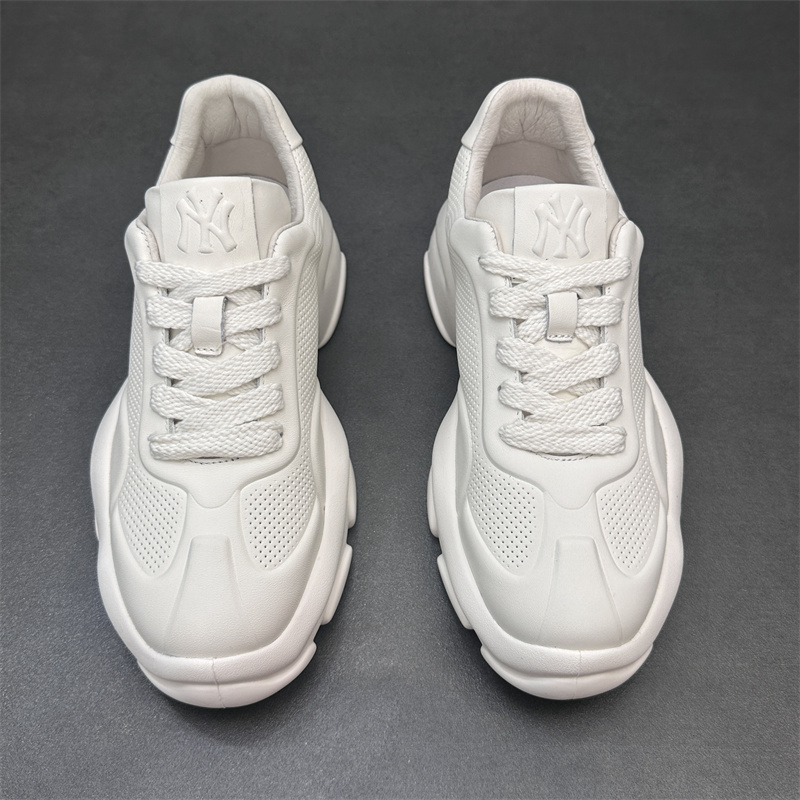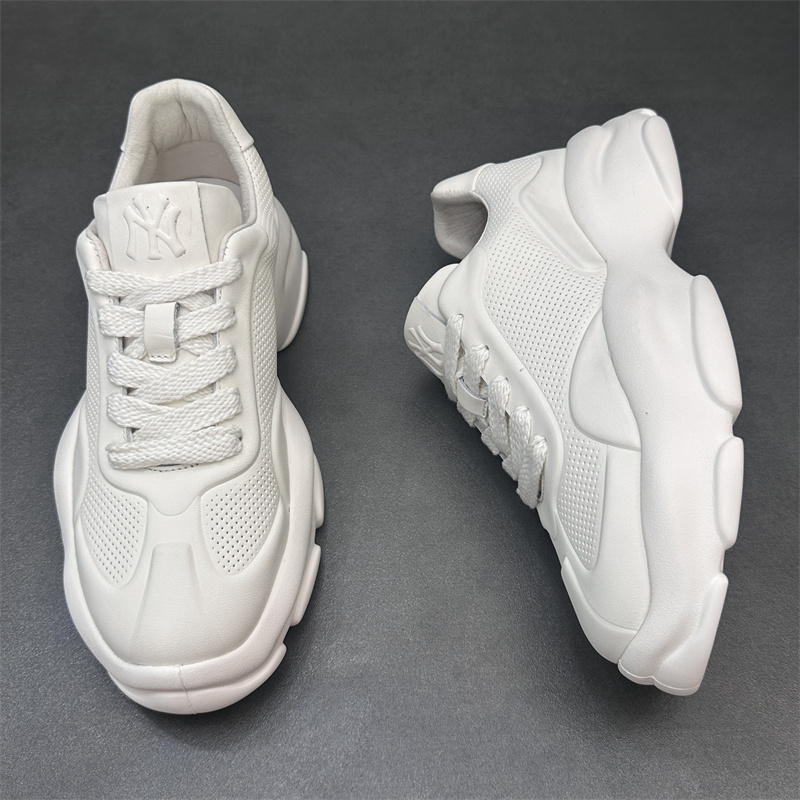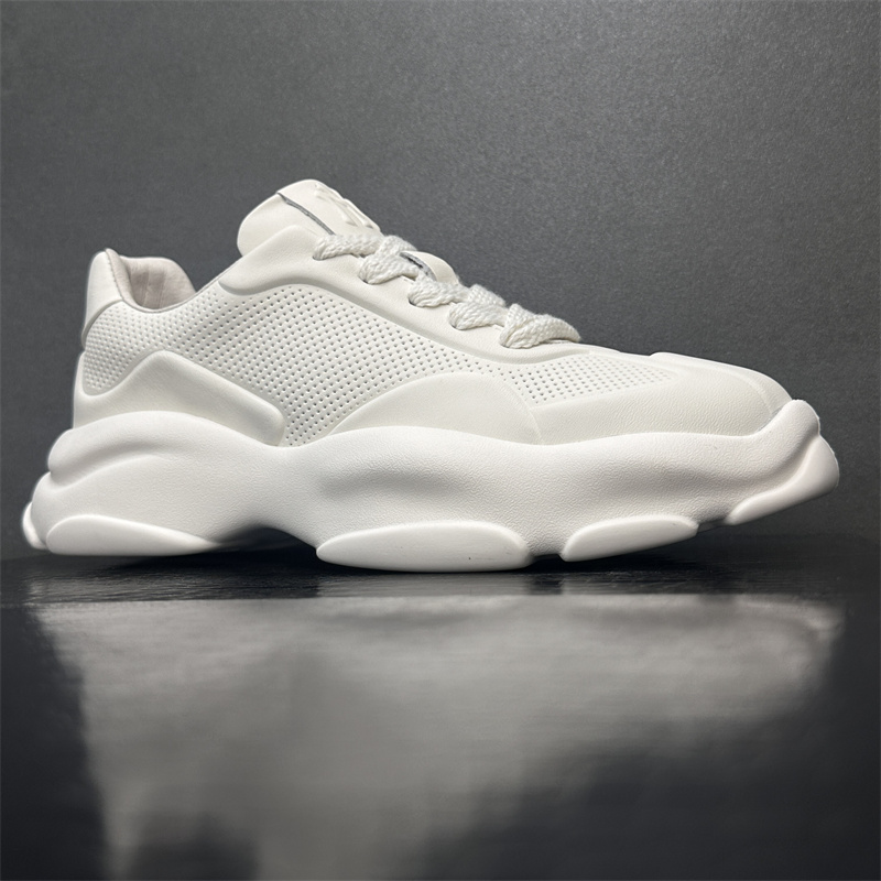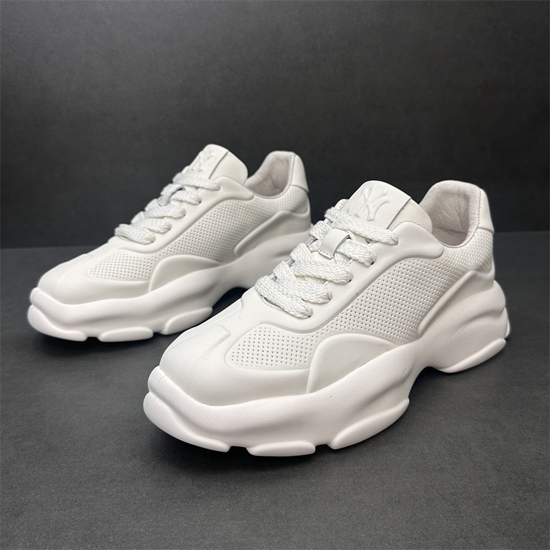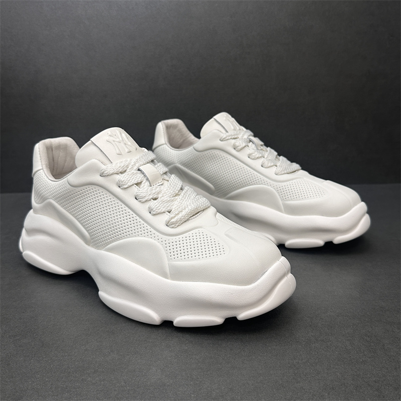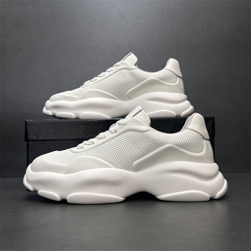 2023歐洲站新款潮鞋頭層牛皮透氣運動休閒鞋真皮厚底增高純色男鞋
