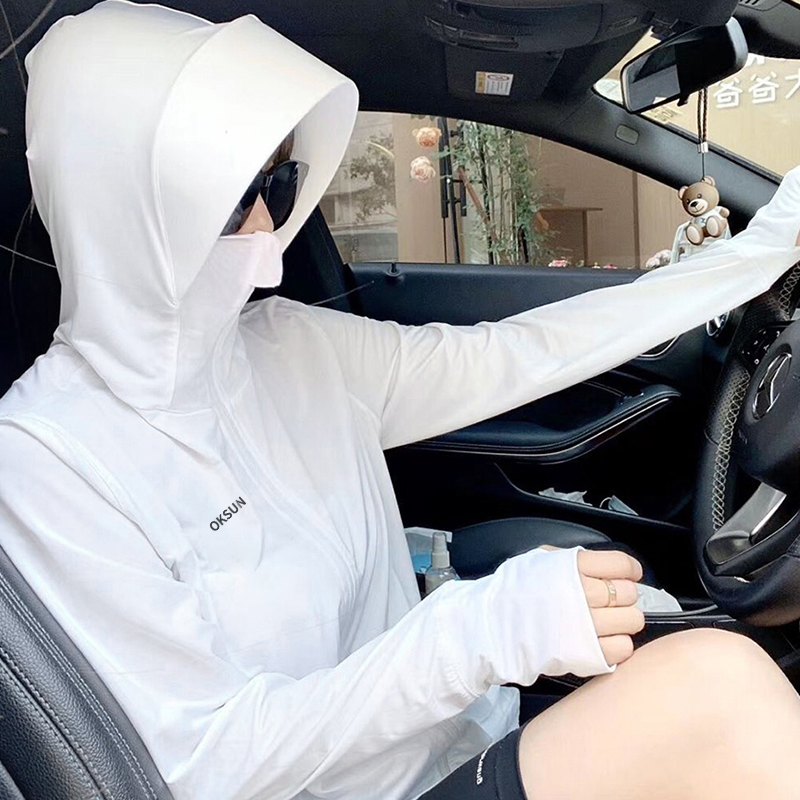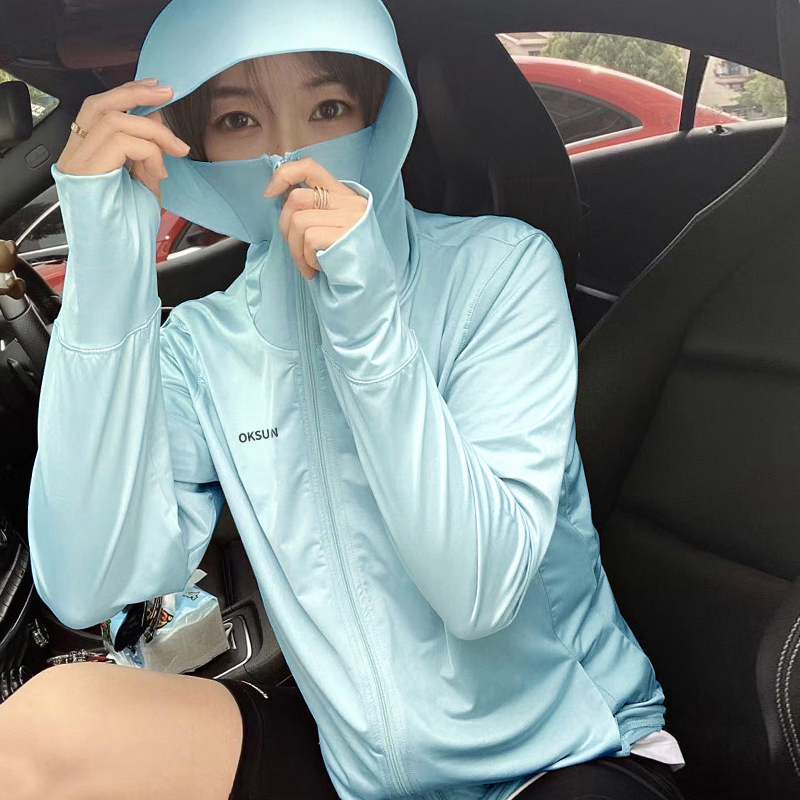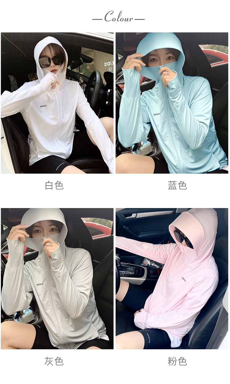 冰絲夏季防曬衣女薄外套2023新款長袖罩衫開衫連帽透氣騎車防曬服
