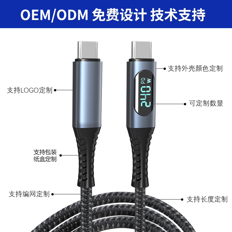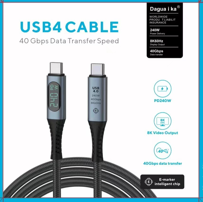 跨境TYPE-C带数显40GBPS传输240W充电USB-C视频8KUSB4雷电4数据线