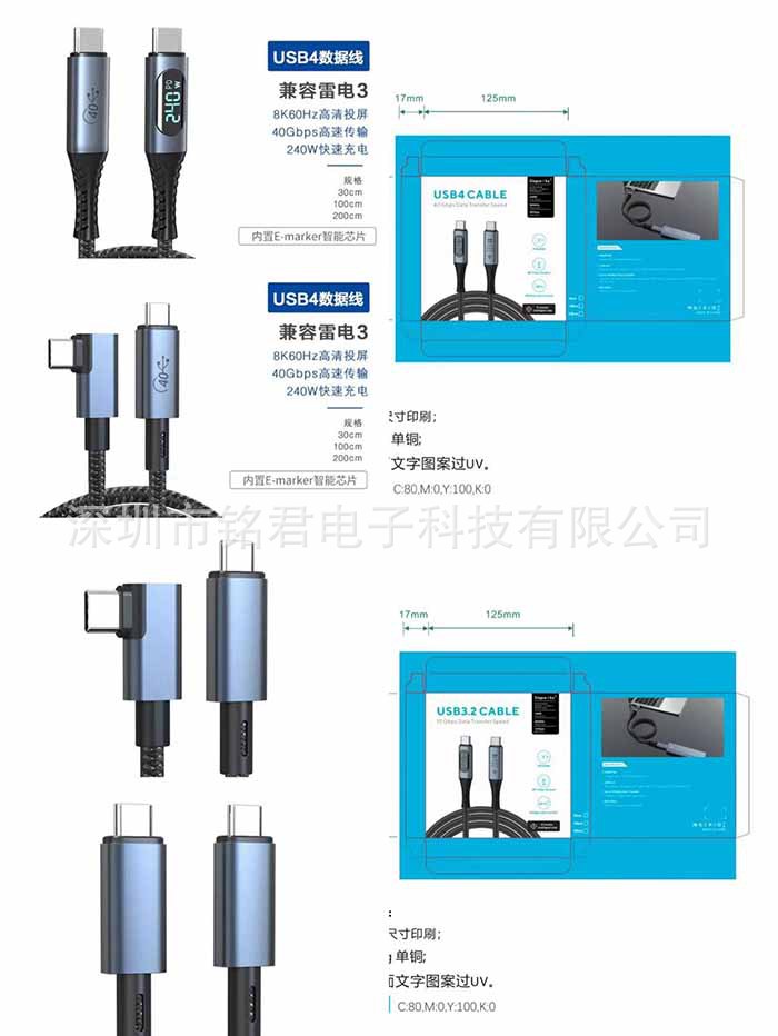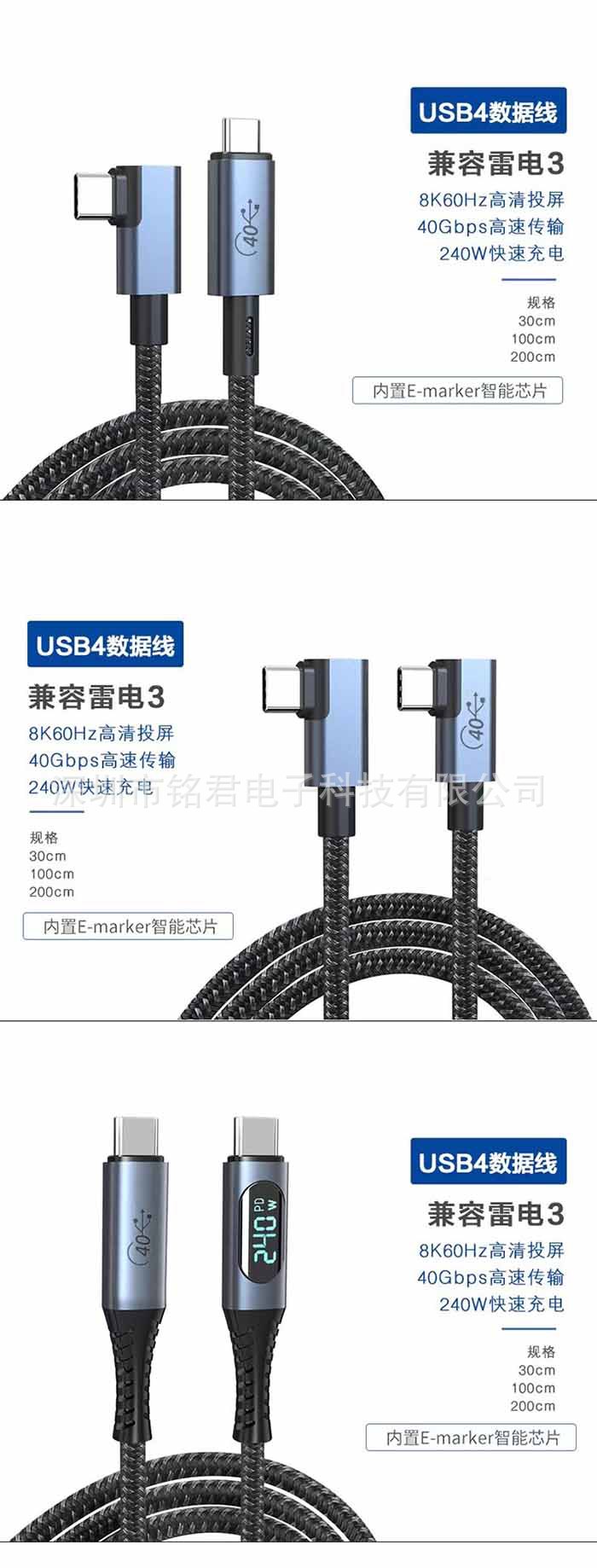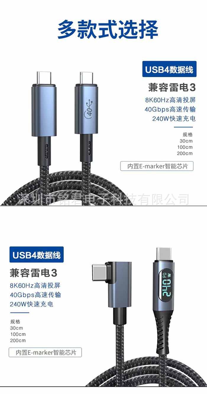 型号 USB3.2数显100W10GB(1m),USB4数显240W40GB(1米),USB4数显240w40GB(1.2米)