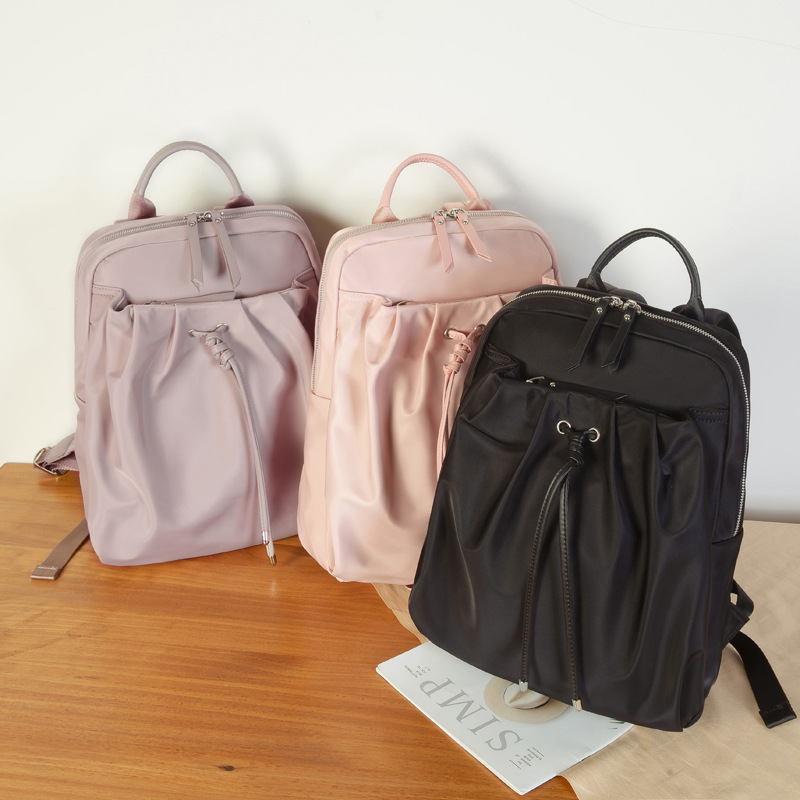双肩包女2024新款牛津布抽绳休闲学生书包时尚大容量简约百搭背包