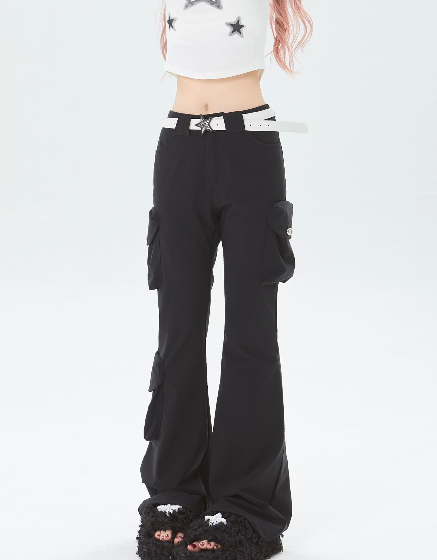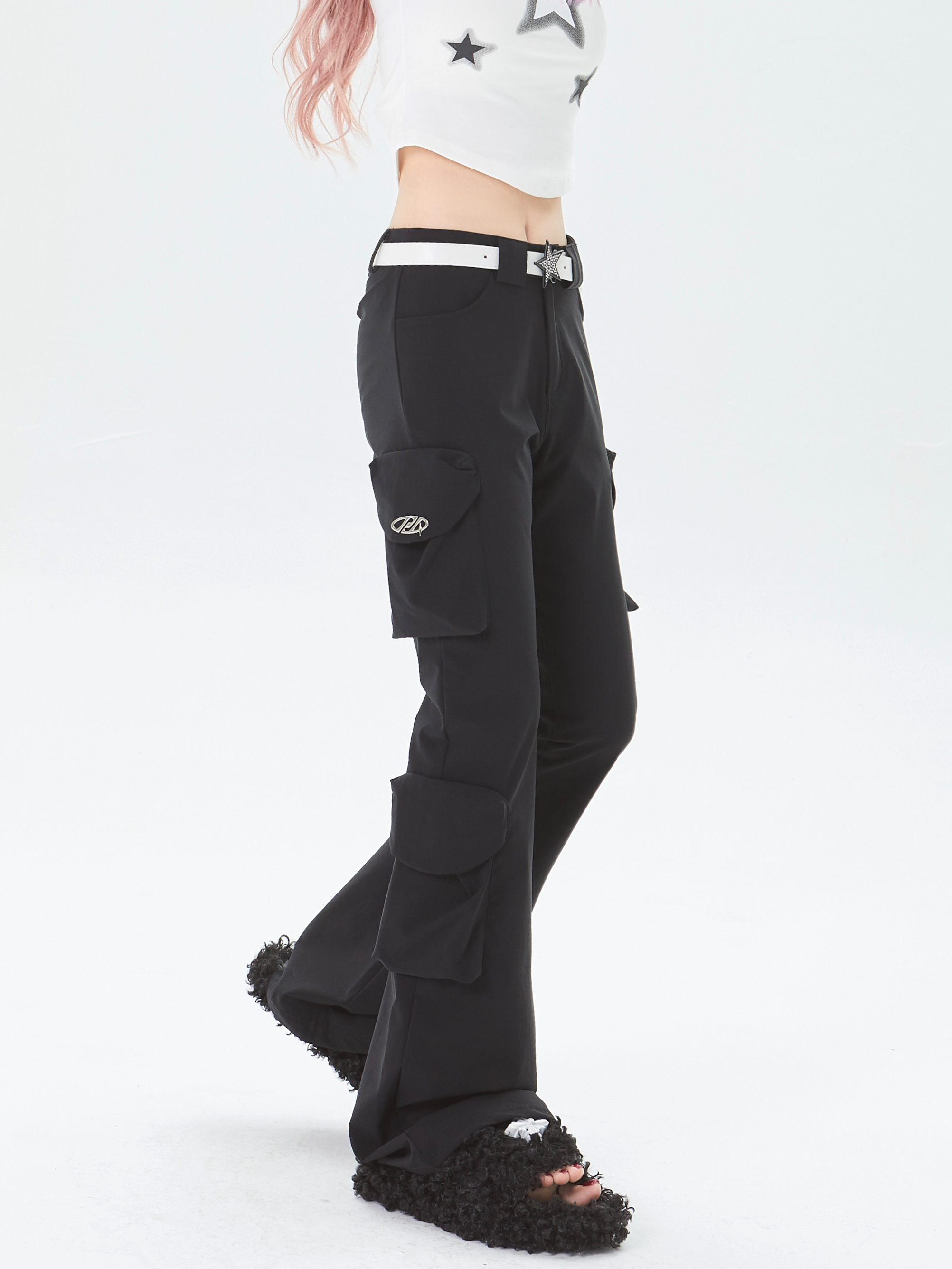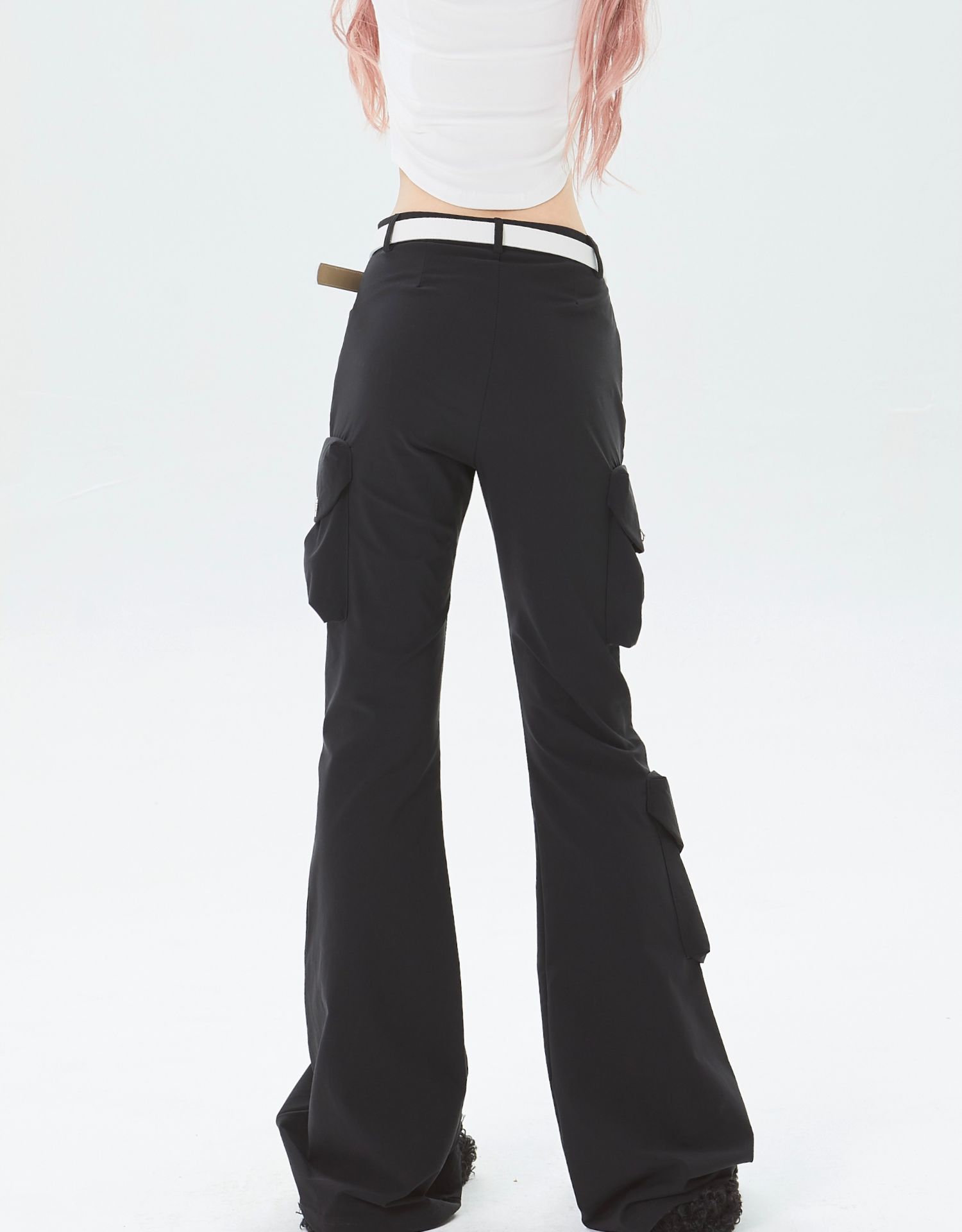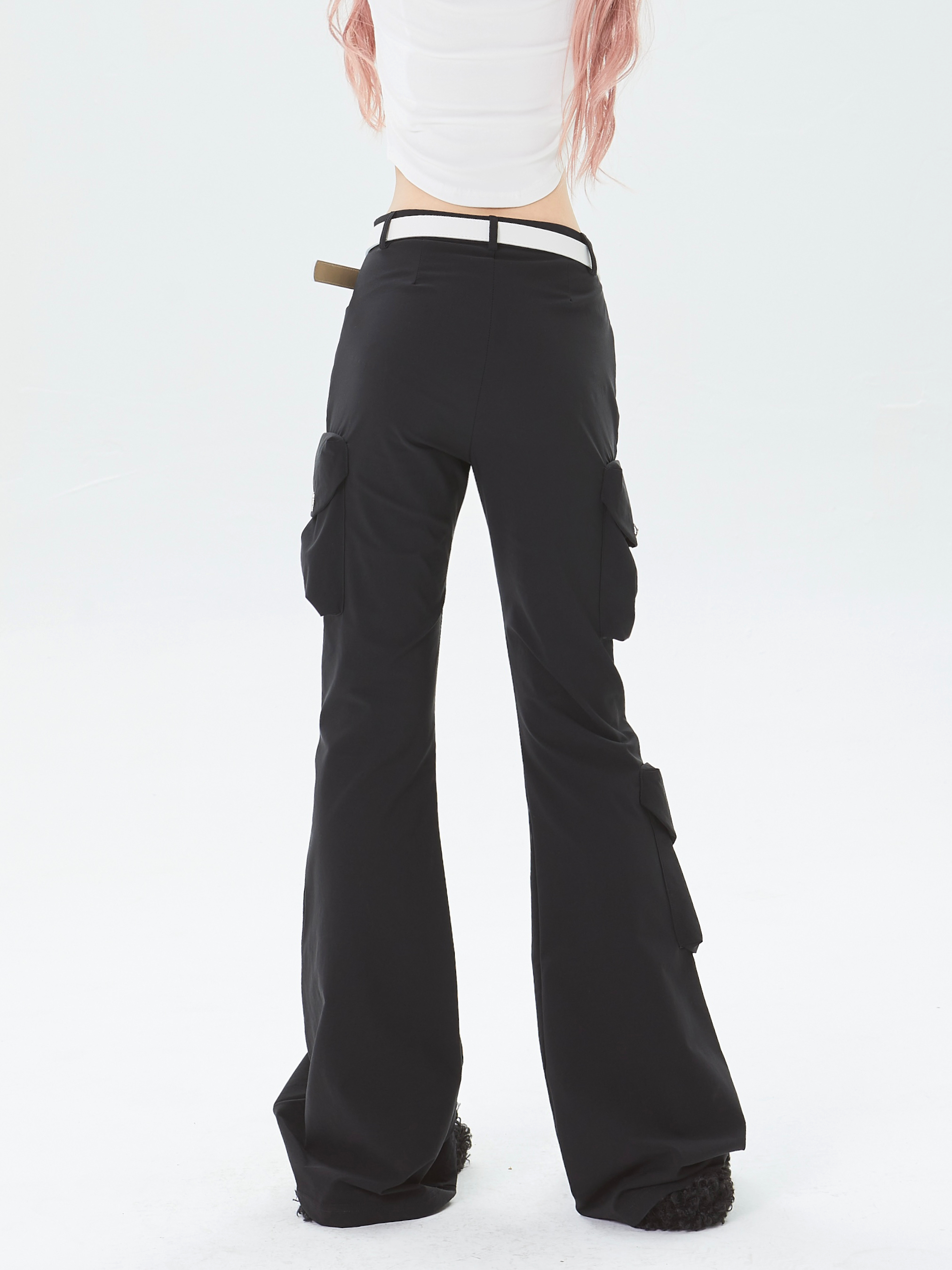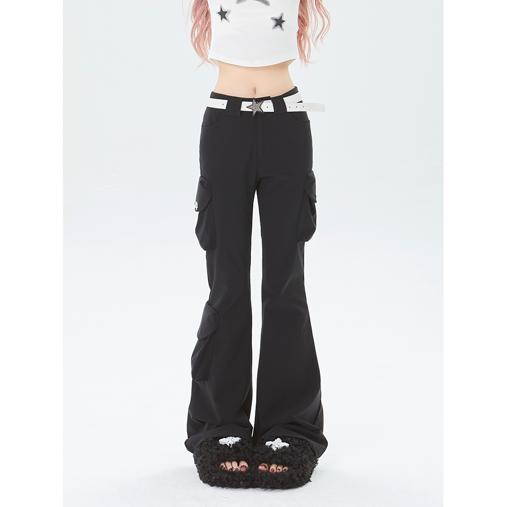 x不是好人 美式微喇叭工裝褲立體多口袋辣妹修身顯瘦微彈休閒褲子