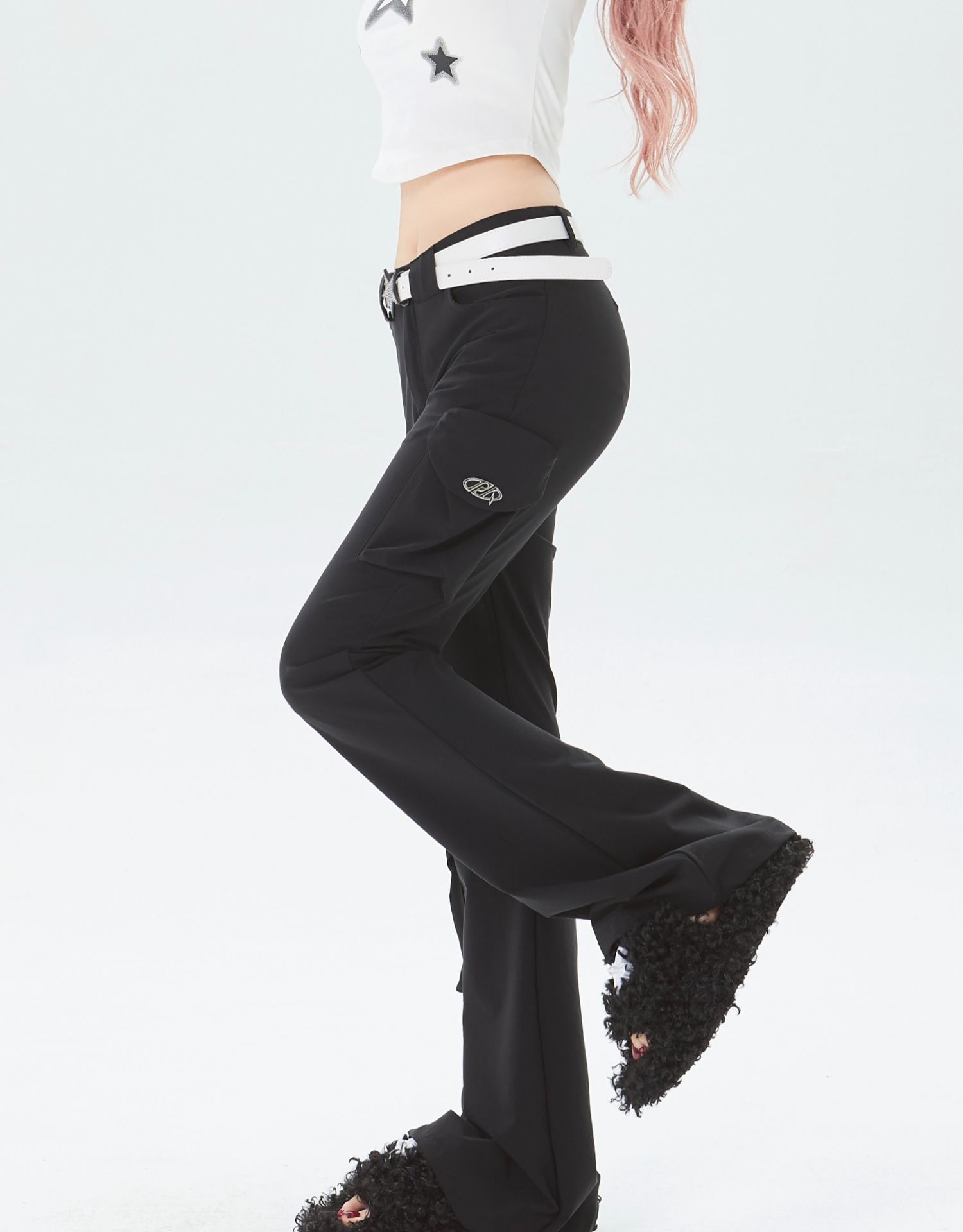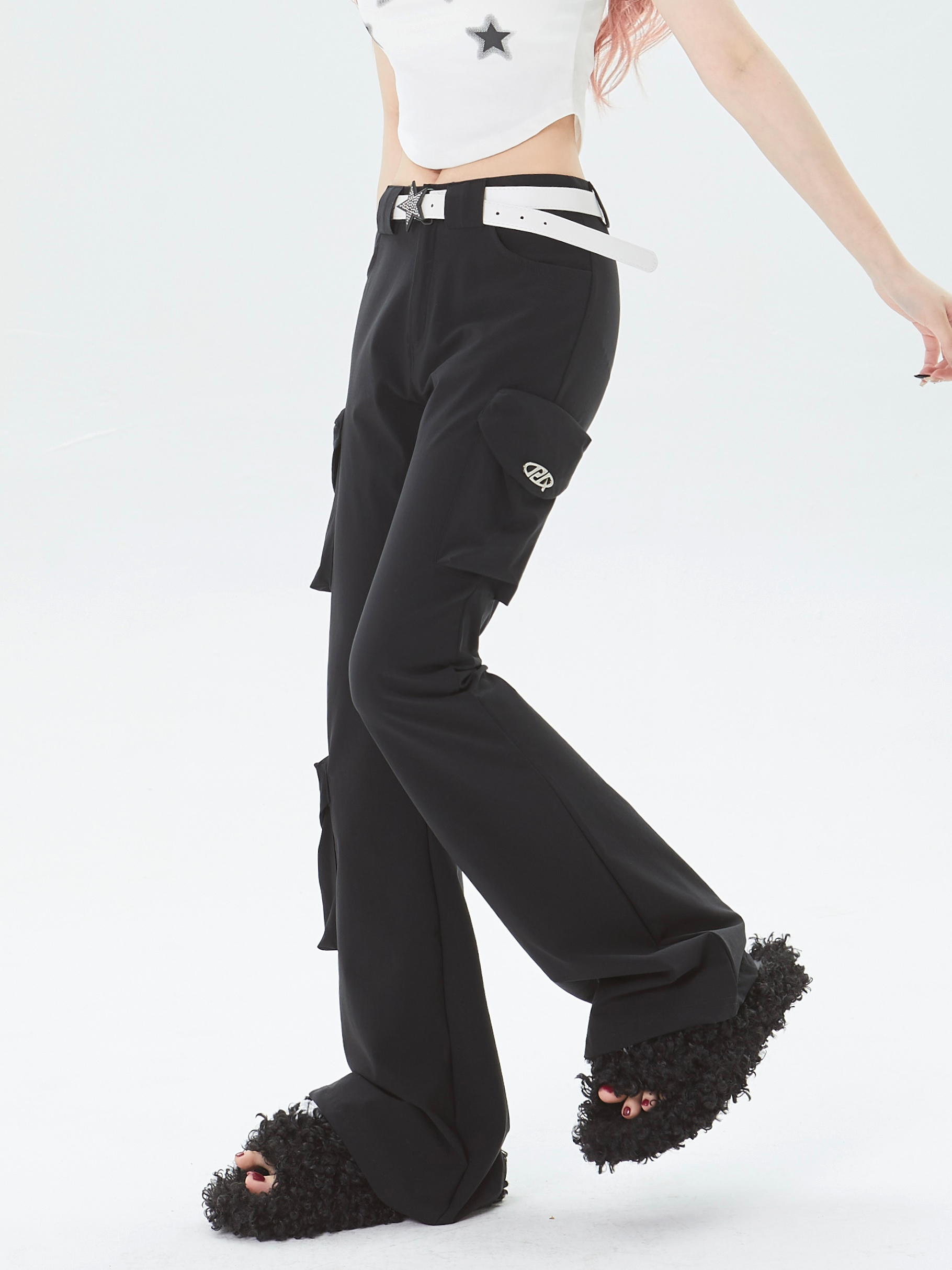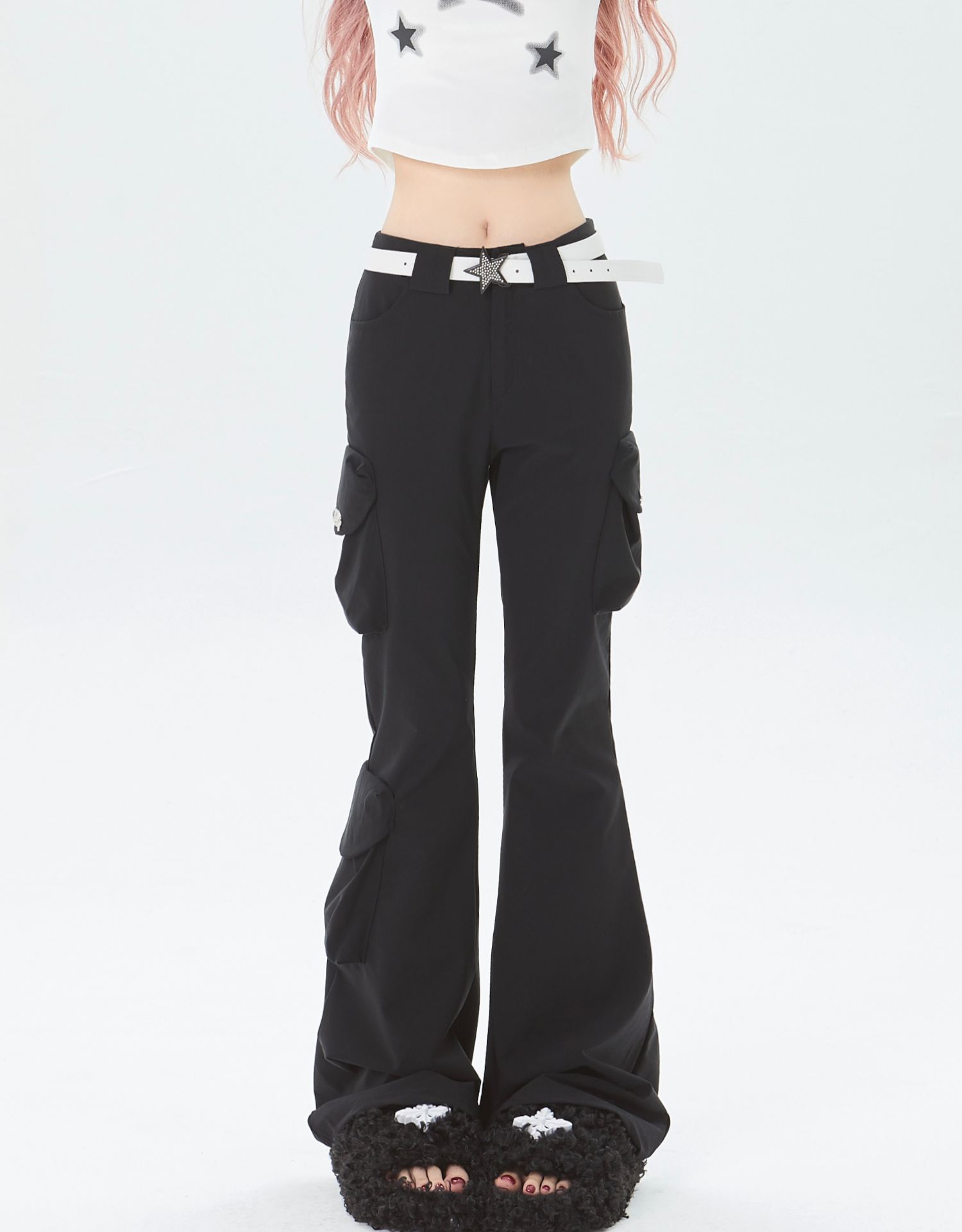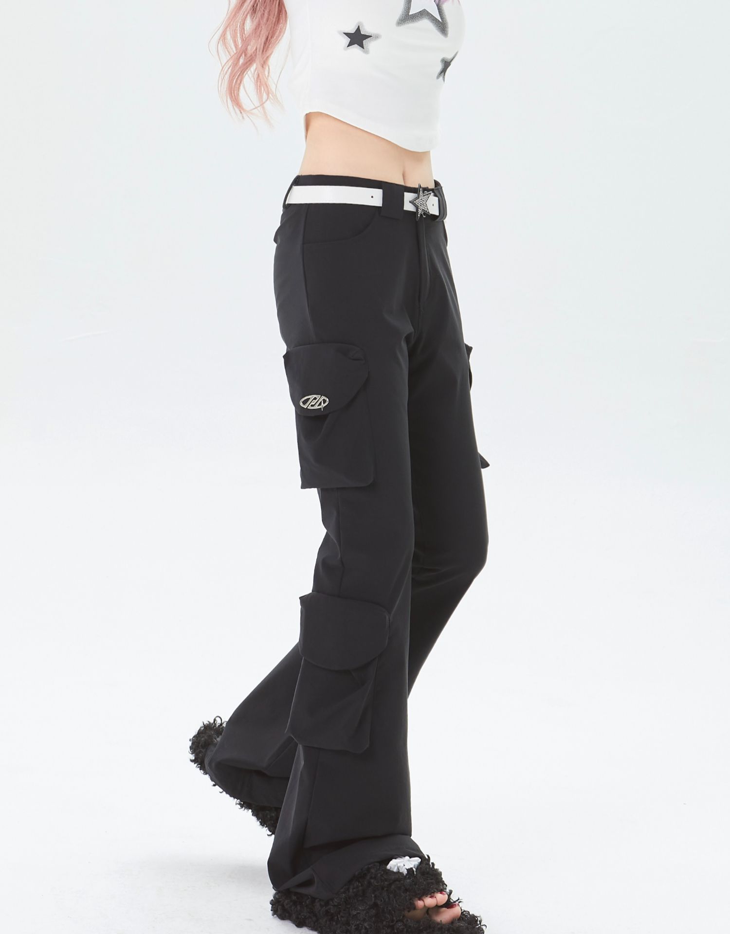 x不是好人 美式微喇叭工裝褲立體多口袋辣妹修身顯瘦微彈休閒褲子