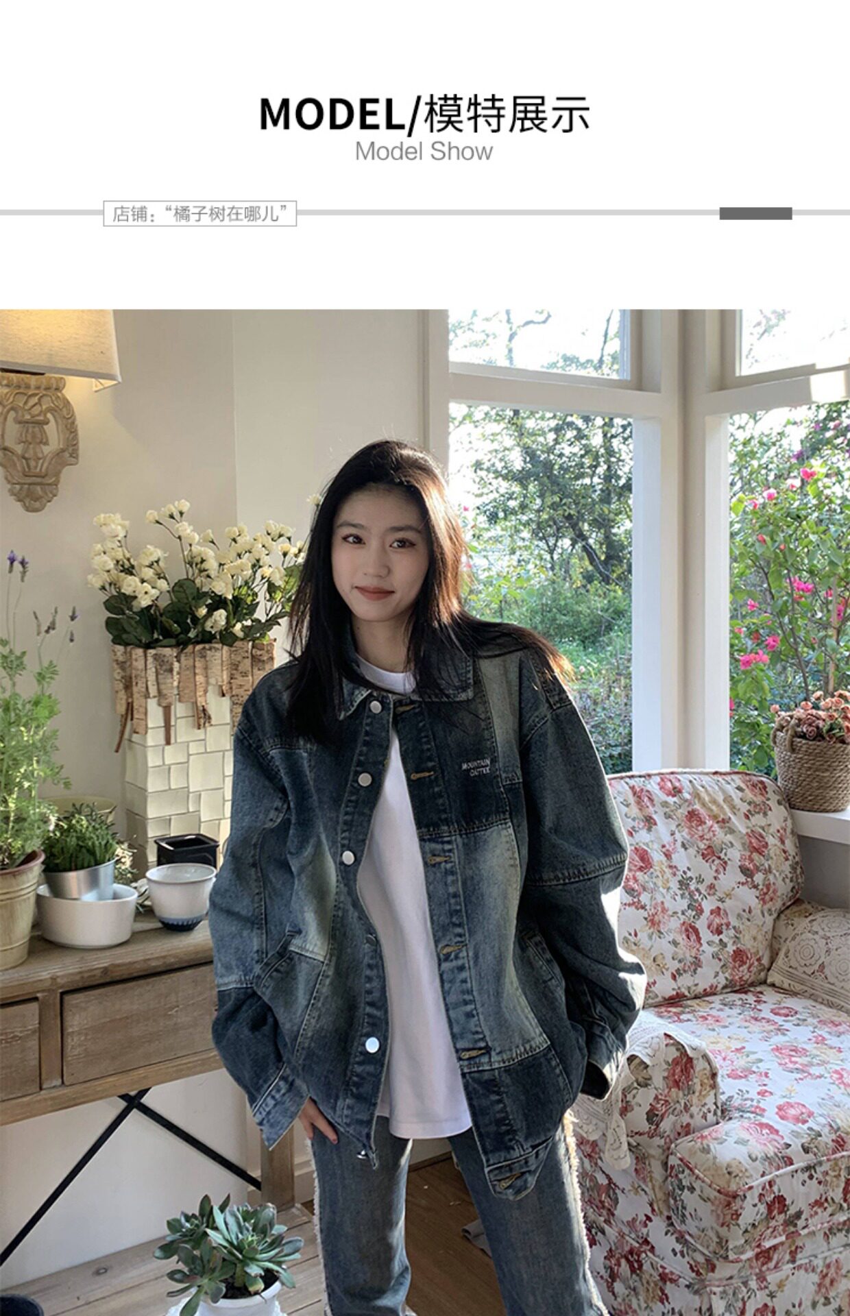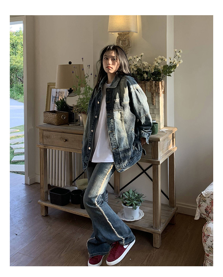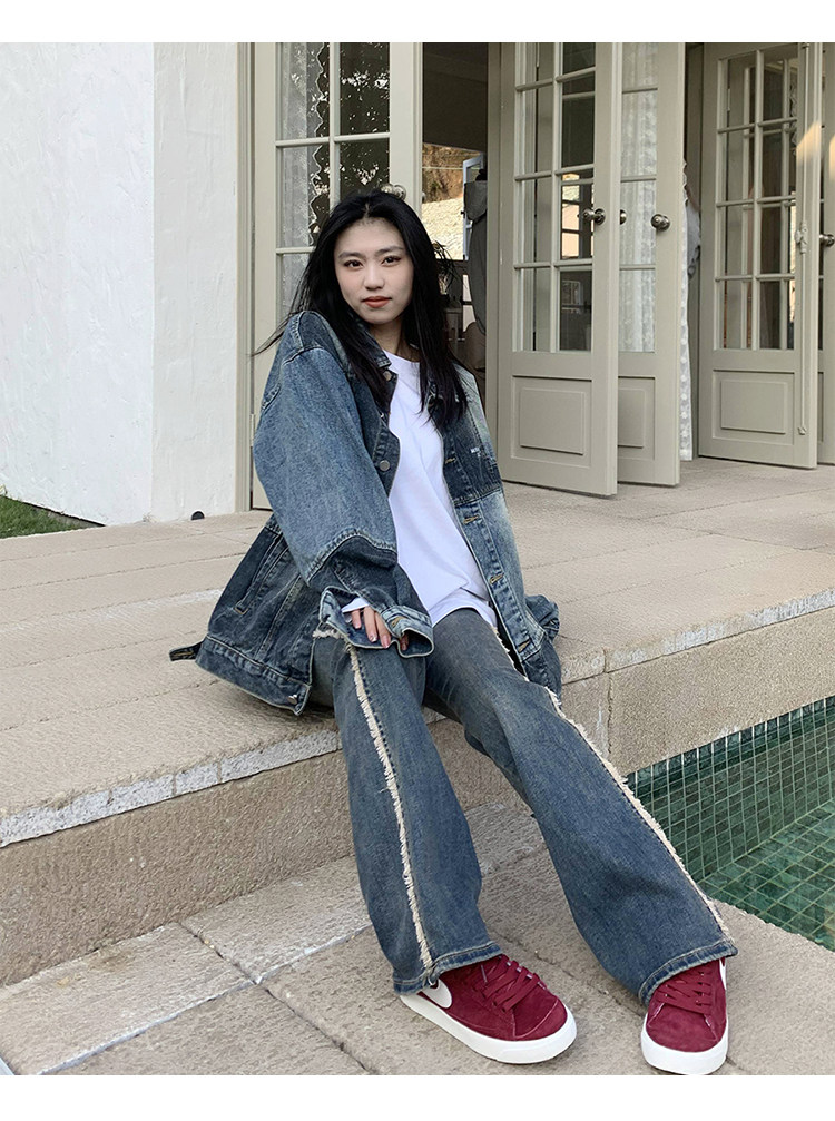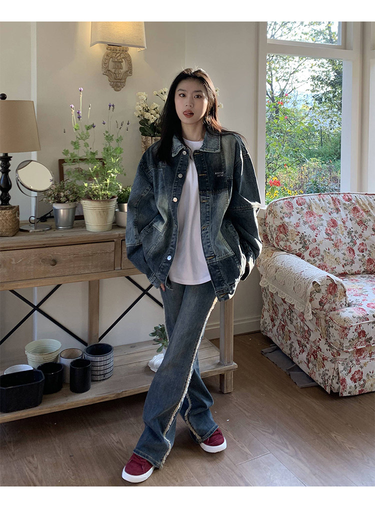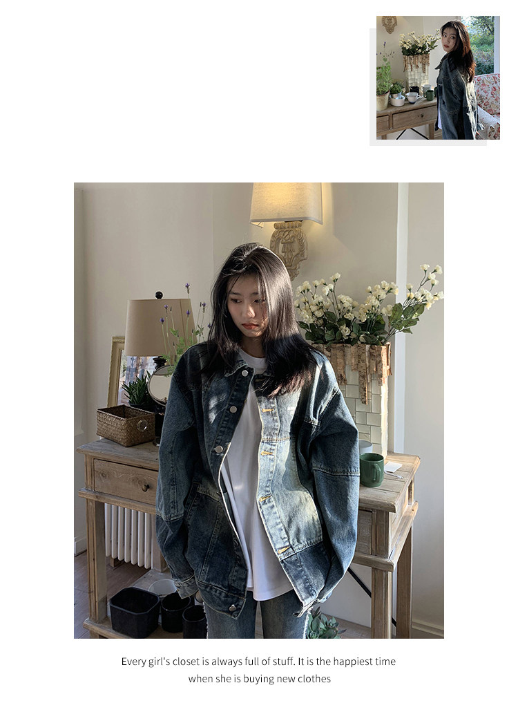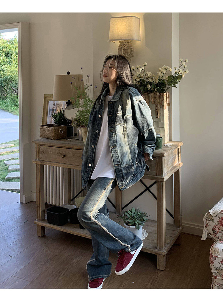 橘子樹在哪兒復古藍拼接牛仔外套女春季寬鬆小眾設計感拼色牛仔衣