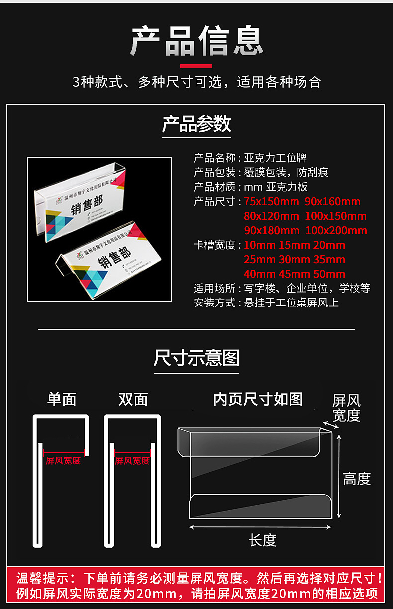 xybp办公室座位牌屏风隔断职位牌挂式双面岗位牌亚克力工位牌批发
