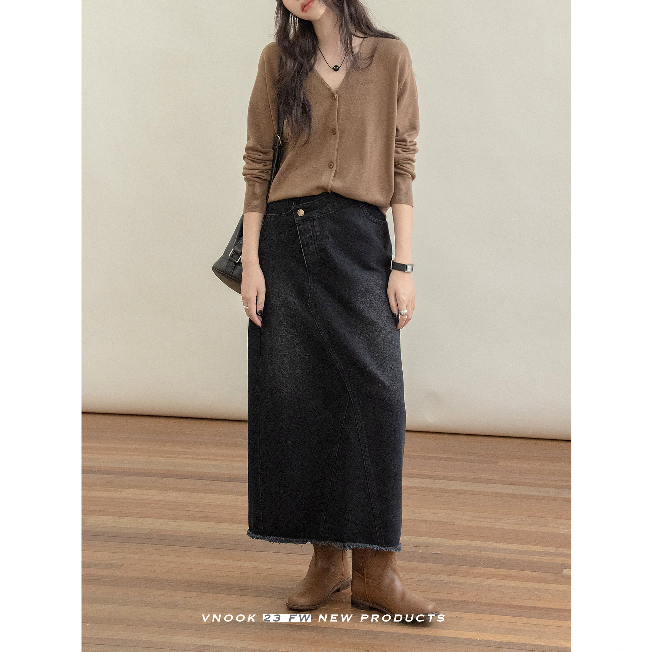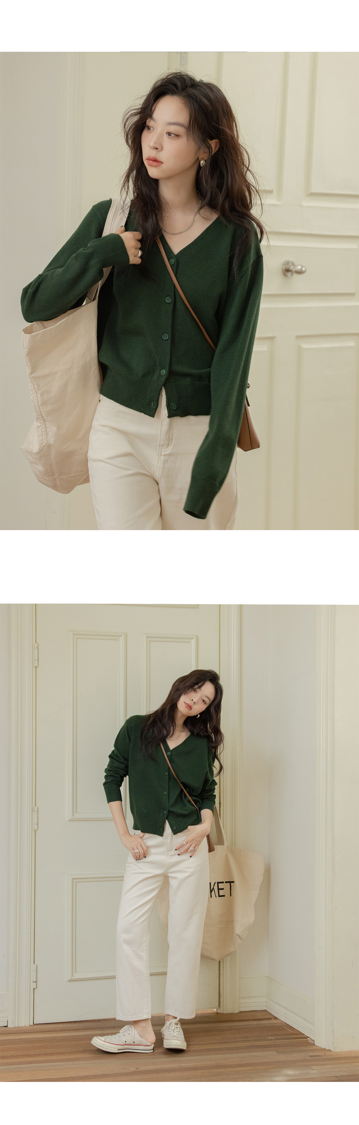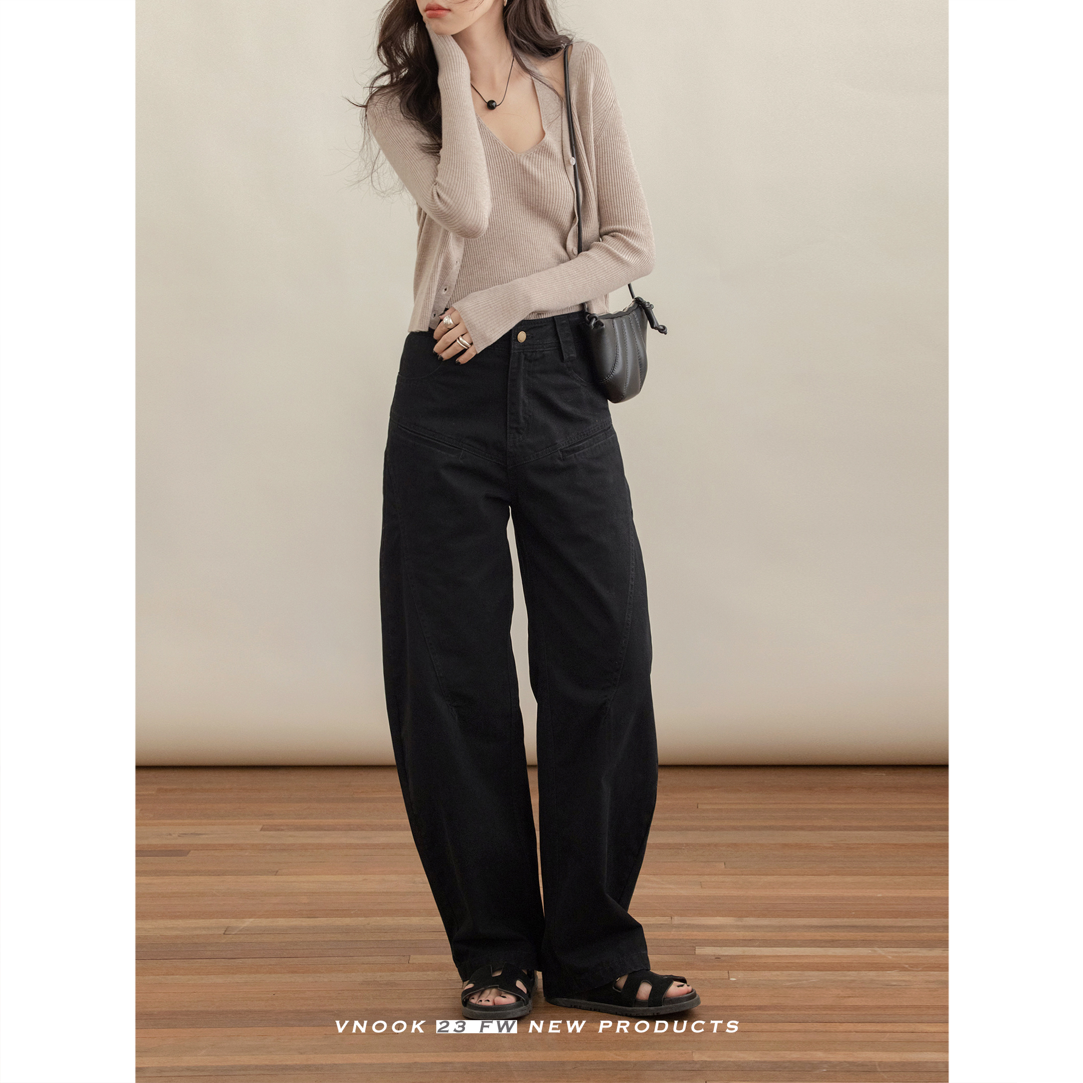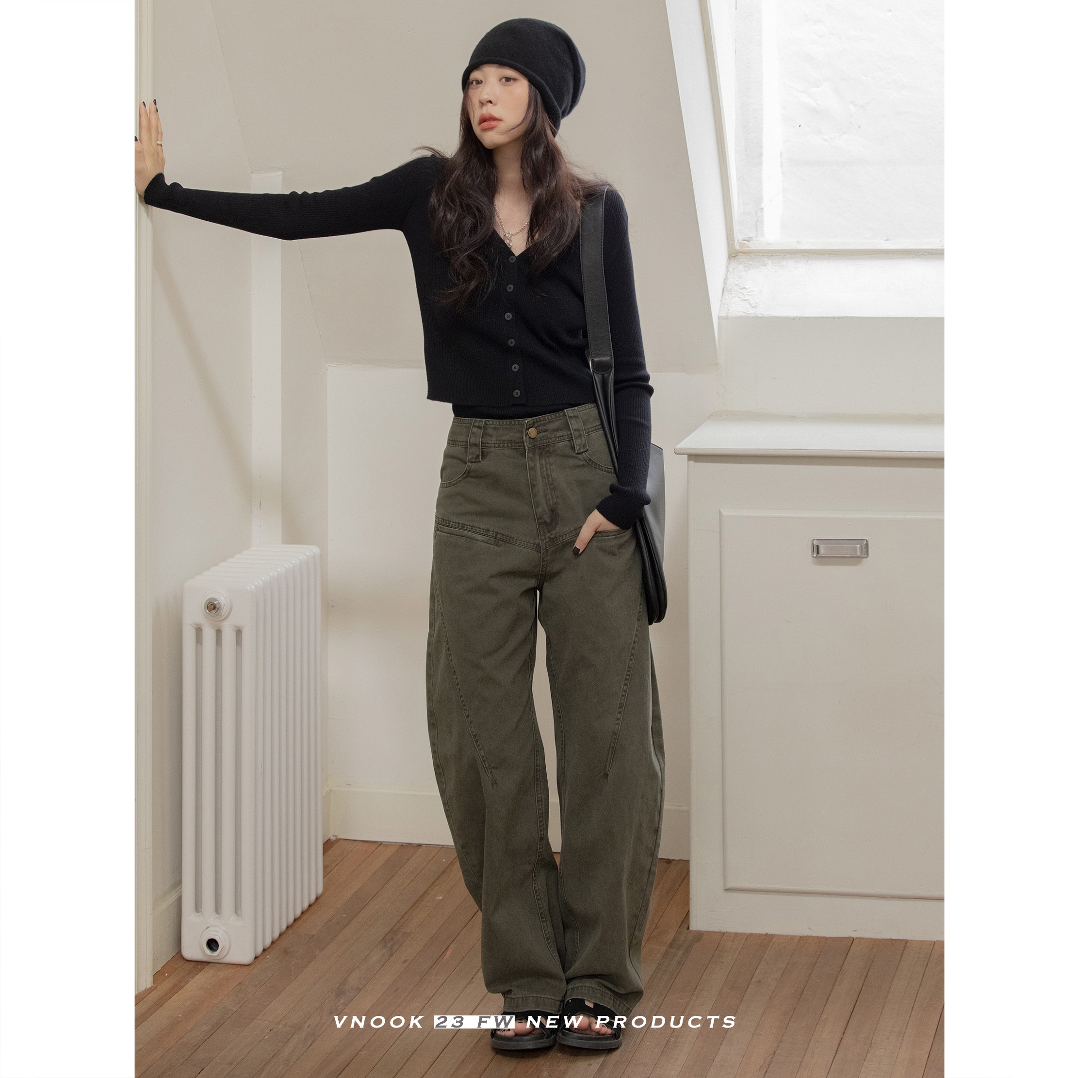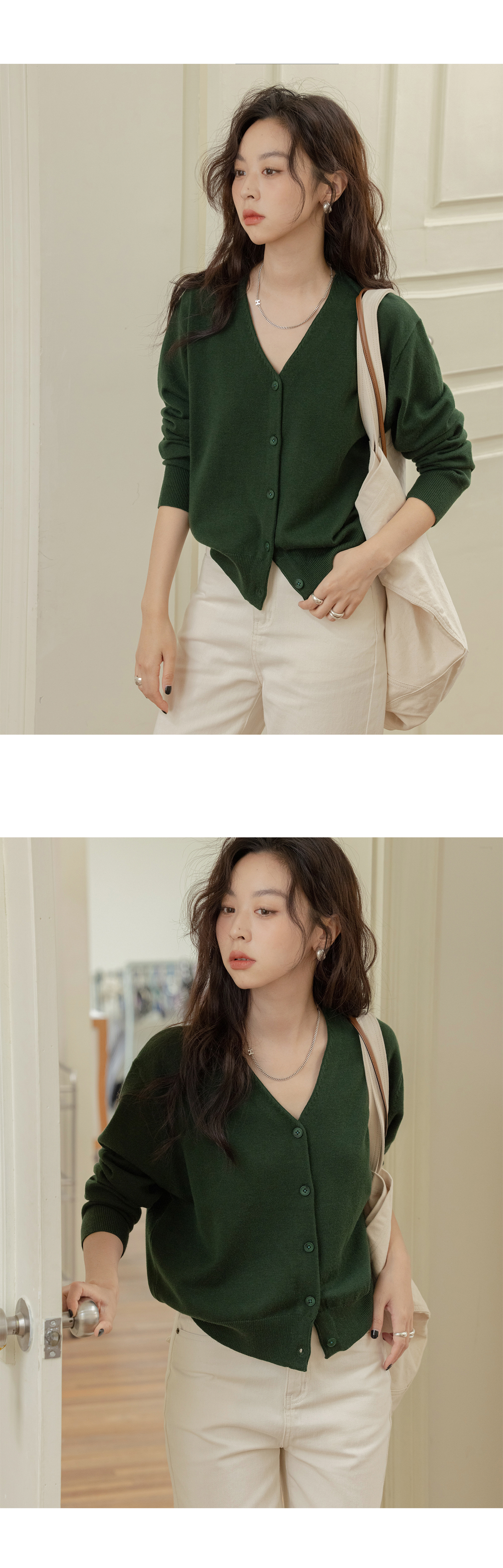 VNOOK 純色毛衣開衫女V領秋冬季新款落肩寬鬆休閒慵懶風短款外套