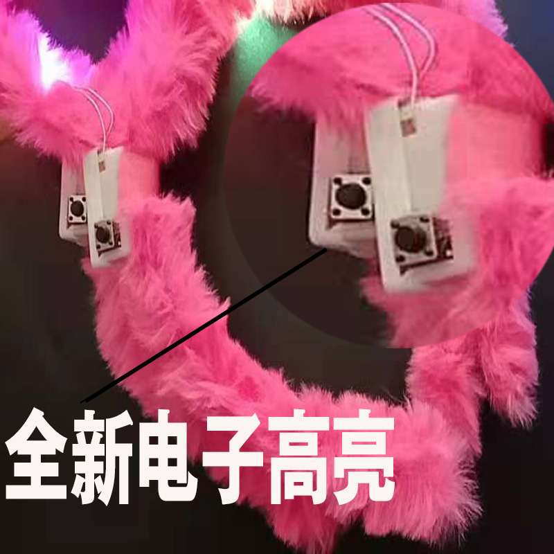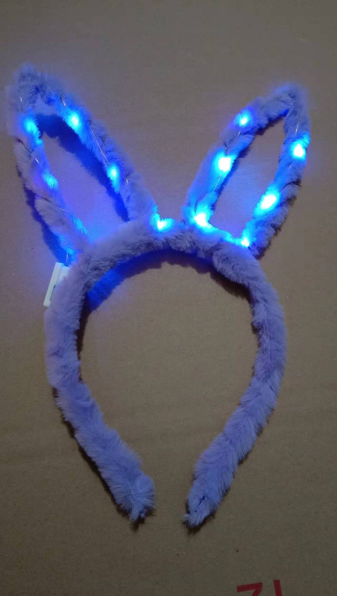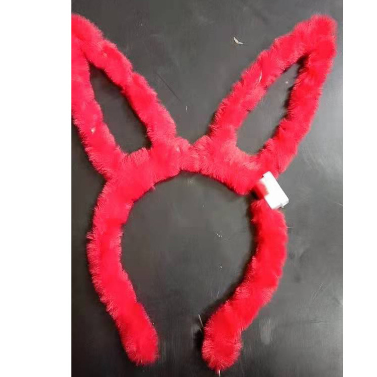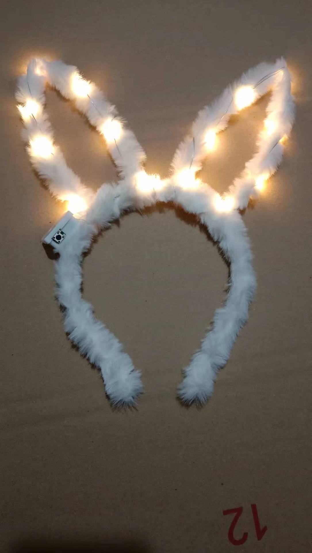 发光长毛绒兔耳朵加长14灯 发箍热卖发饰毛绒兔耳朵LED头箍扫码批