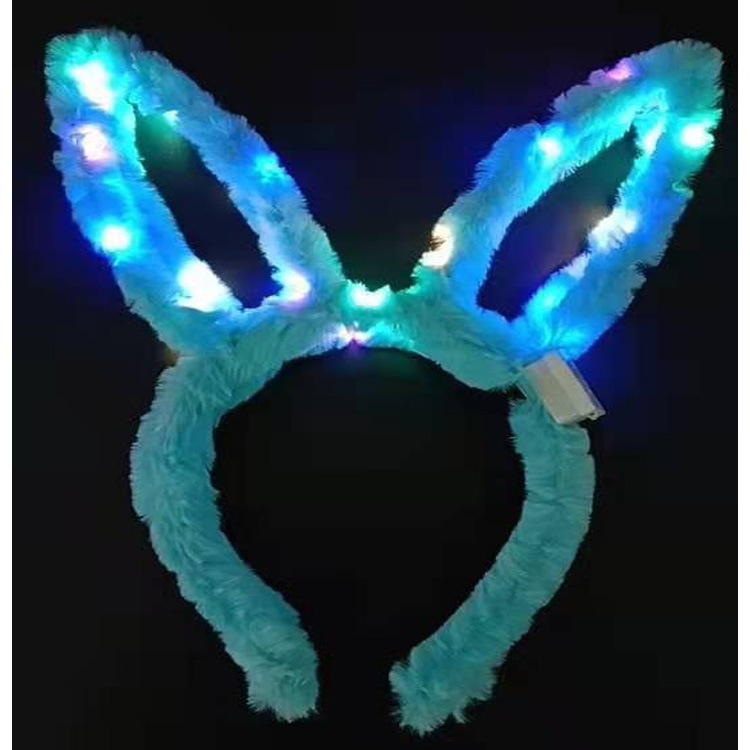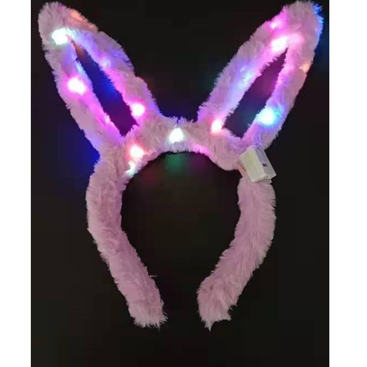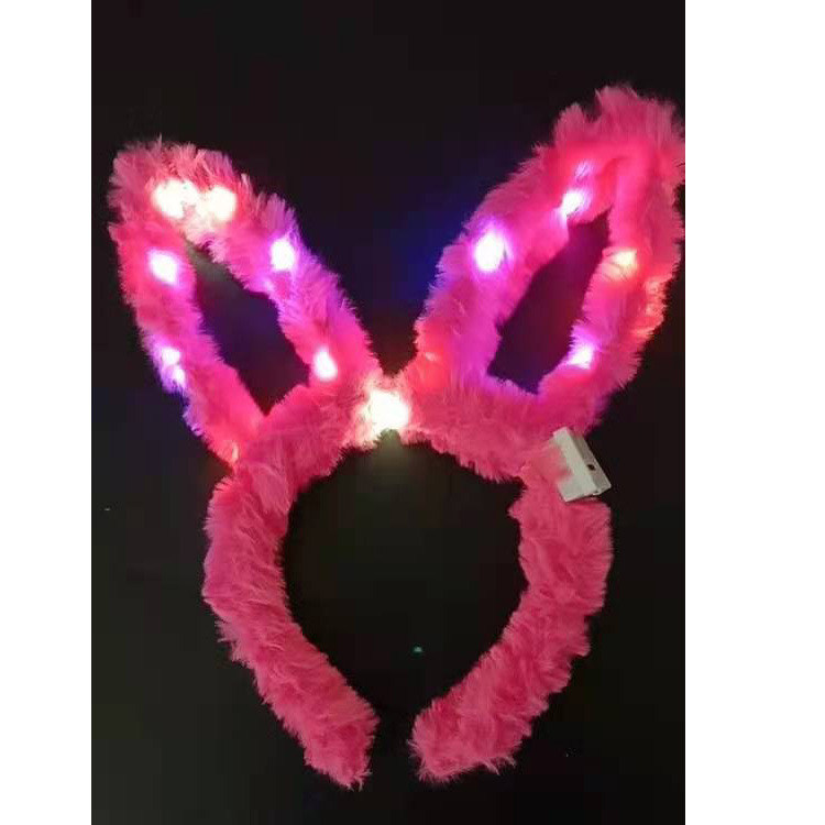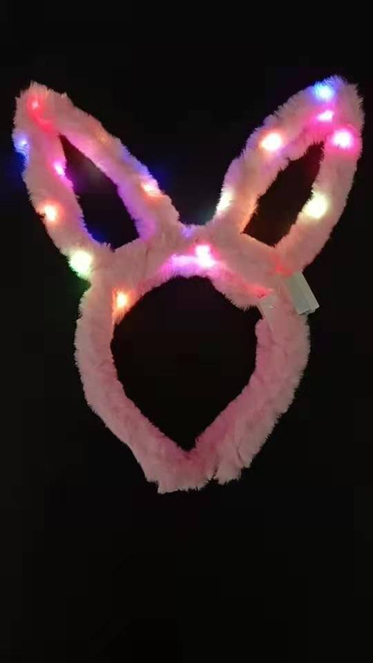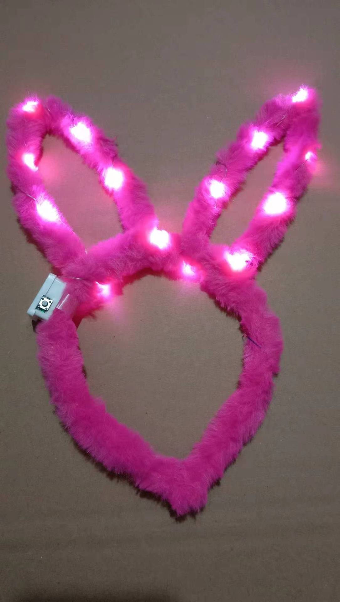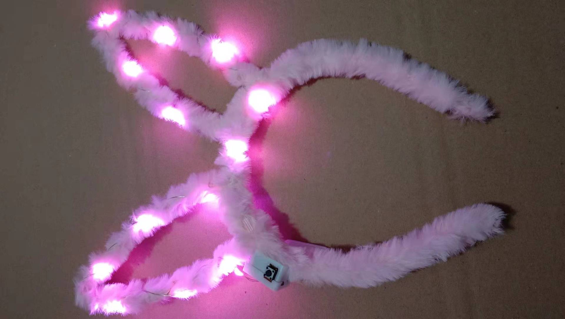 发光长毛绒兔耳朵加长14灯 发箍热卖发饰毛绒兔耳朵LED头箍扫码批