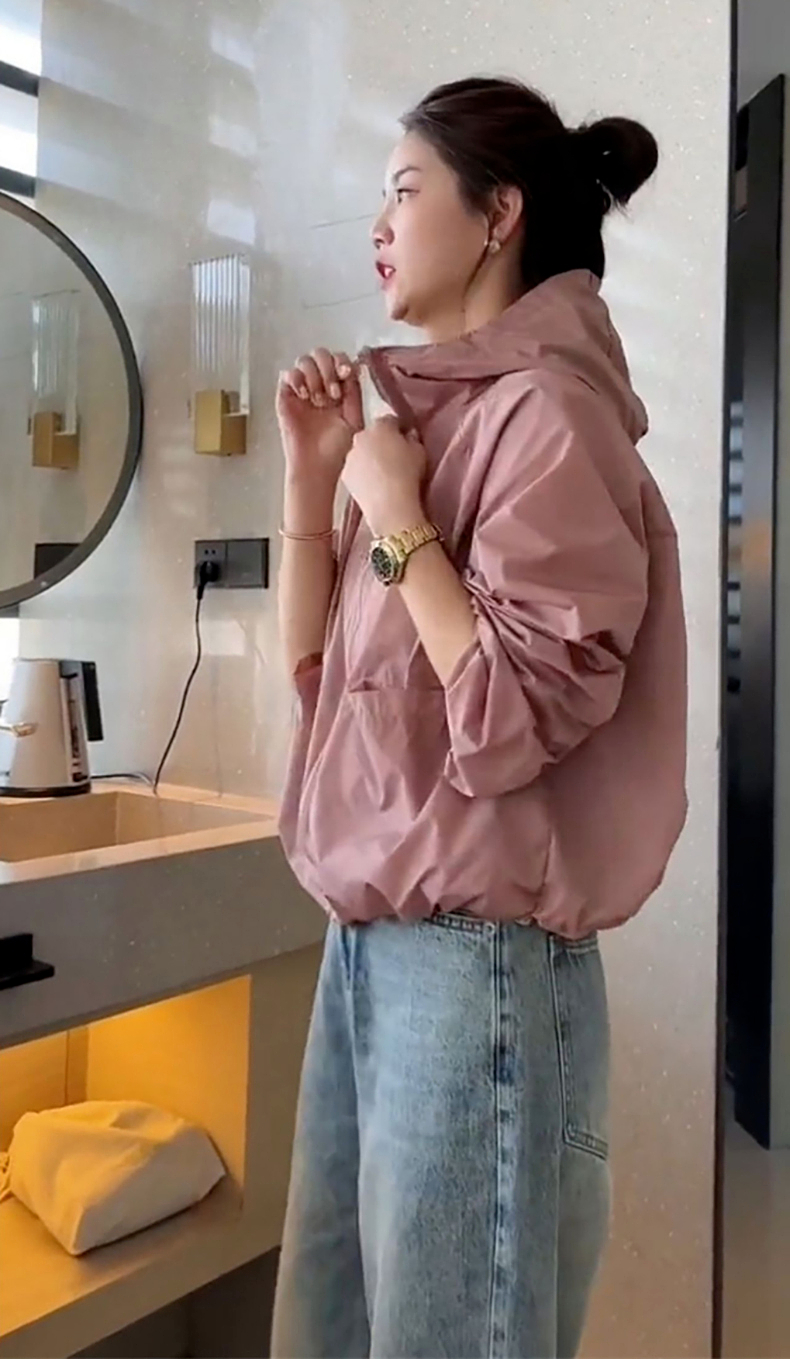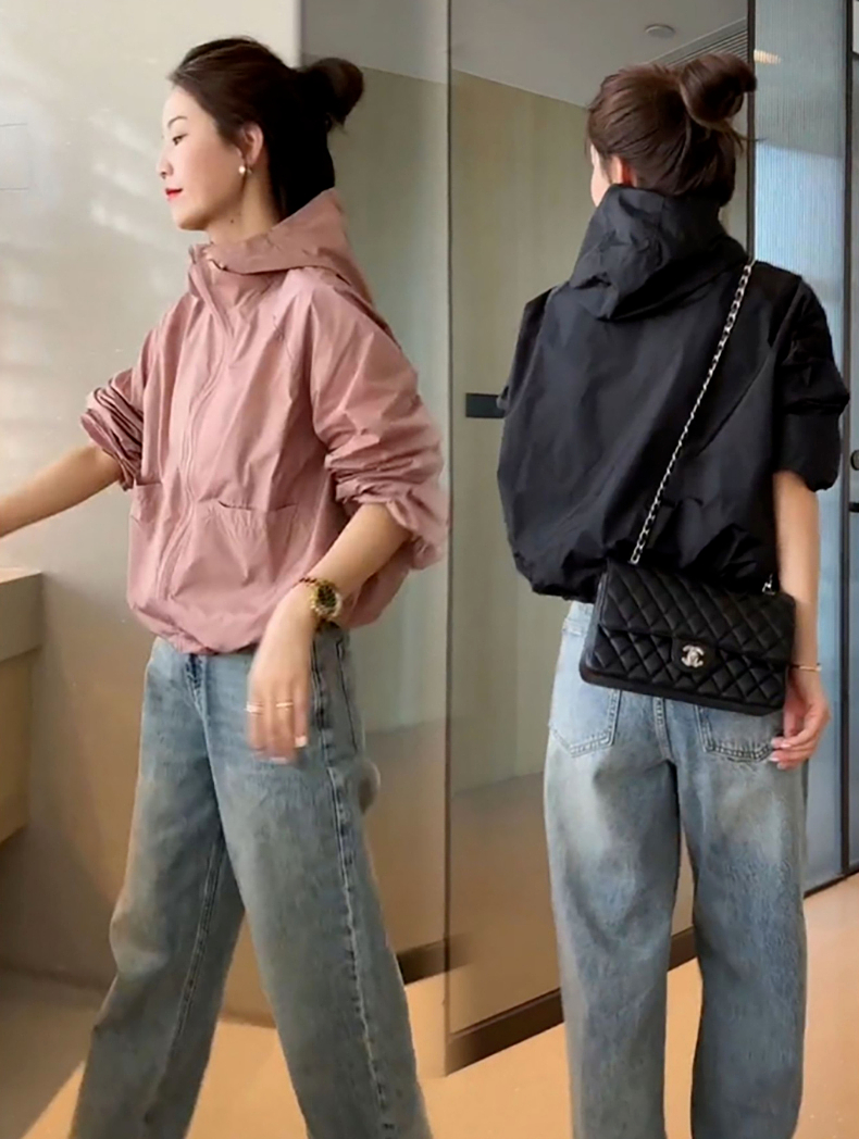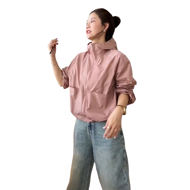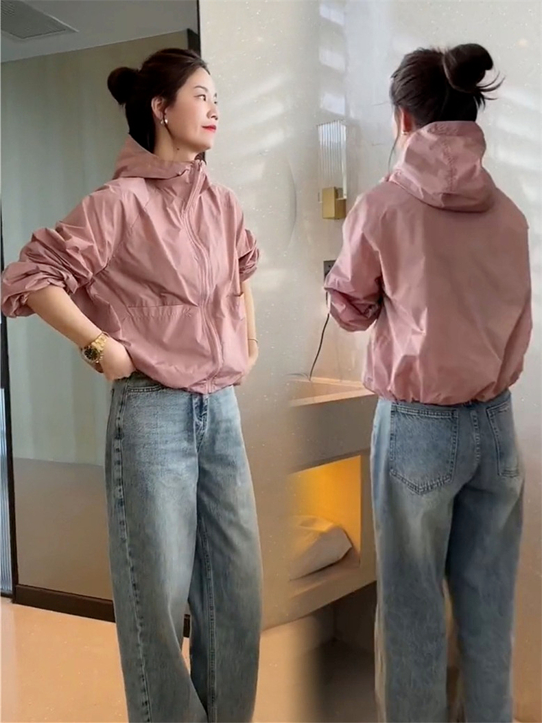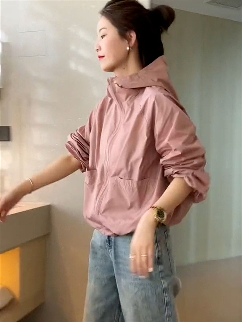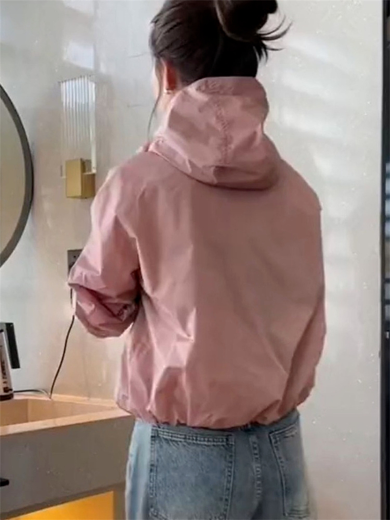 防曬衣女款2023新款夏季薄款外套連帽罩衫運動寬鬆短款上衣衝鋒衣