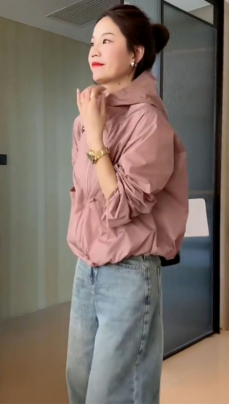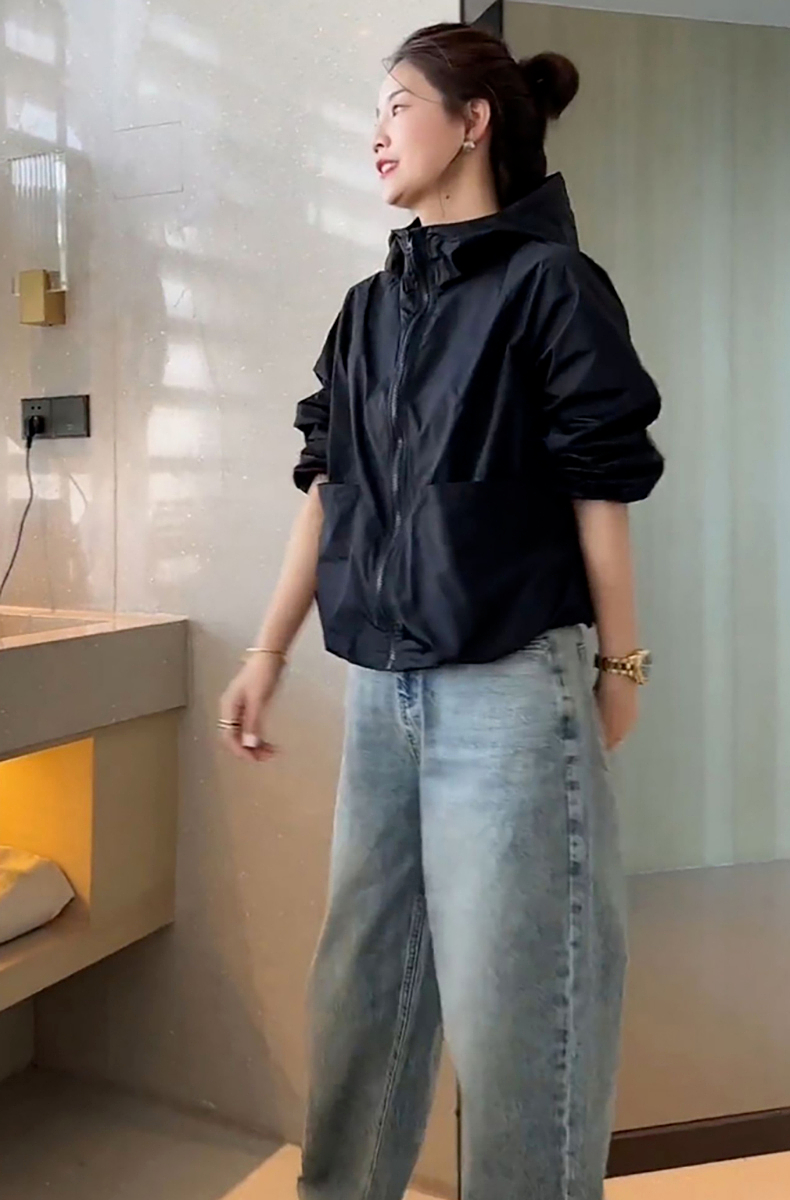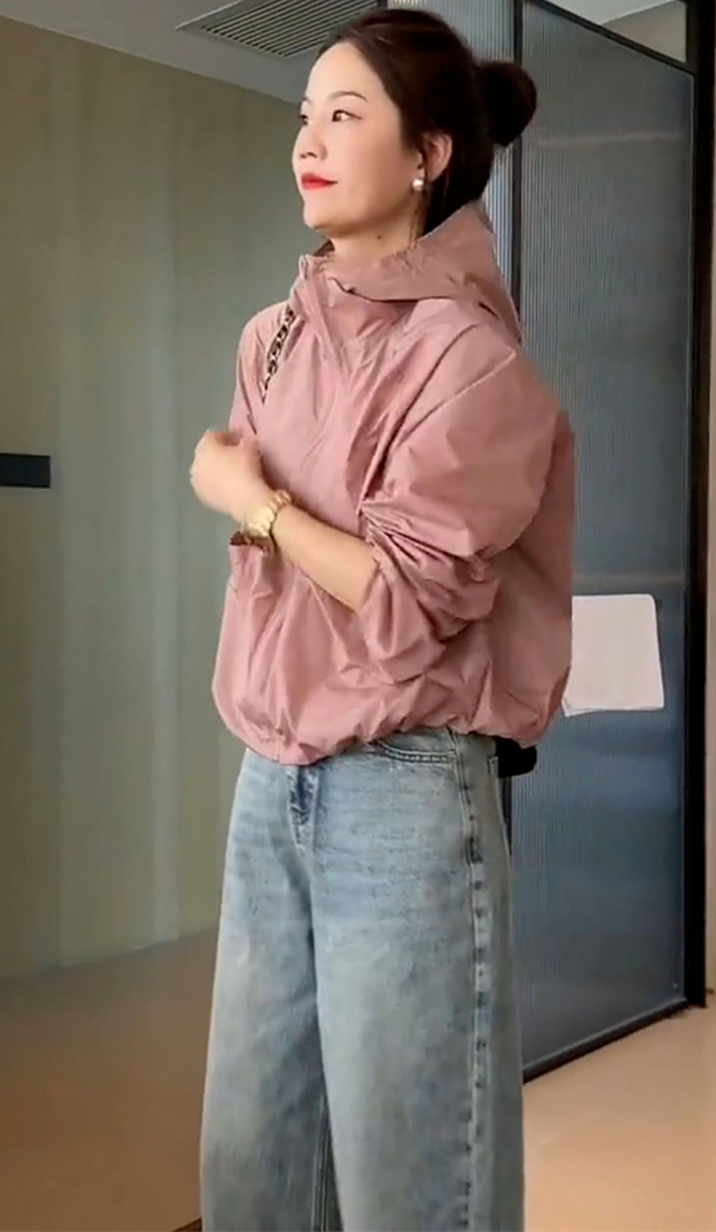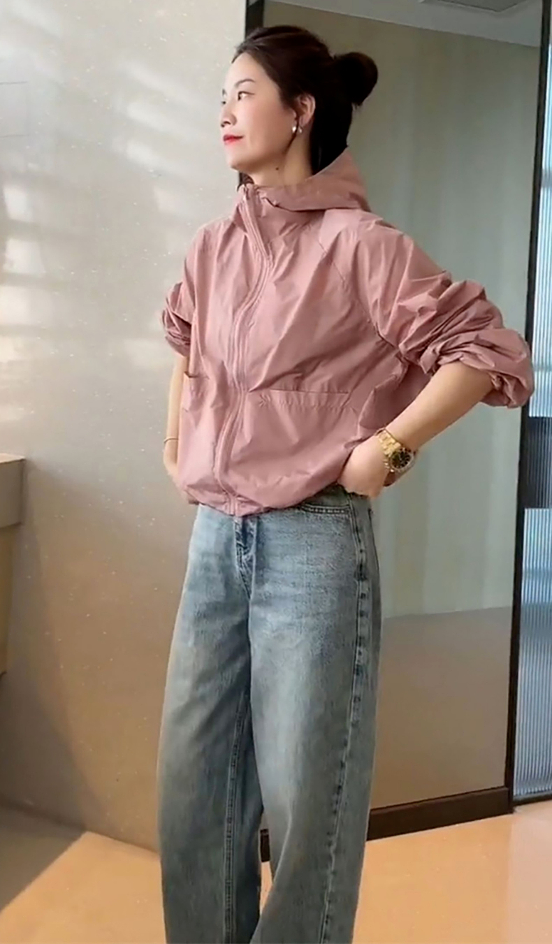 防曬衣女款2023新款夏季薄款外套連帽罩衫運動寬鬆短款上衣衝鋒衣