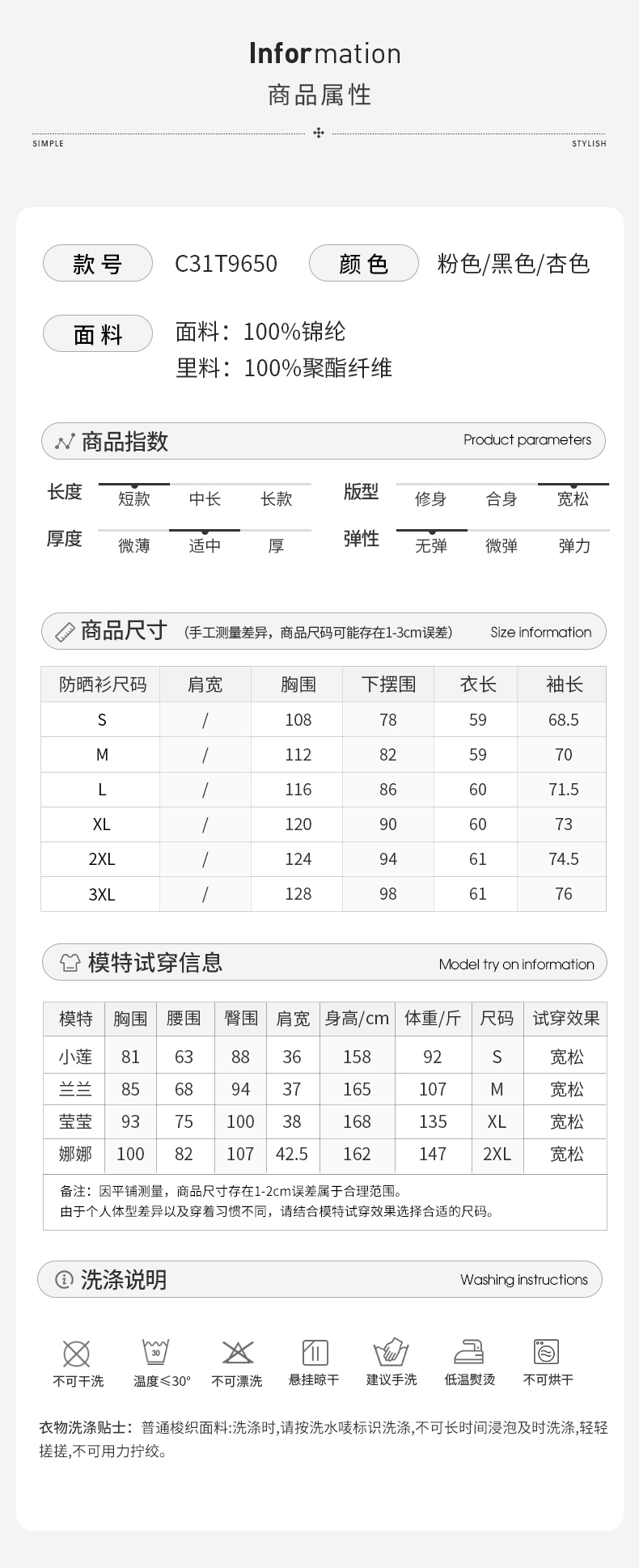 顏色分類 粉紅色【單件】 黑色【單件】 杏色【單件】