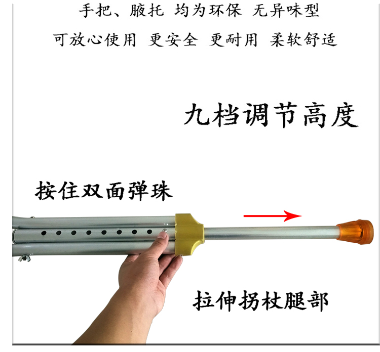 儿童 老人 骨折专用拐杖 铝合金材质  轻便 防滑 九个档位可以调节高度 根据身高不同都可以使用 儿童款 采用儿童细把手 便于孩子抓握 。要是有特出尺寸 可以联系客服 定做