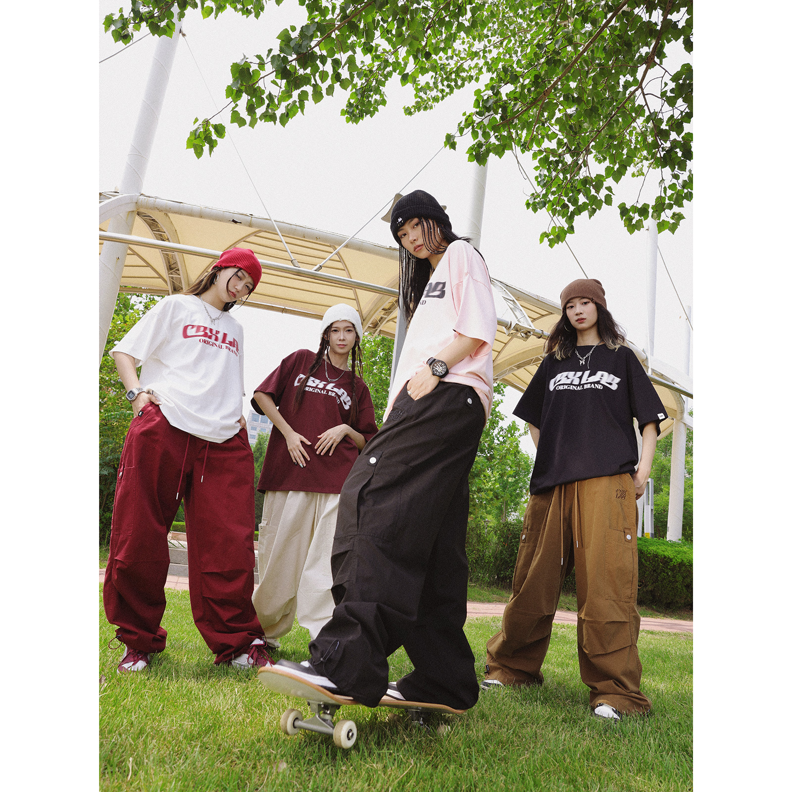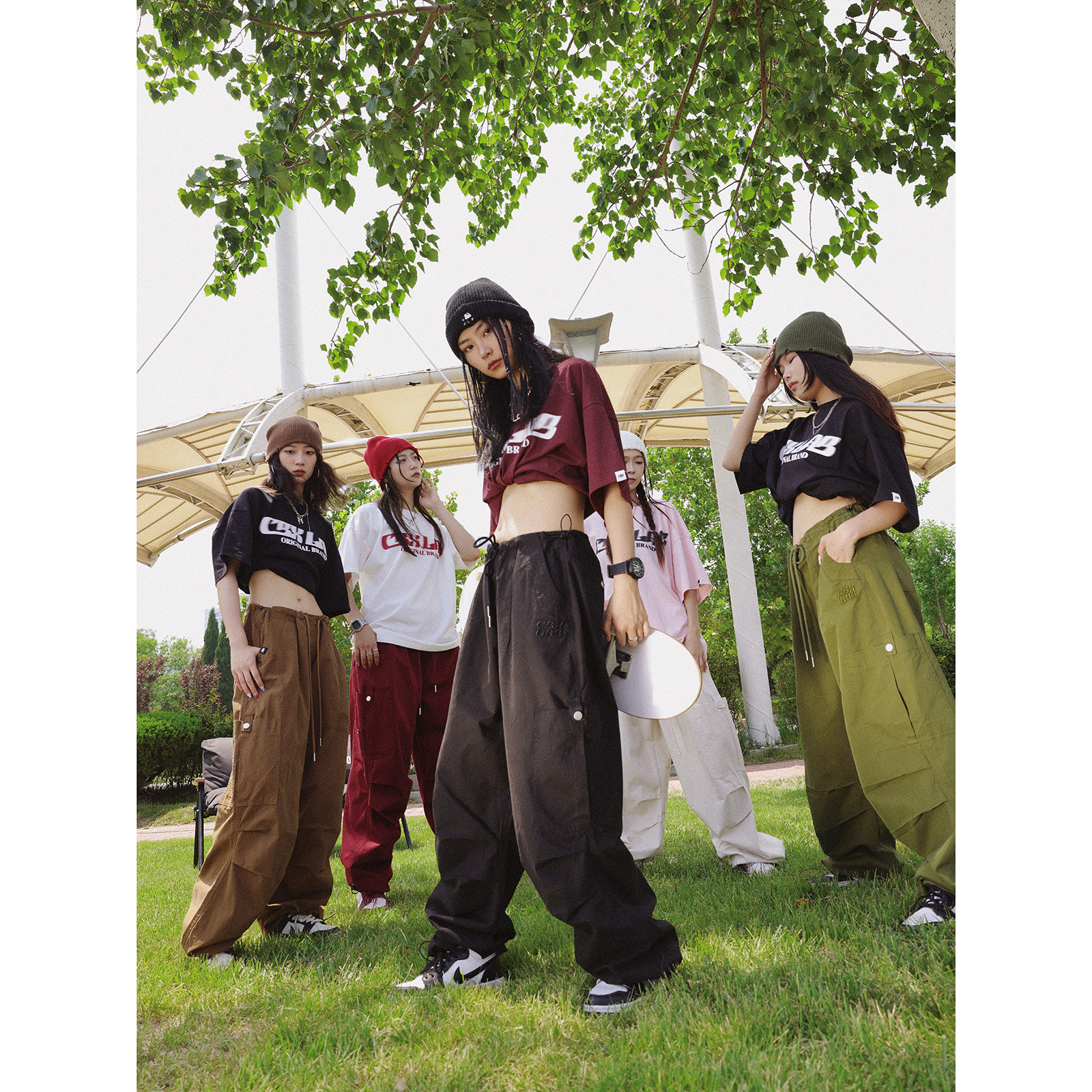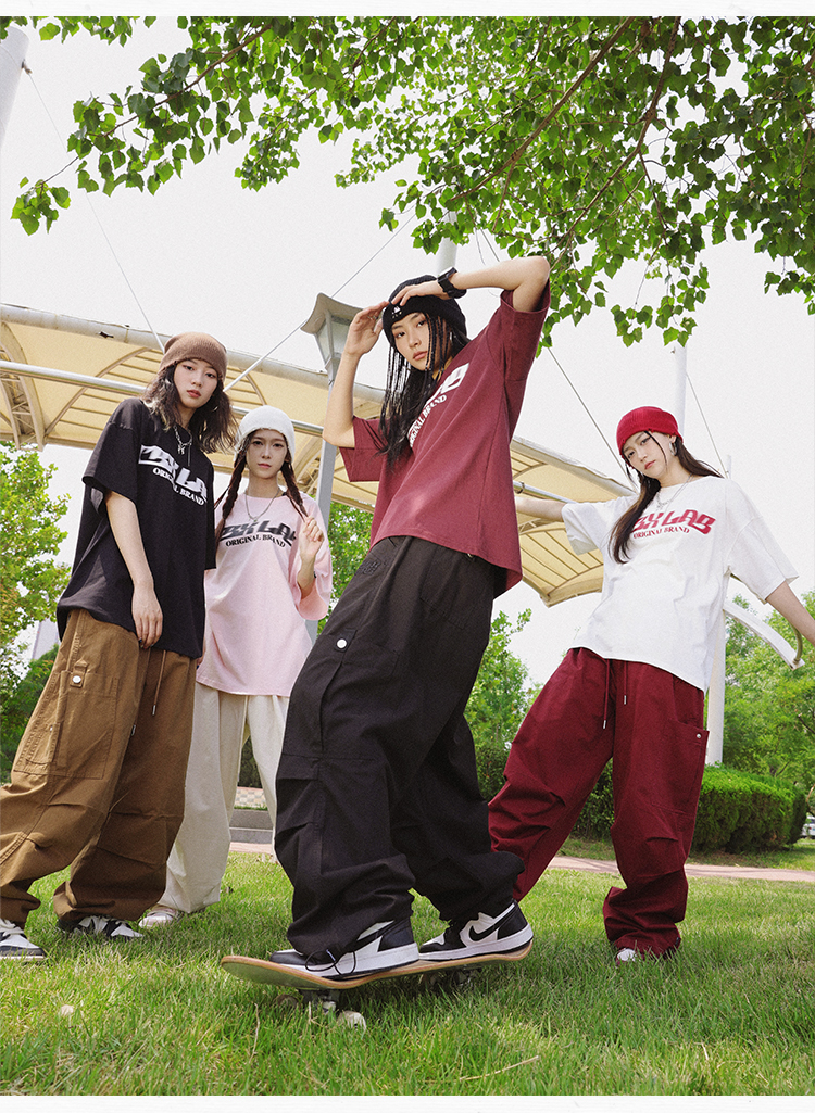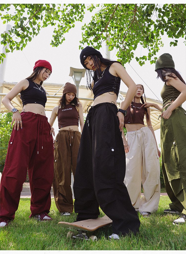 CBXLAB街舞潮牌多色嘻哈傘兵工裝褲女美式復古運動褲爵士舞休閒褲