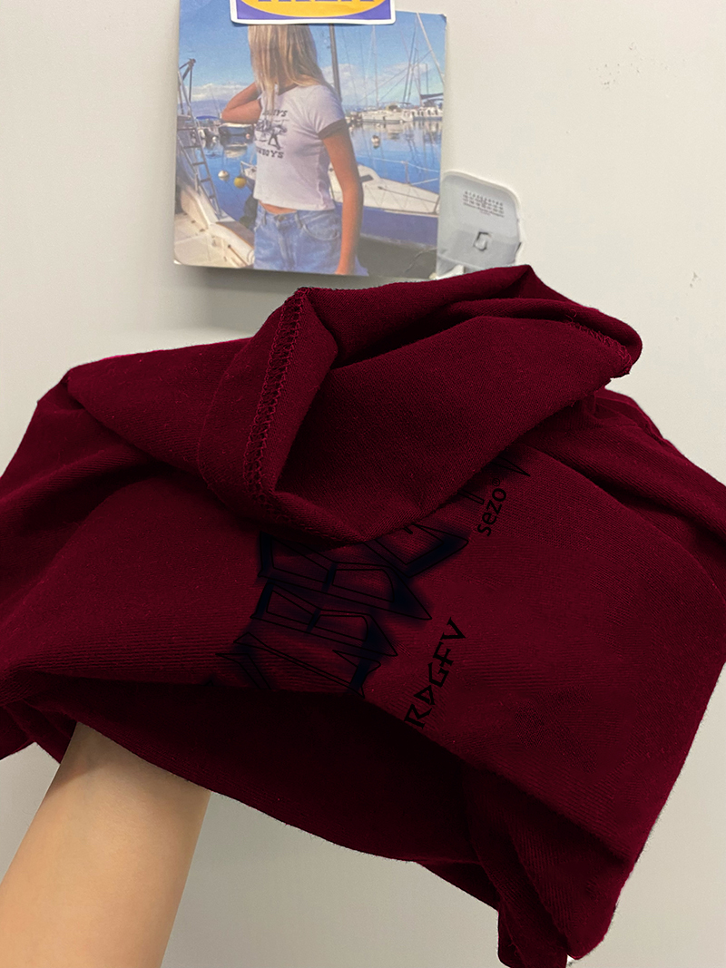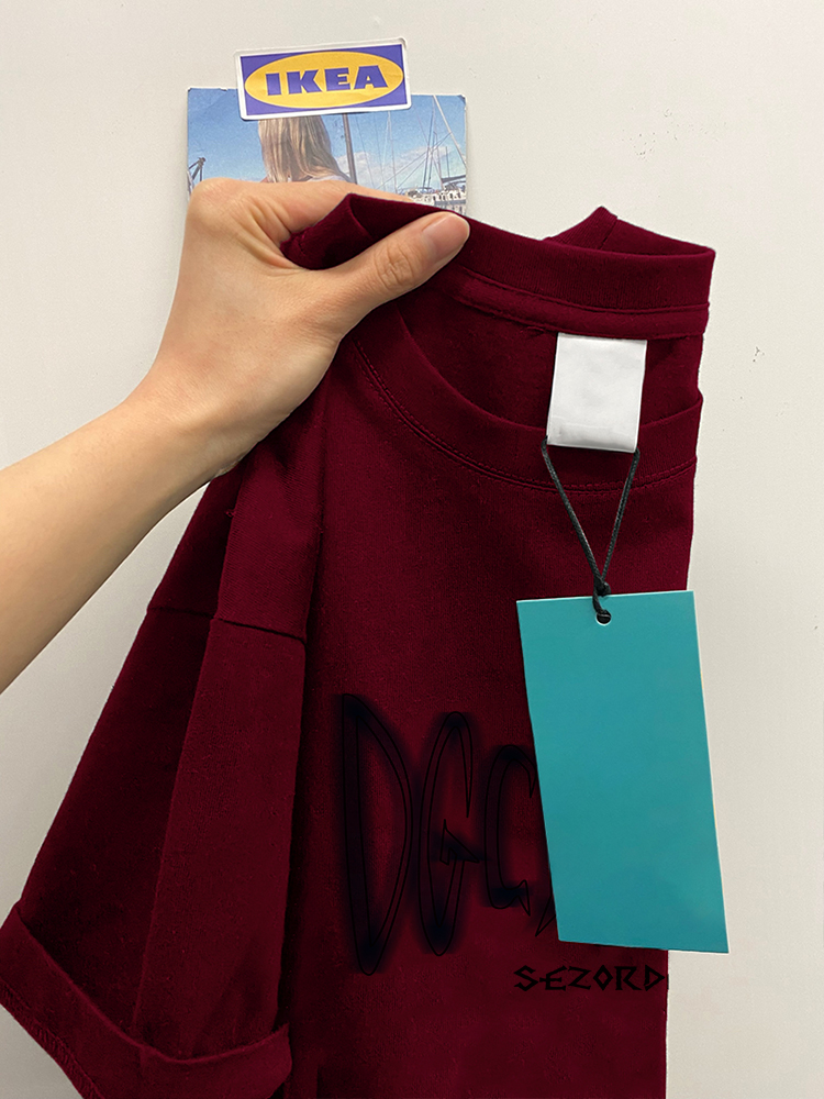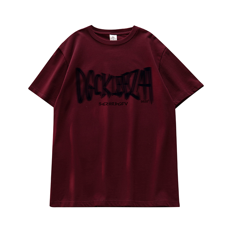 夏日多巴胺~酒紅色純棉短袖t恤女高級感印花小眾獨特別致正肩上衣