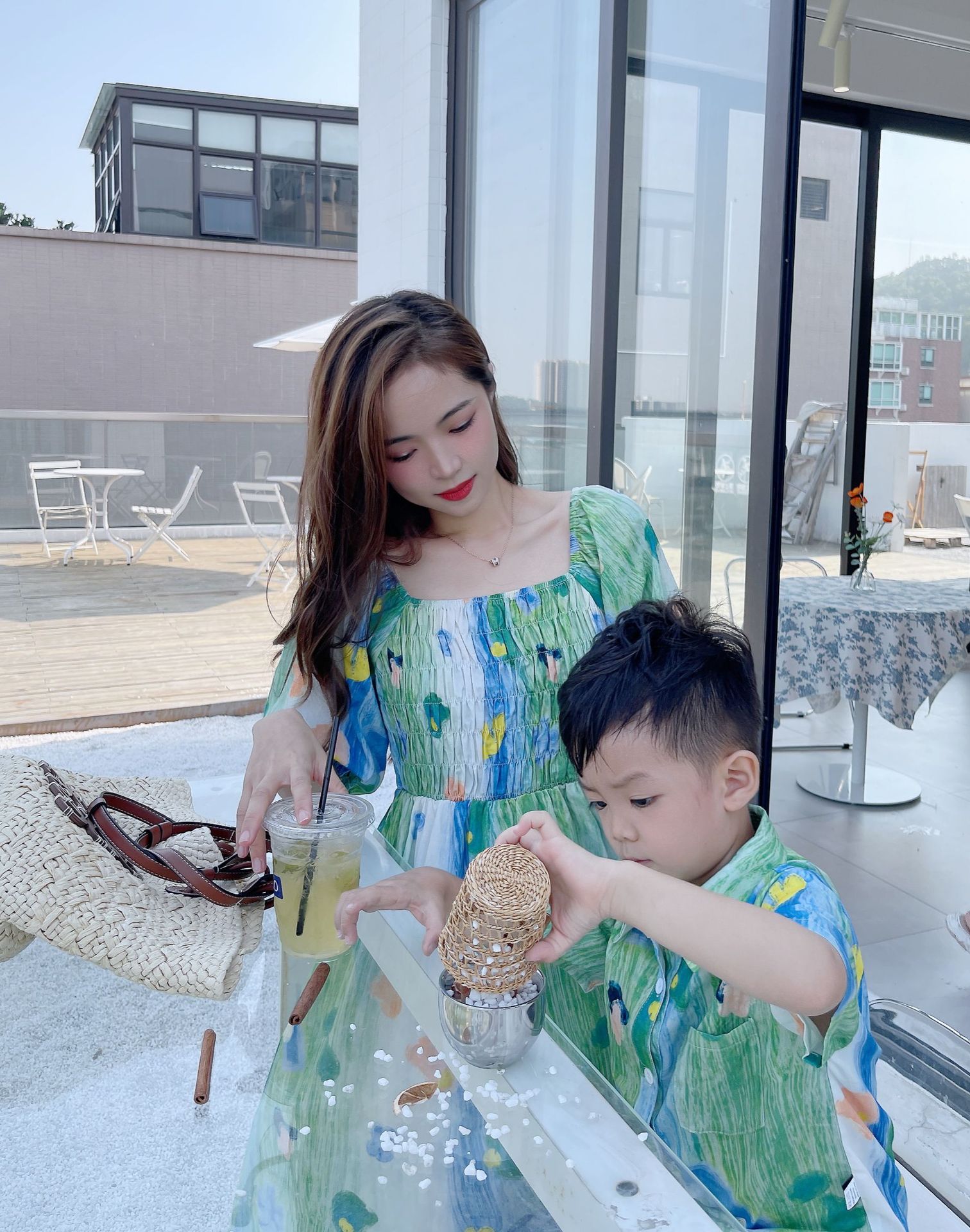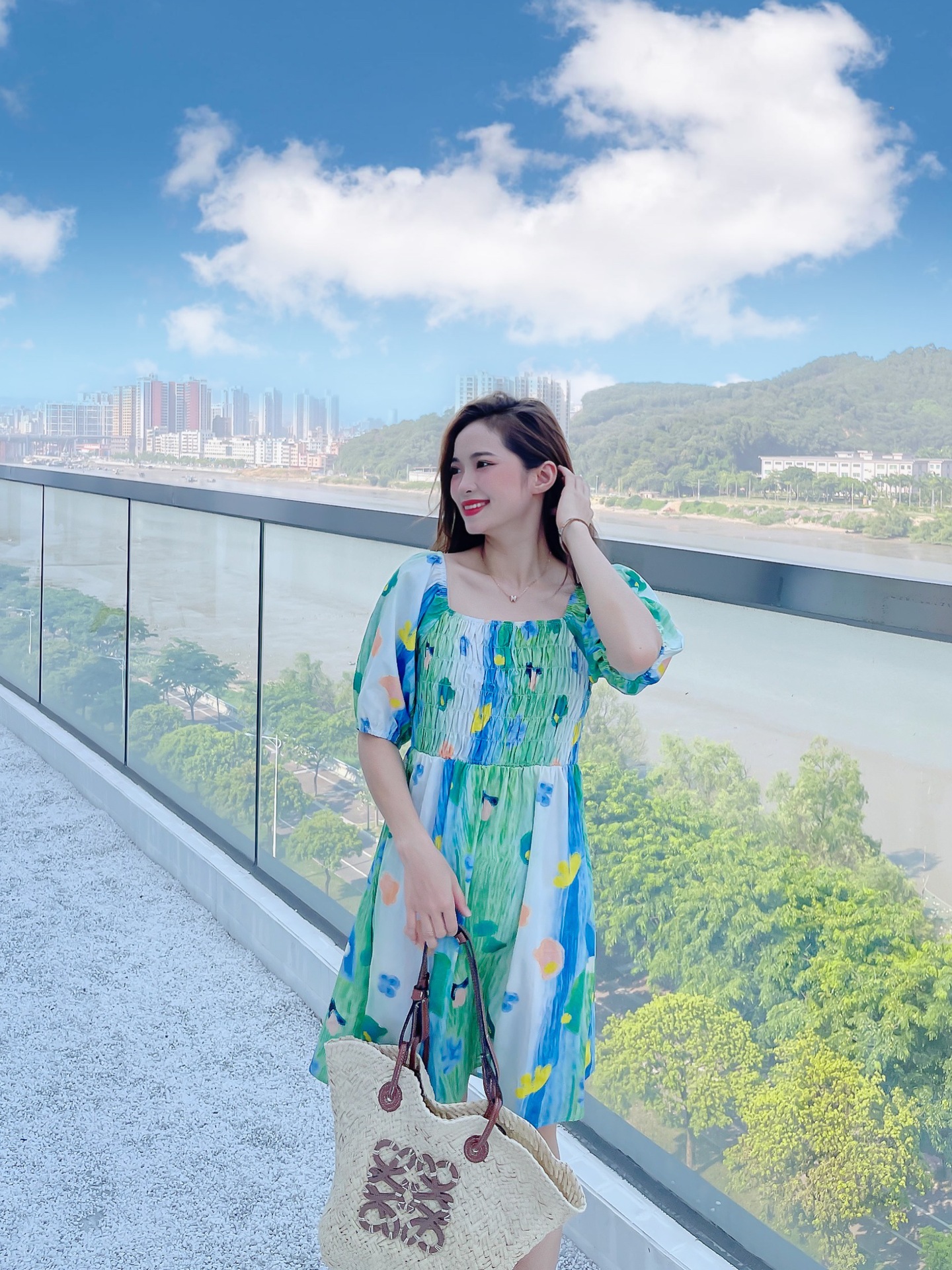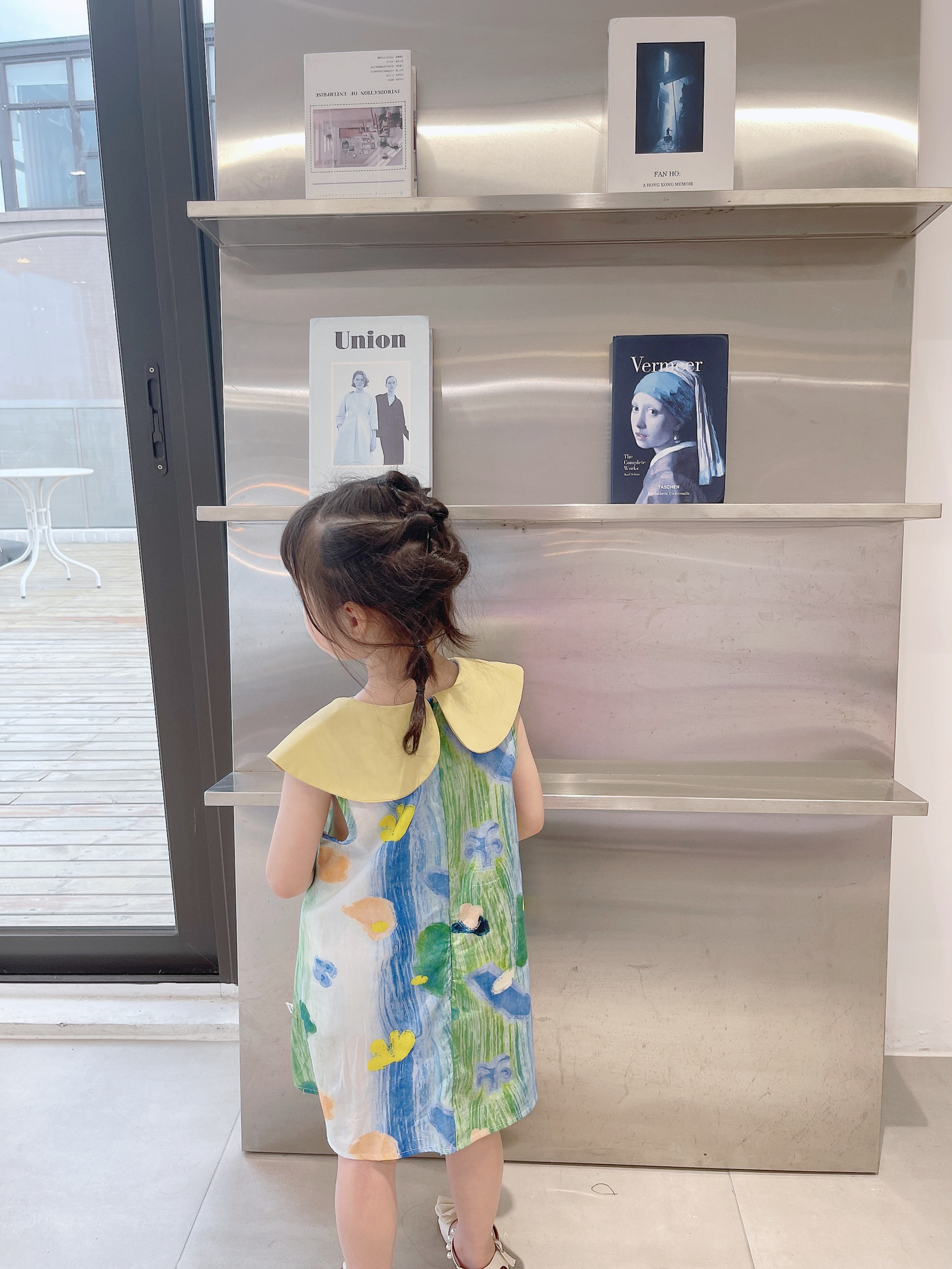 高端亲子装2023新款潮夏装洋气连衣裙母女油画风渐变女童沙滩裙夏