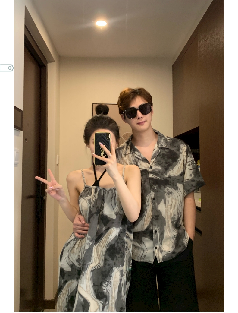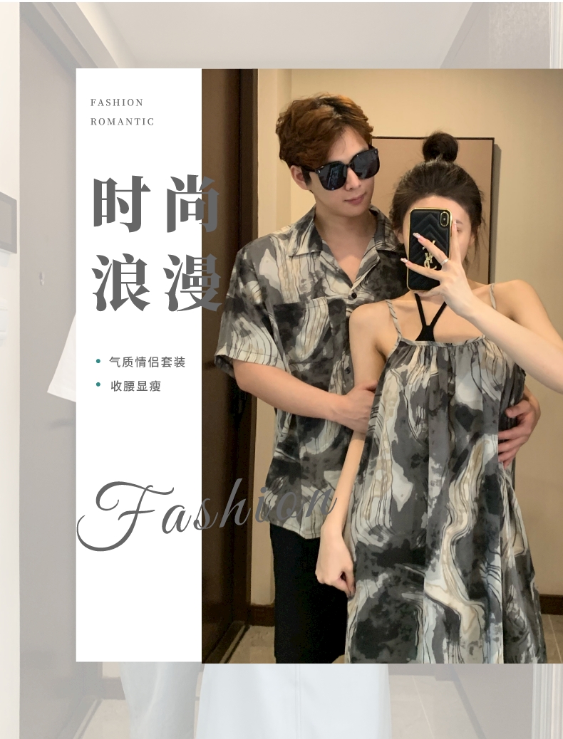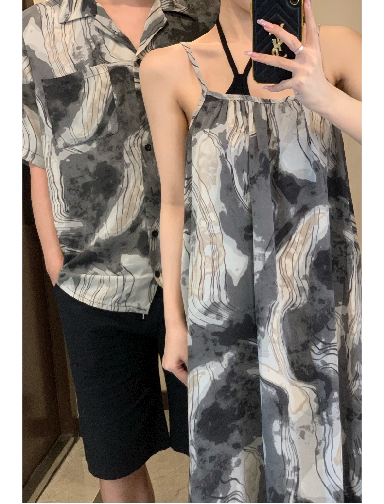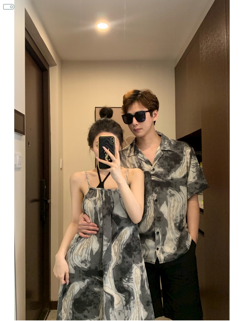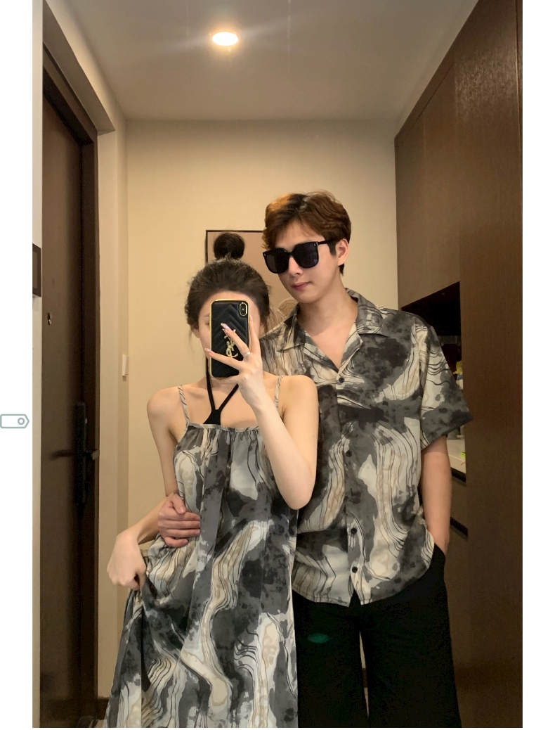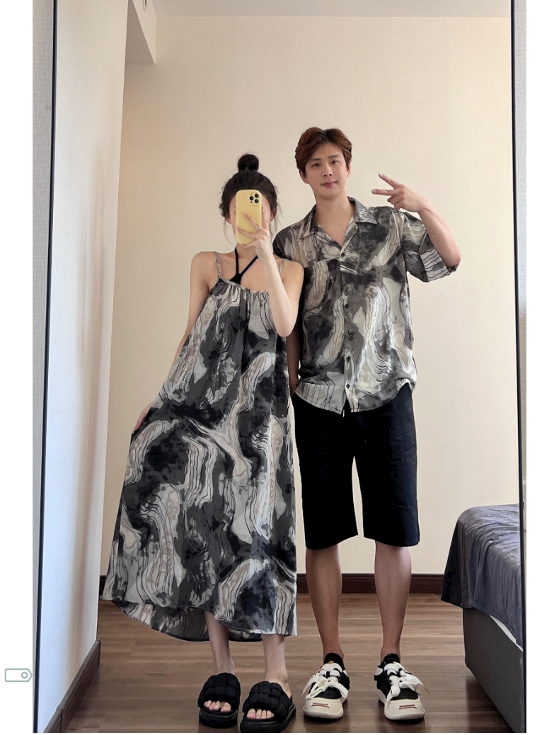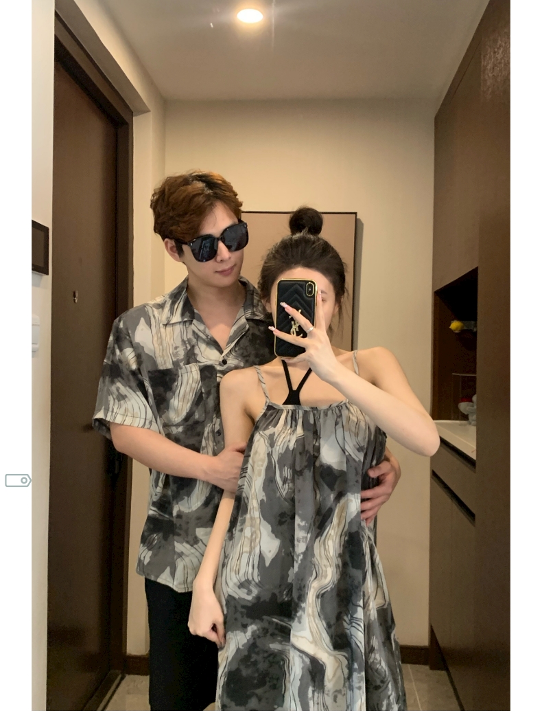 情侶裝夏季2023新款度假海邊沙灘襯衫設計感吊帶洋裝一衣一裙潮