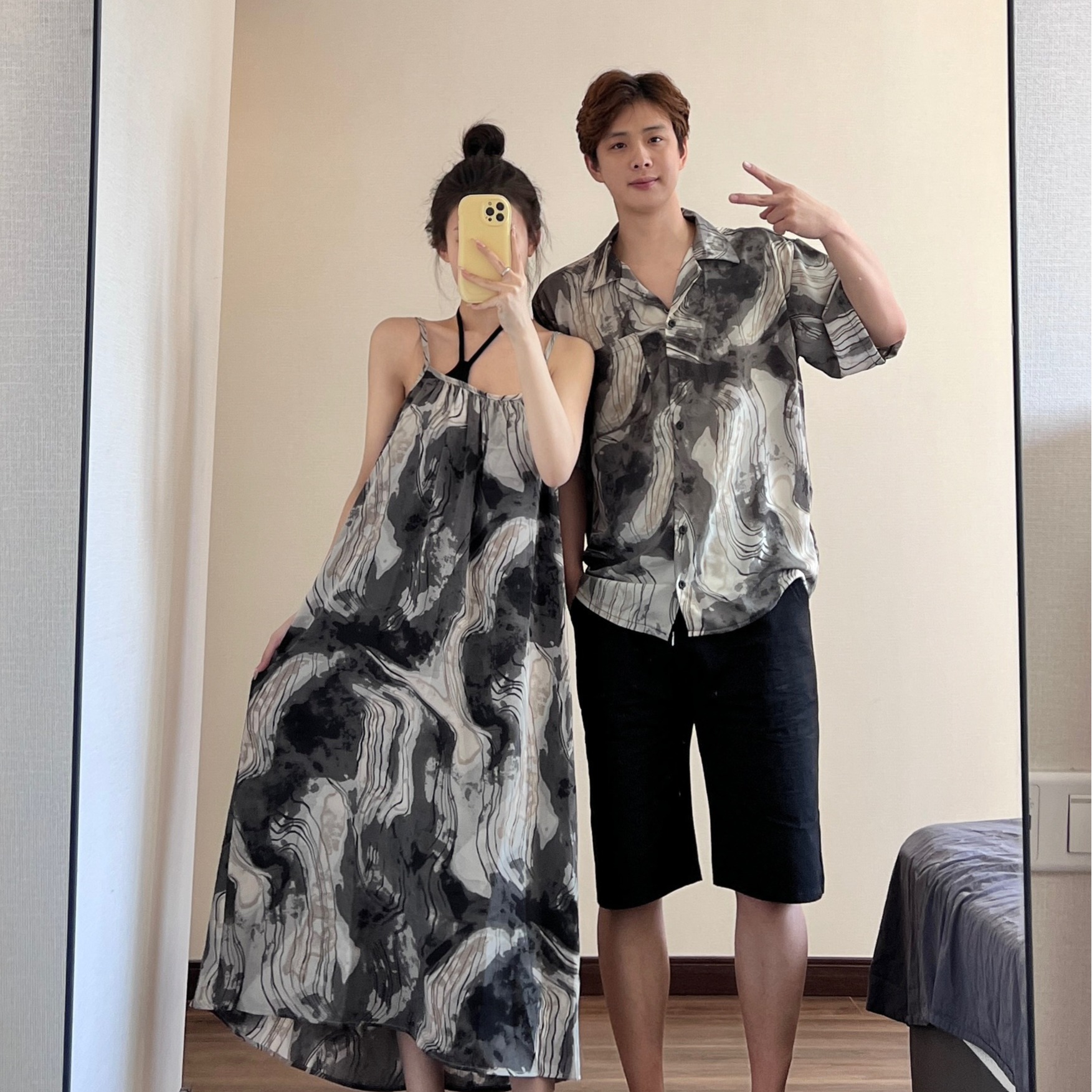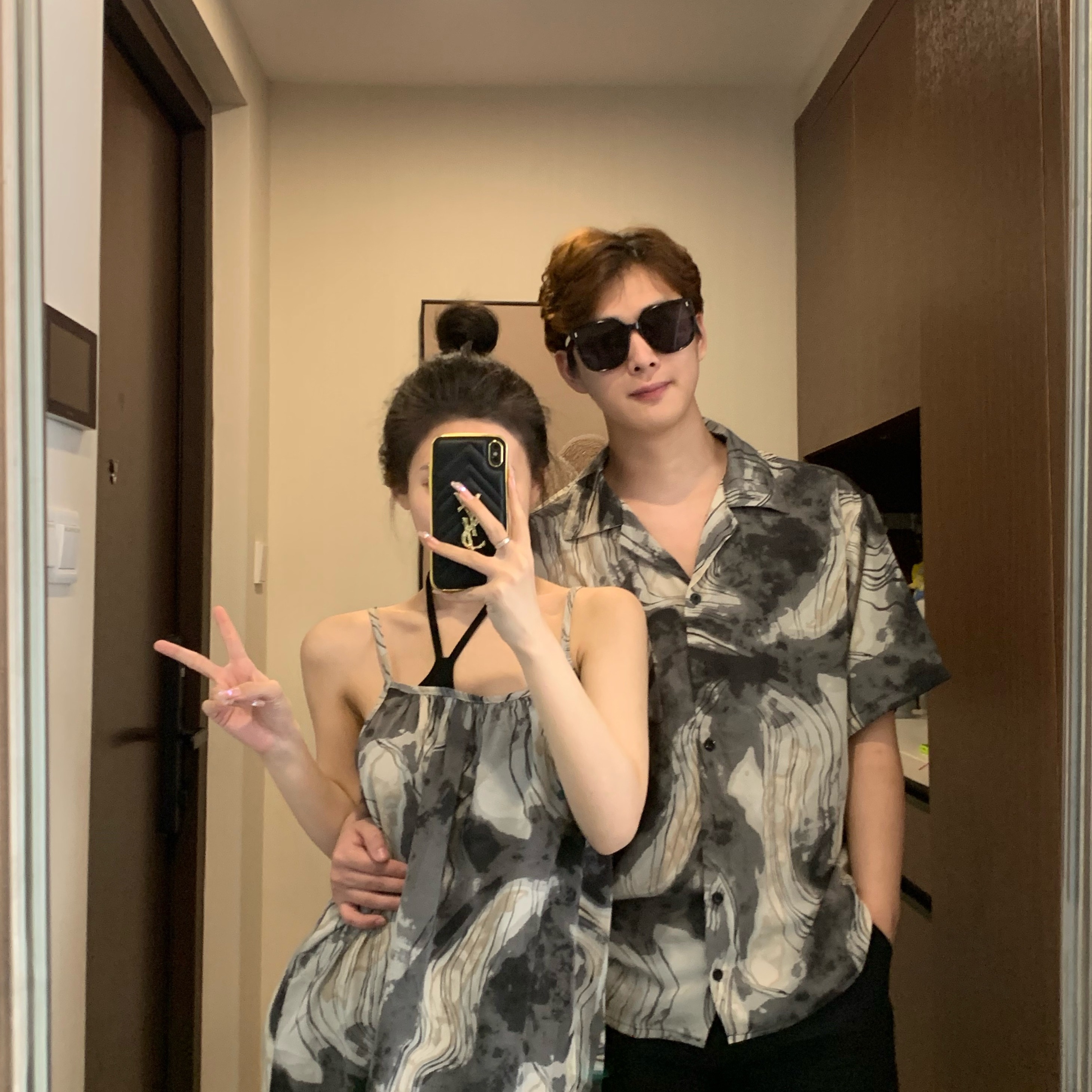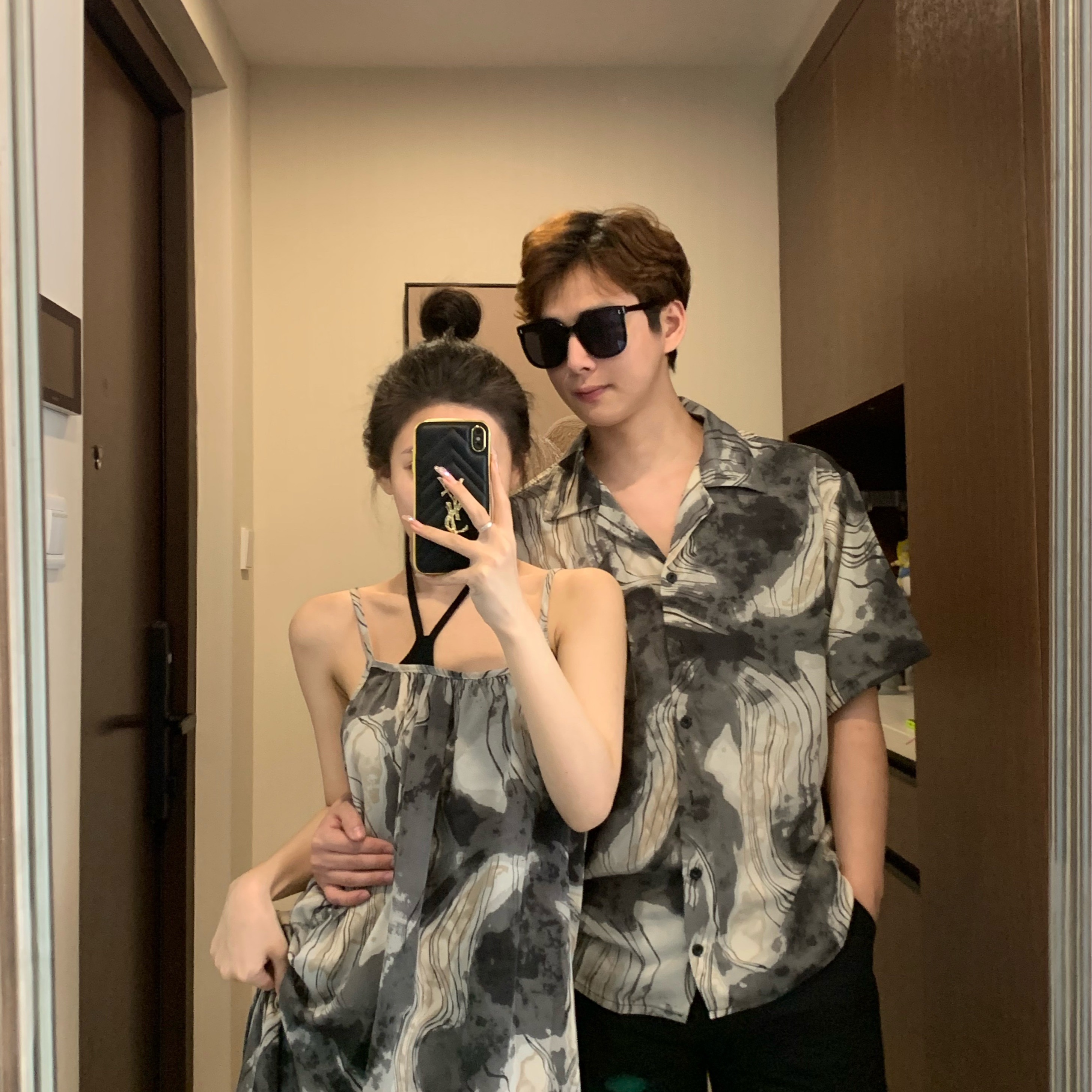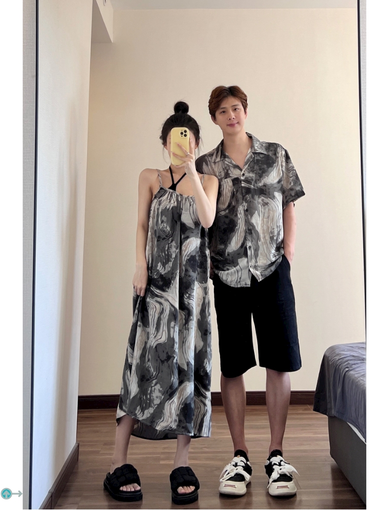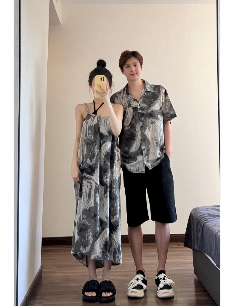 情侶裝夏季2023新款度假海邊沙灘襯衫設計感吊帶洋裝一衣一裙潮