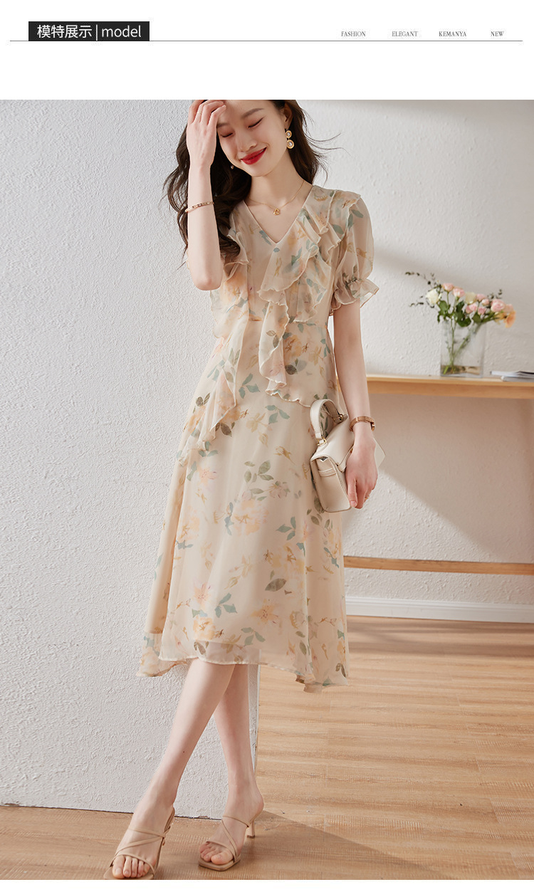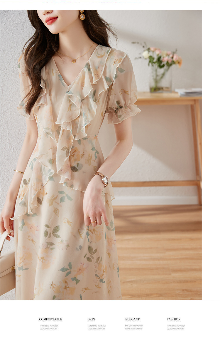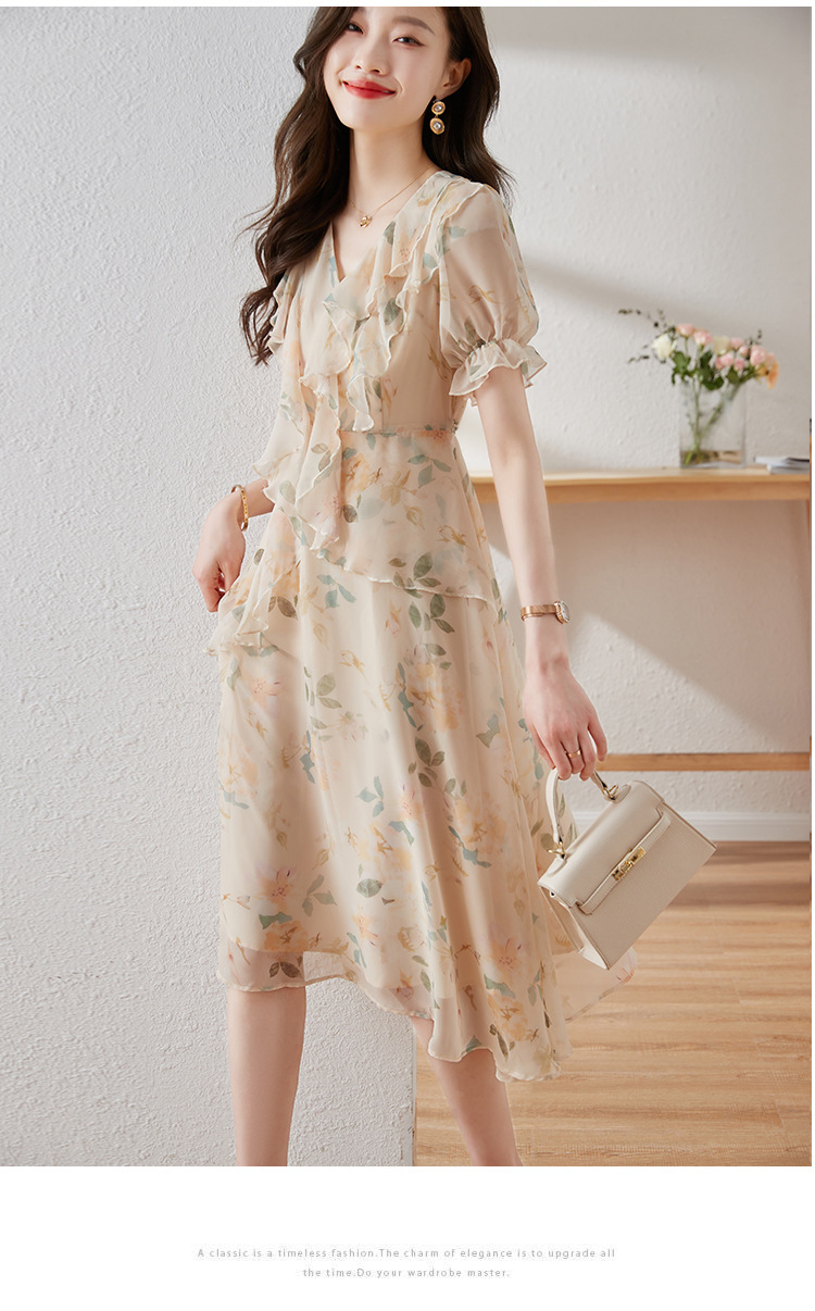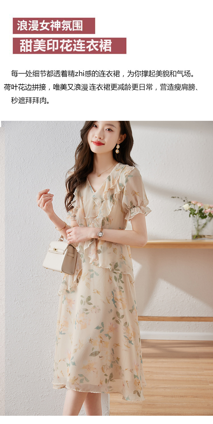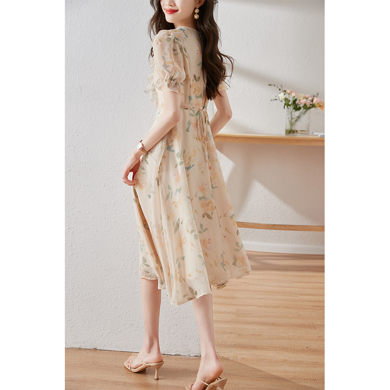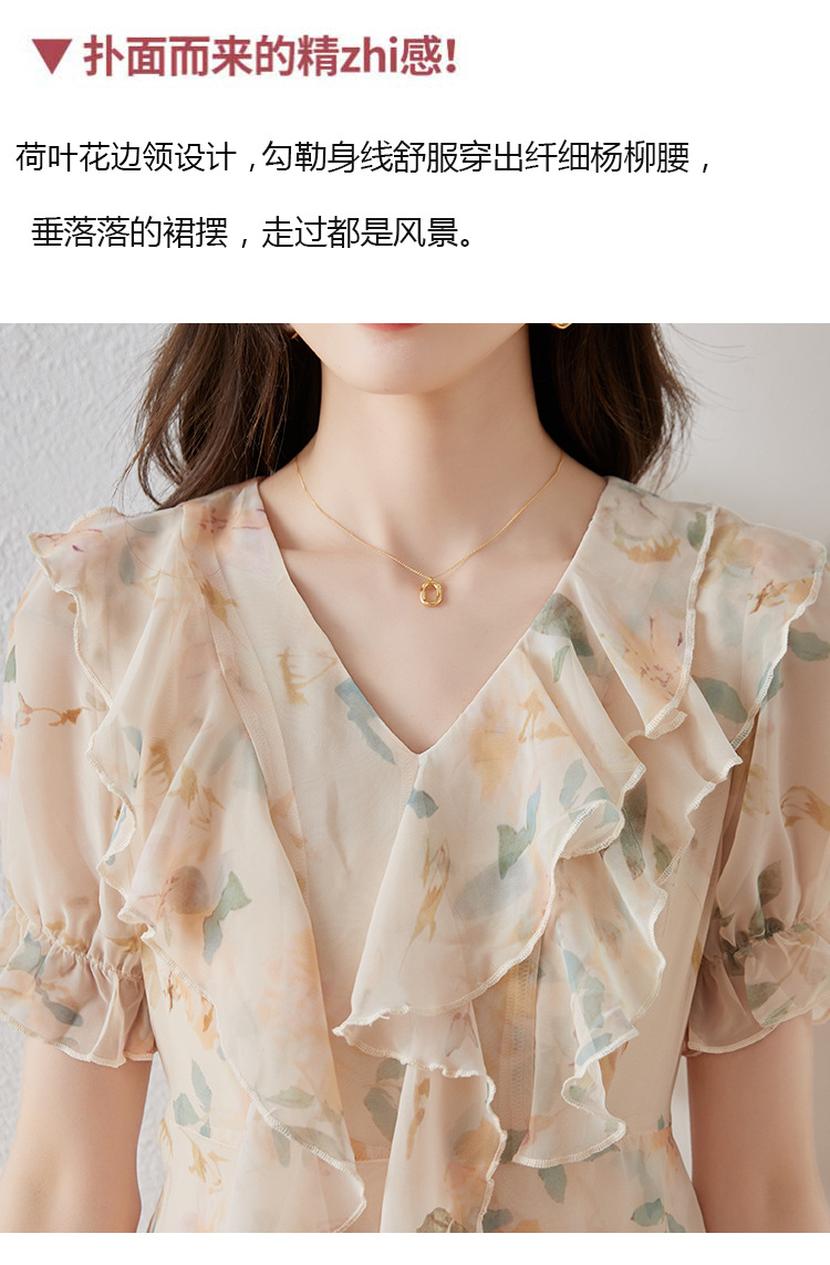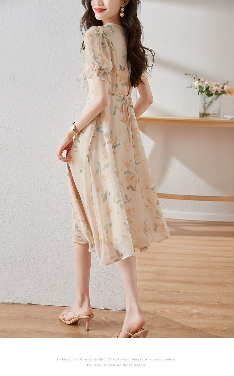 碎花雪纺连衣裙女夏2023修身显瘦设计感小众长裙质感高级感仙女裙