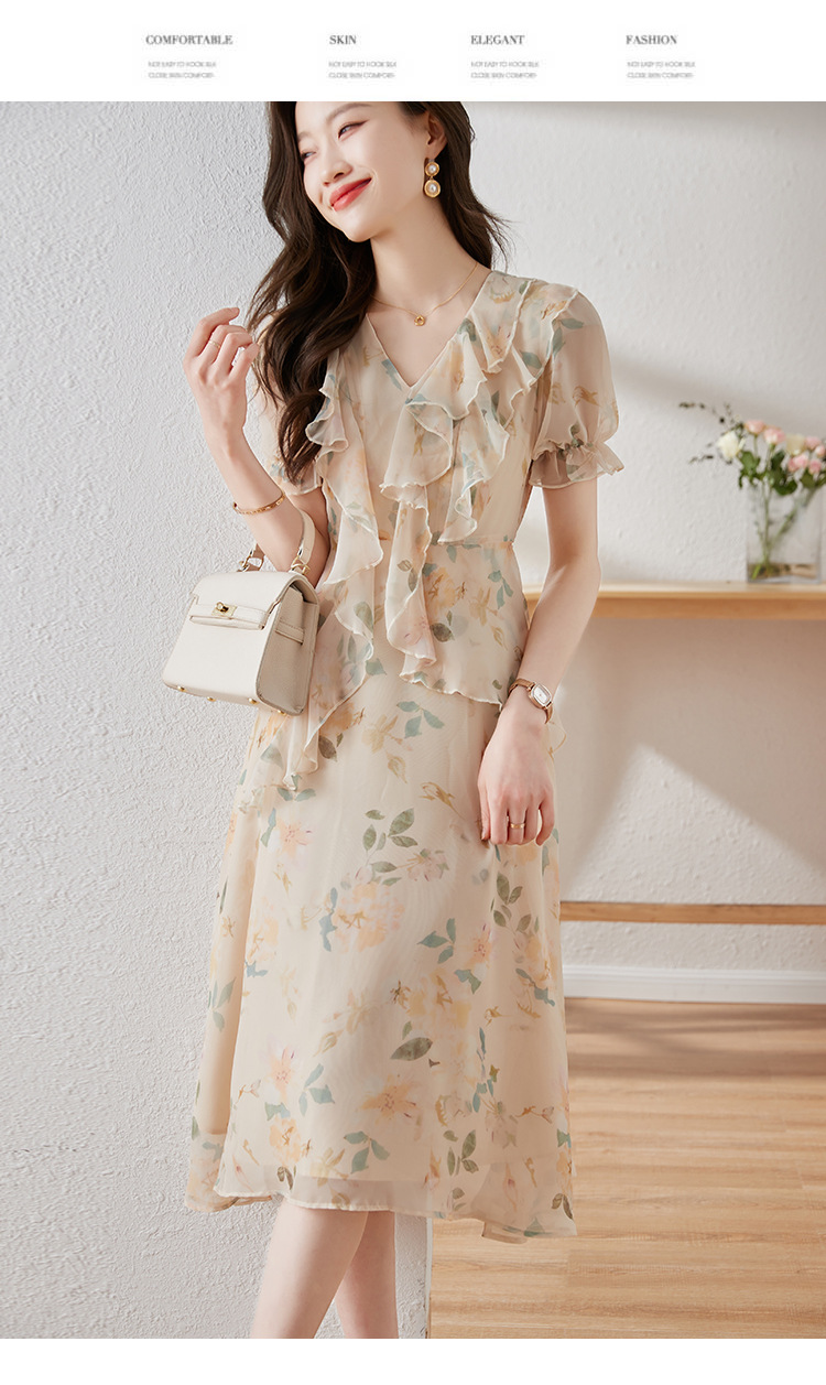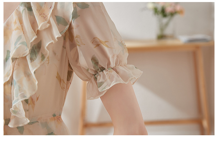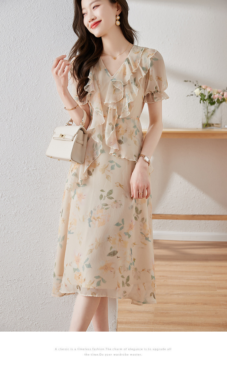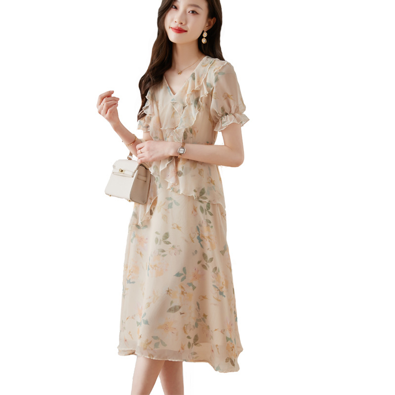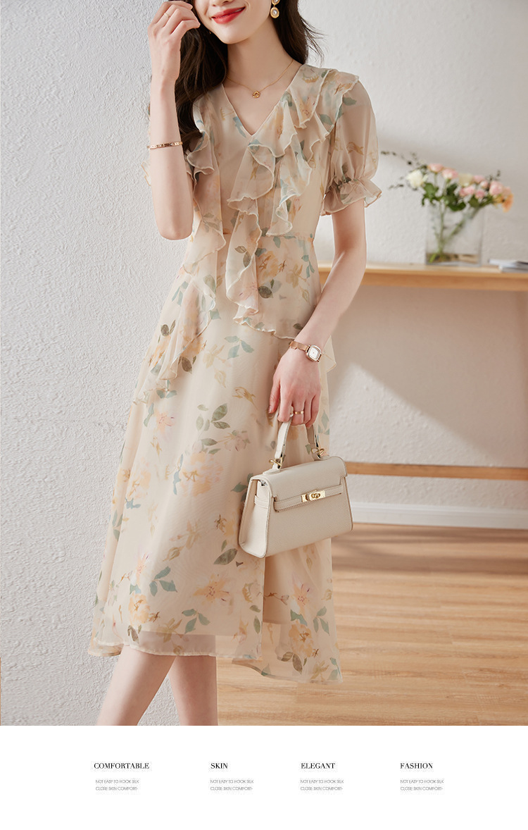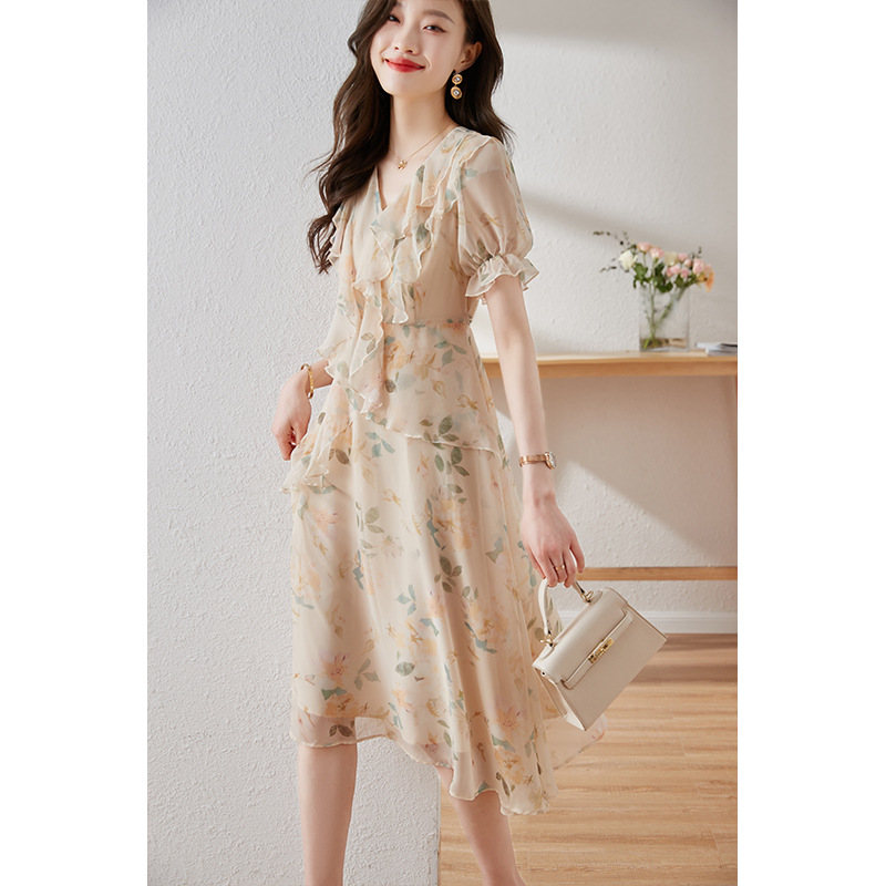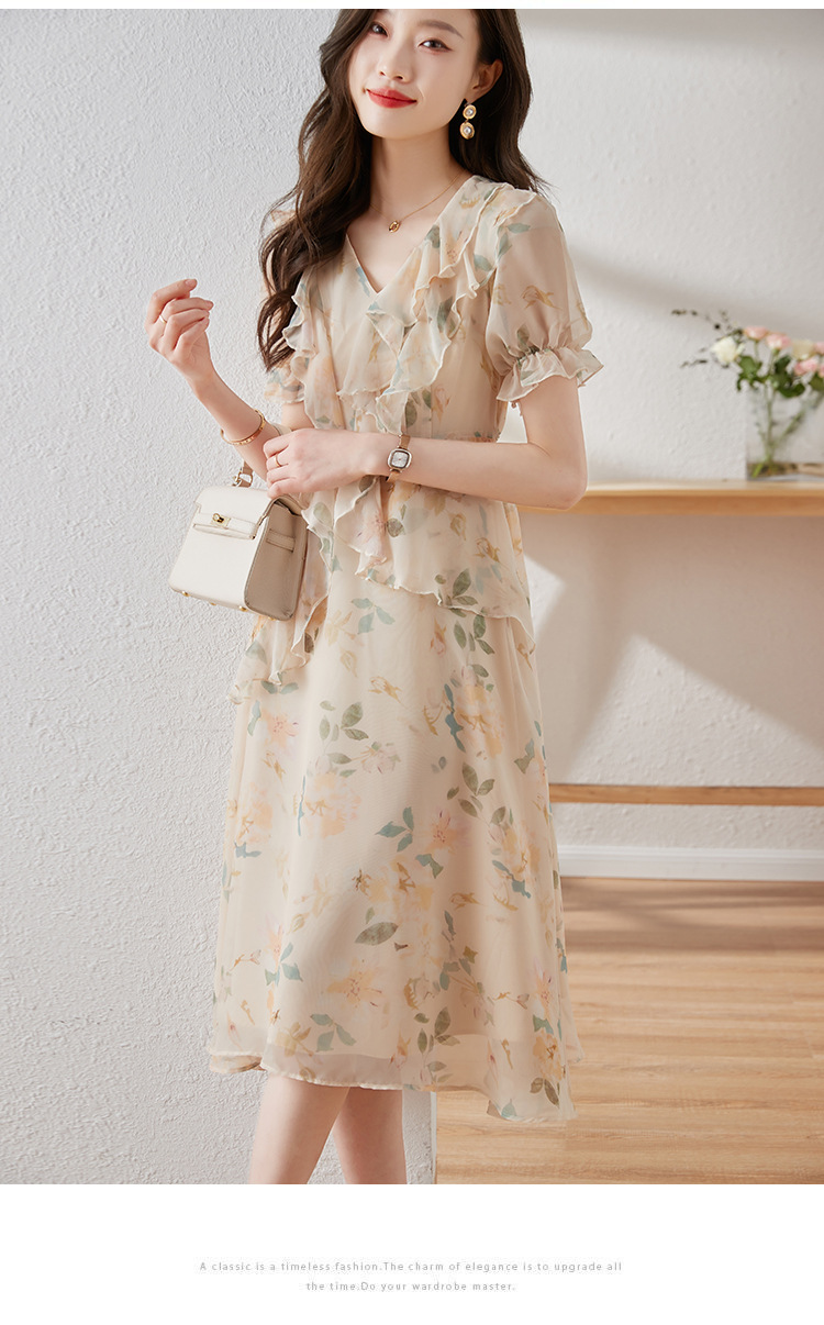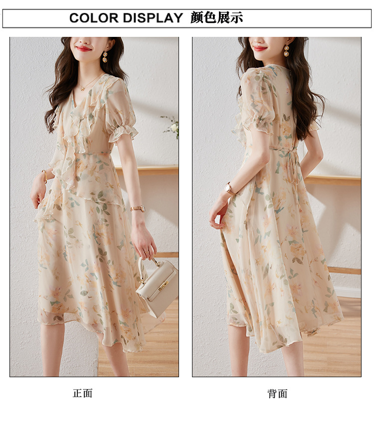 碎花雪纺连衣裙女夏2023修身显瘦设计感小众长裙质感高级感仙女裙