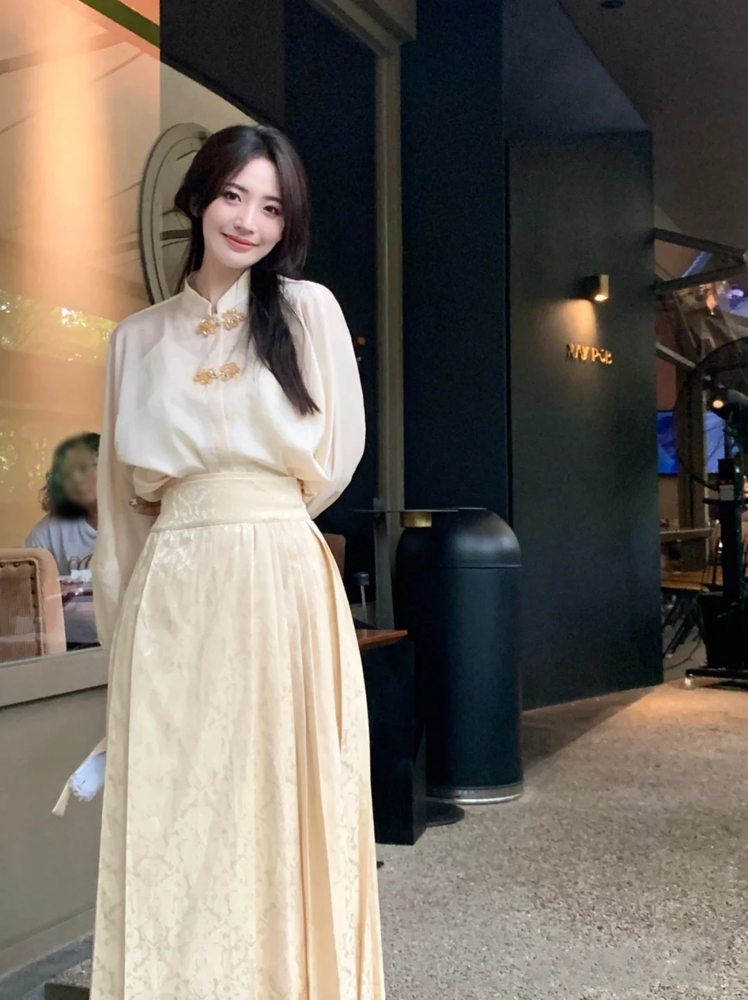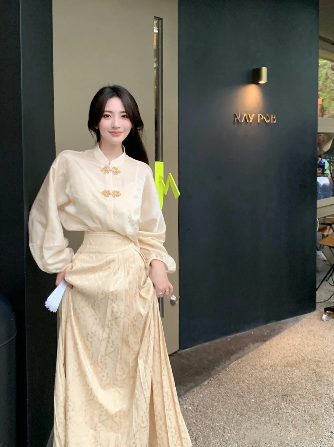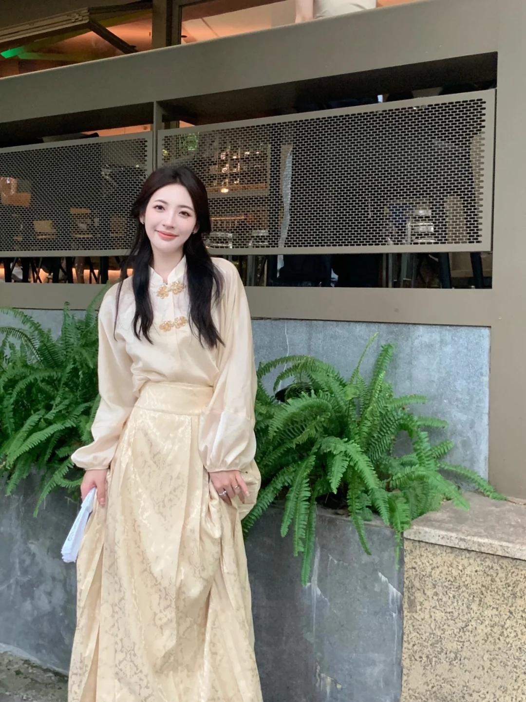 復古中國風馬面襯衫搭配半身裙新中式套裝女秋季2022新款設計感春