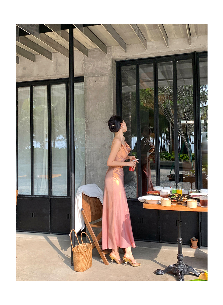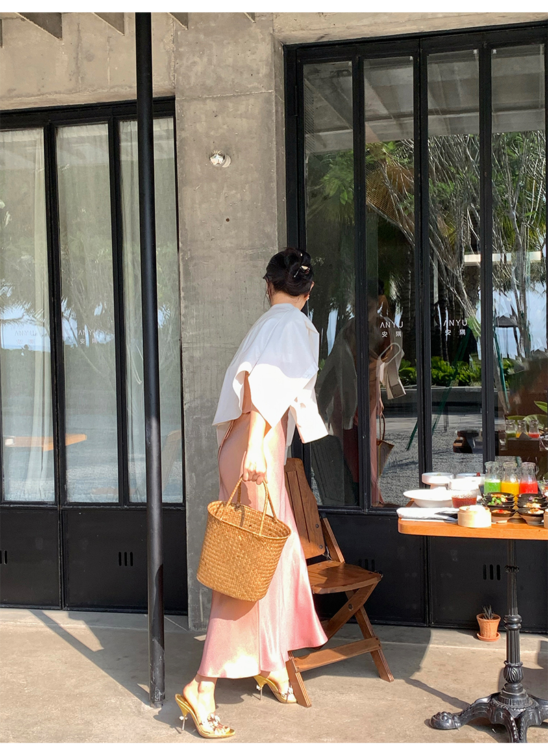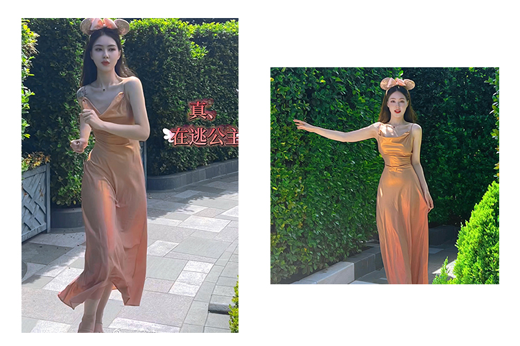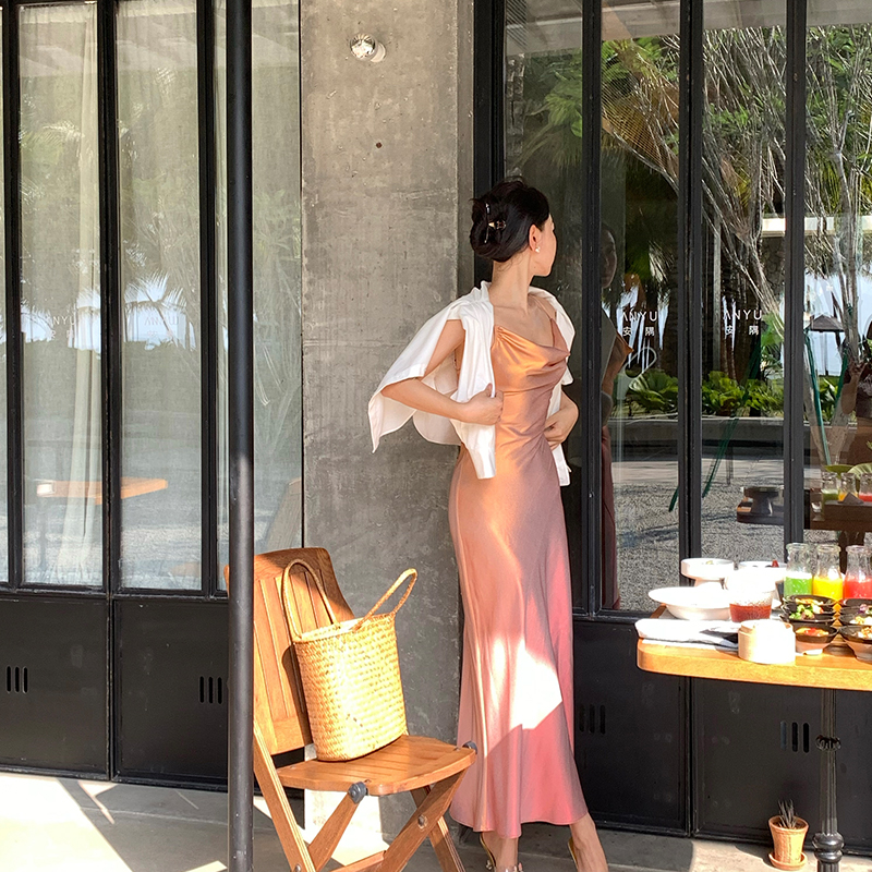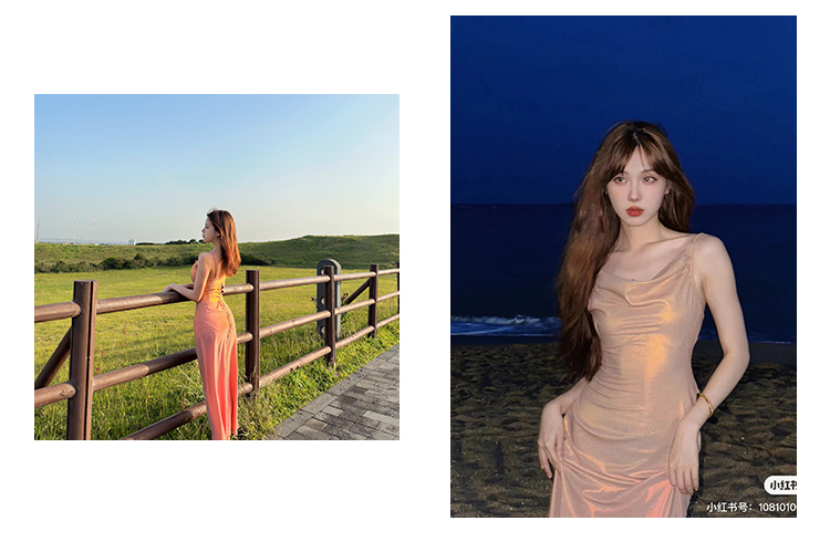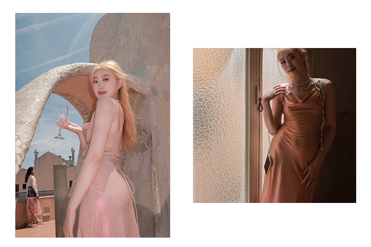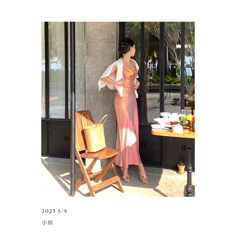 因斜裁+腰围收细,面料垂感强