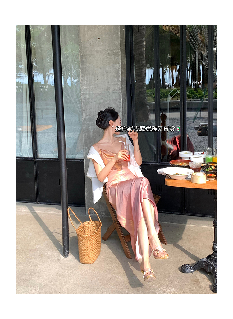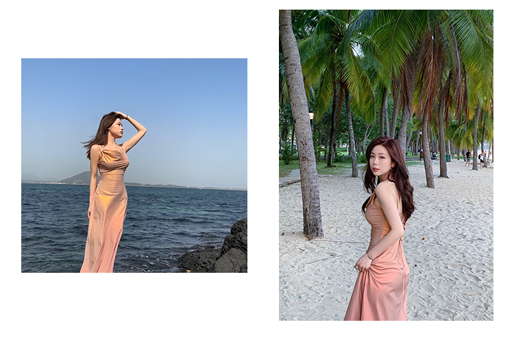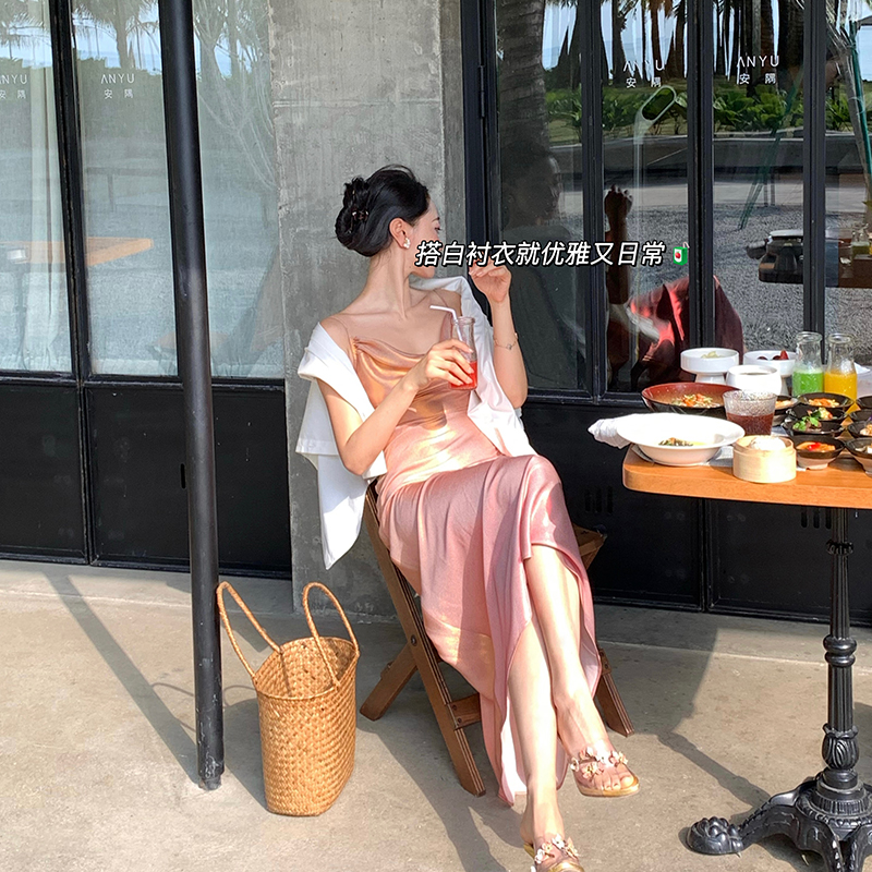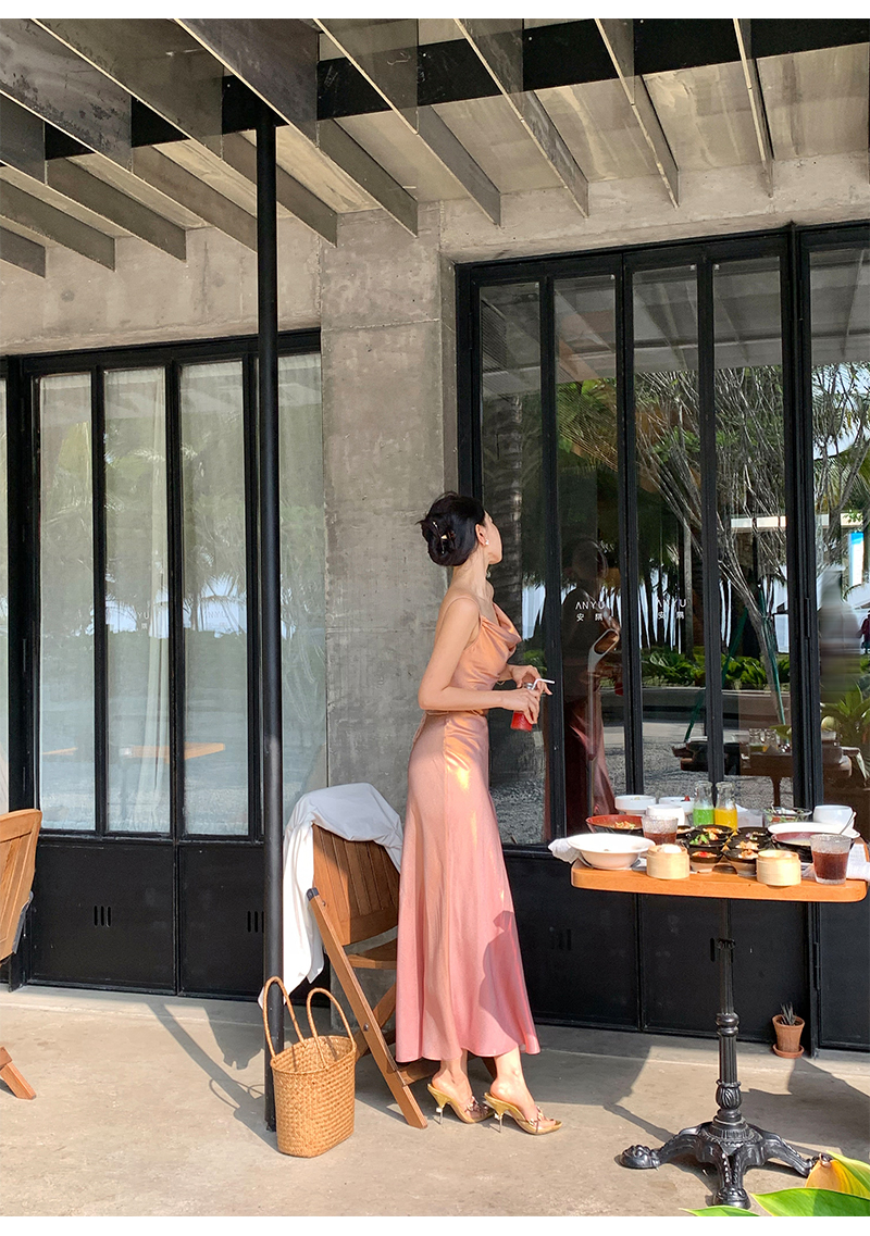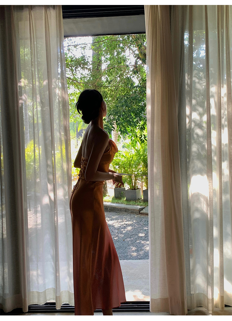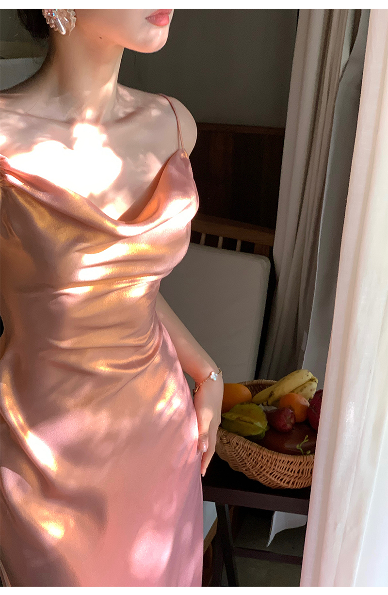 因斜裁+腰围收细,面料垂感强