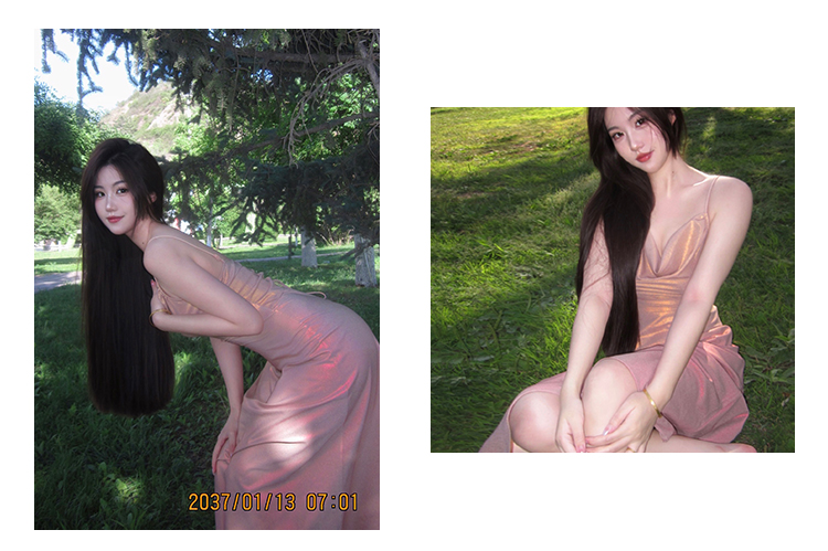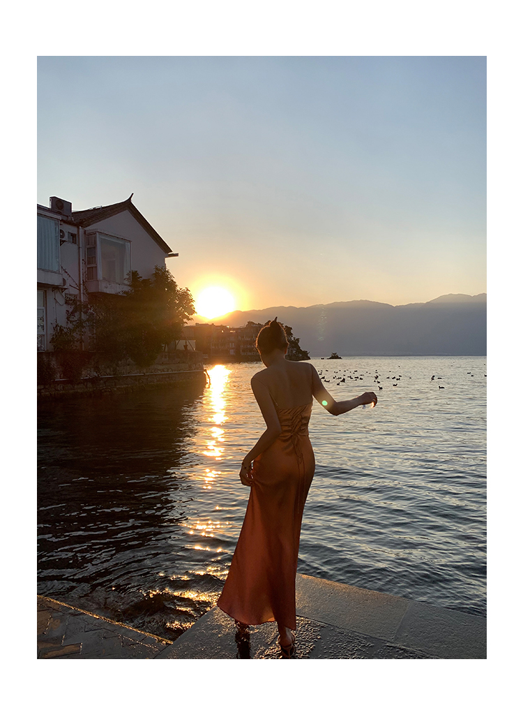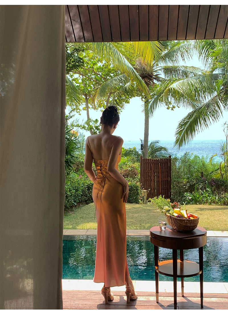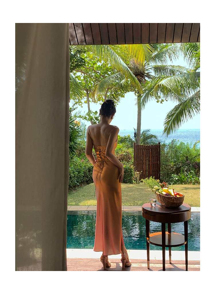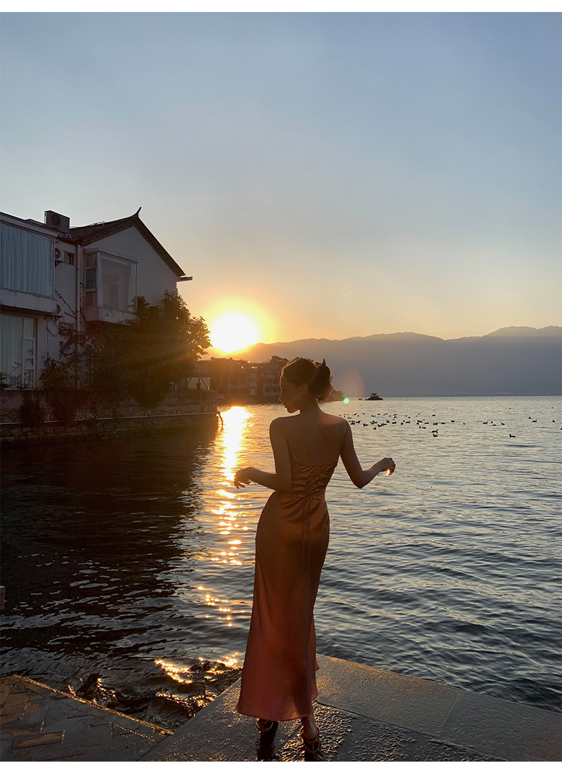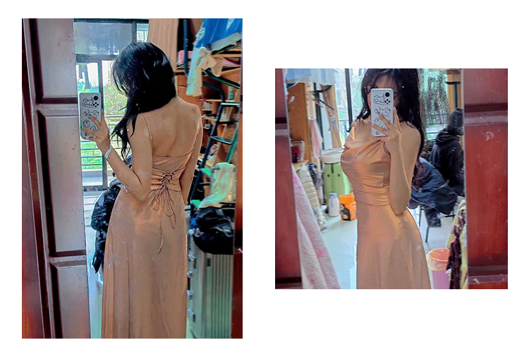 因斜裁+腰围收细,面料垂感强