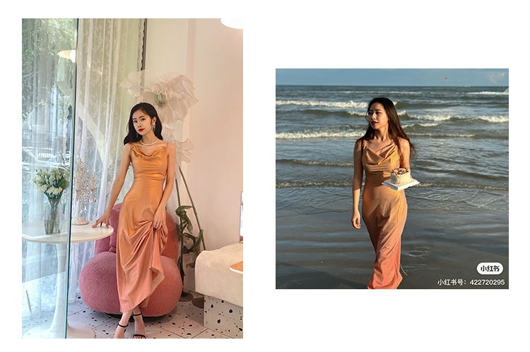 加上面料本身的垂感,丝滑如德芙巧克力