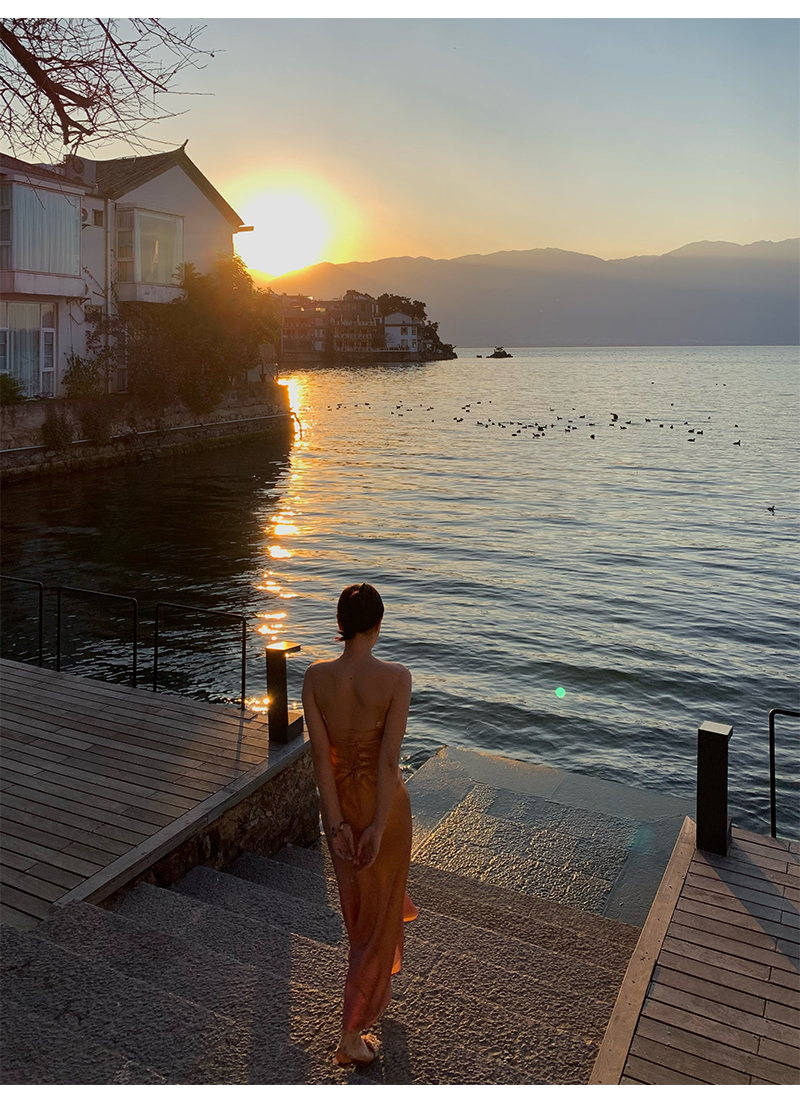 后背做微微的露背设计,上身性感优雅