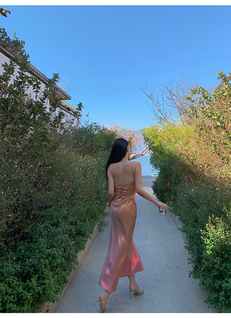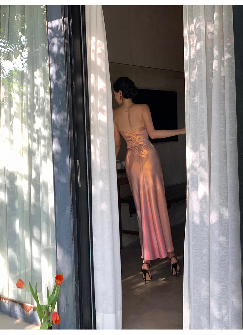 小麗XIAOLI漸層人魚姬吊帶包臀連衣長裙夏新款多巴胺高級感魚尾裙