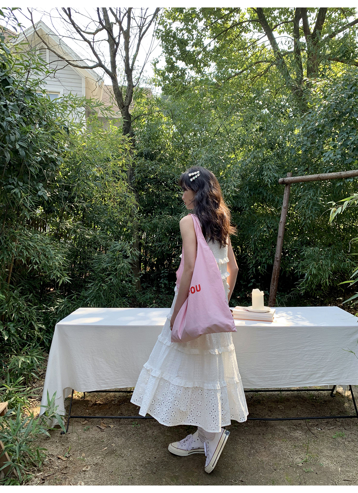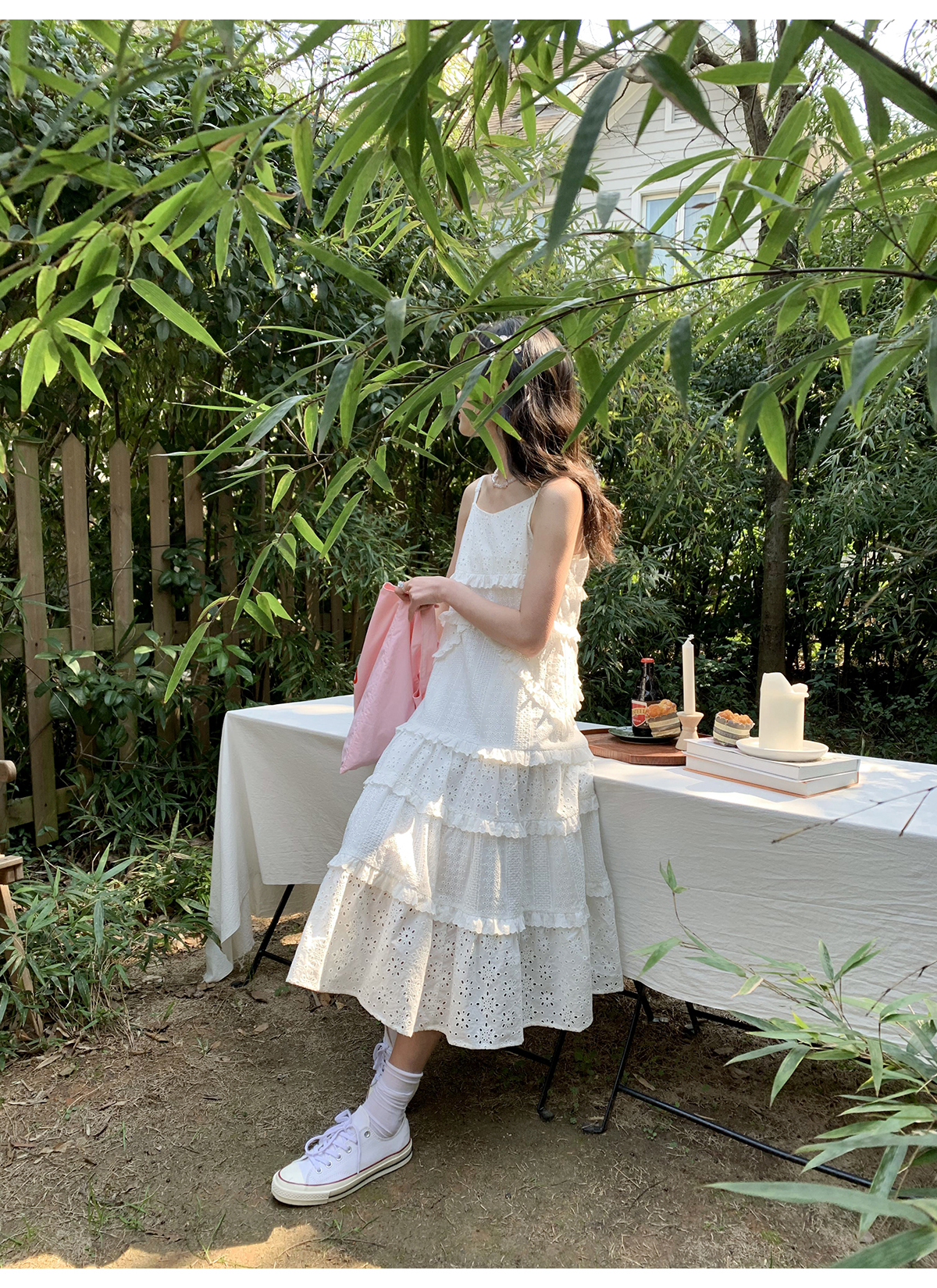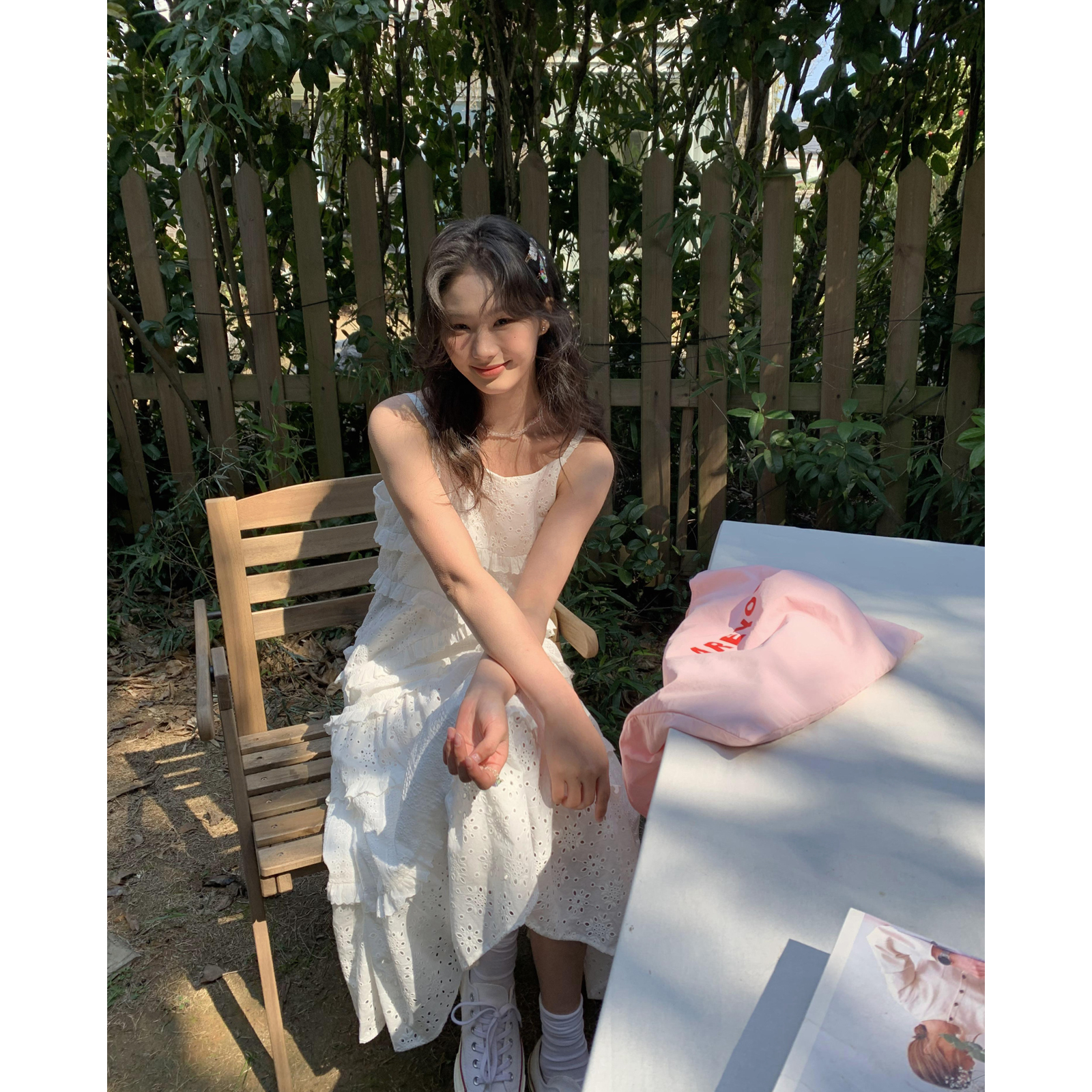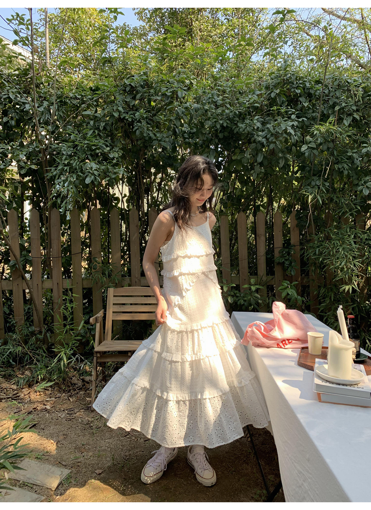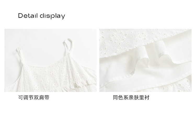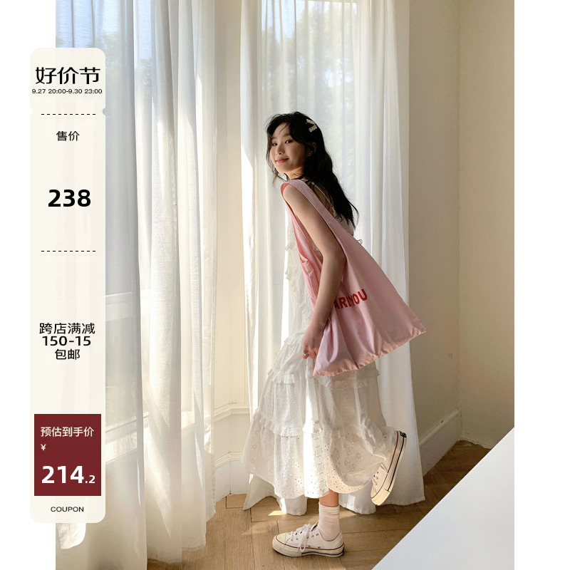 你好卡農 木耳花邊白色連衣裙2023女新款夏小個子a字中長版吊帶裙