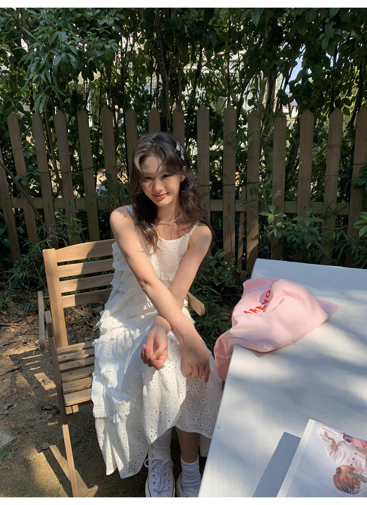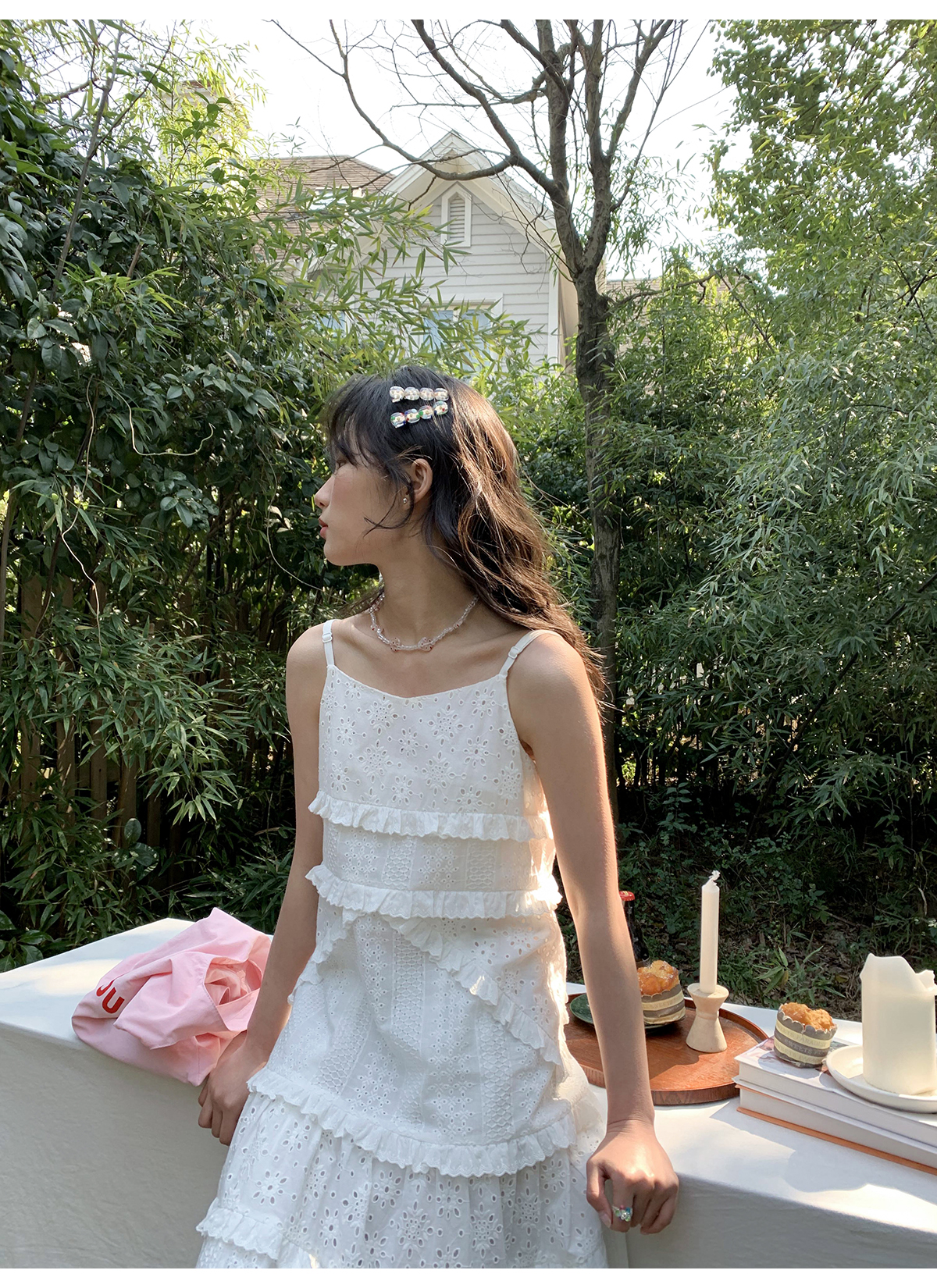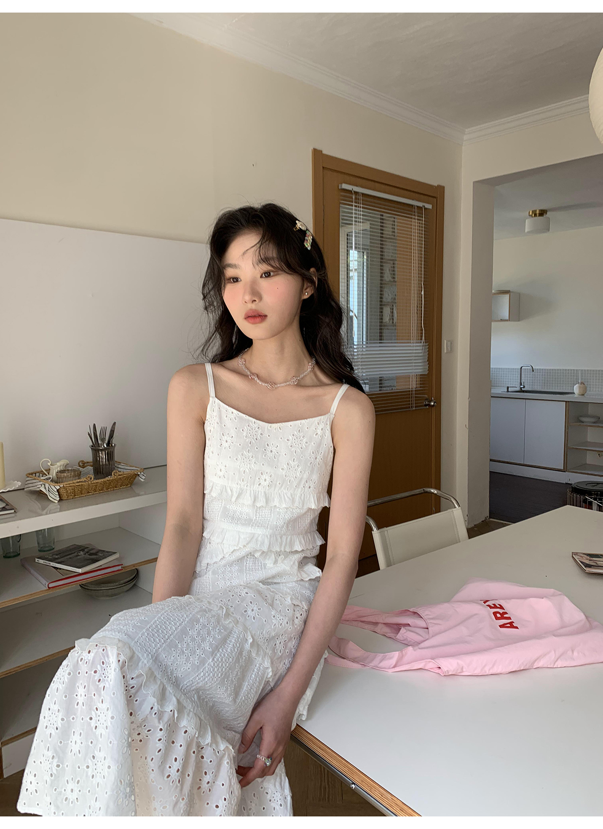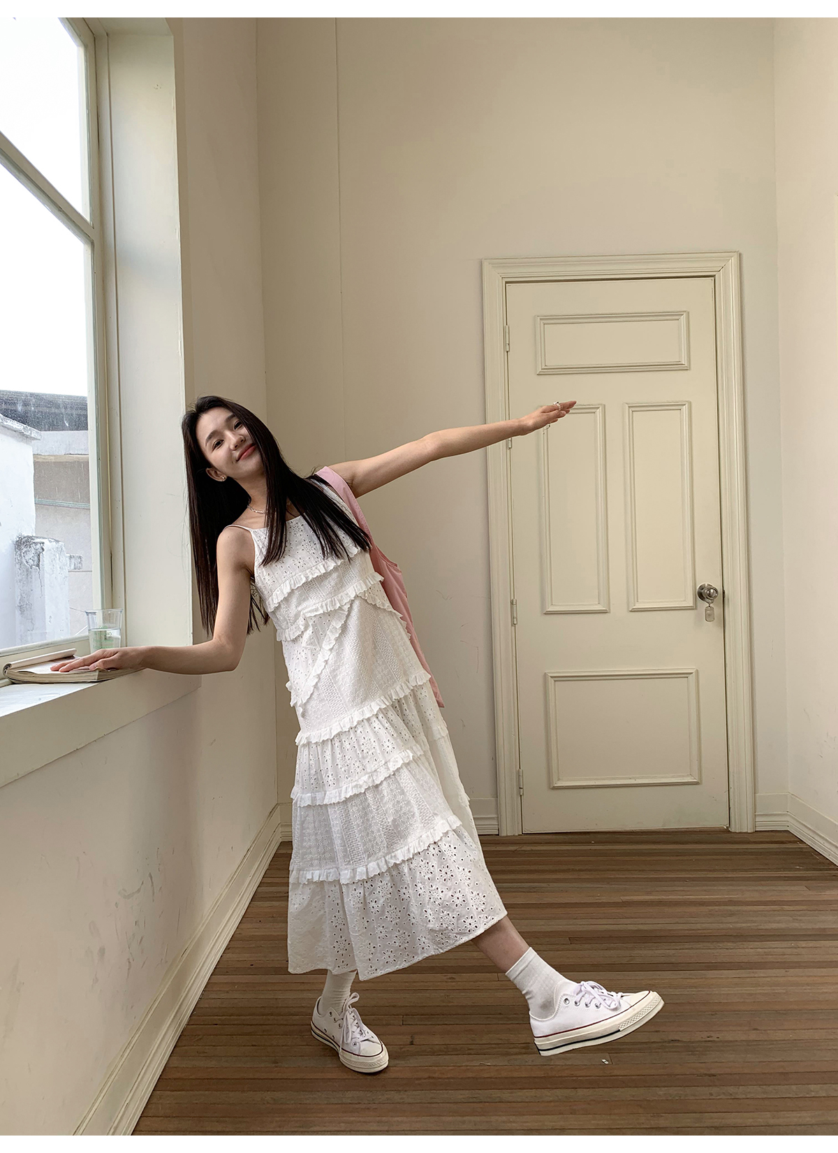 你好卡農 木耳花邊白色連衣裙2023女新款夏小個子a字中長版吊帶裙
