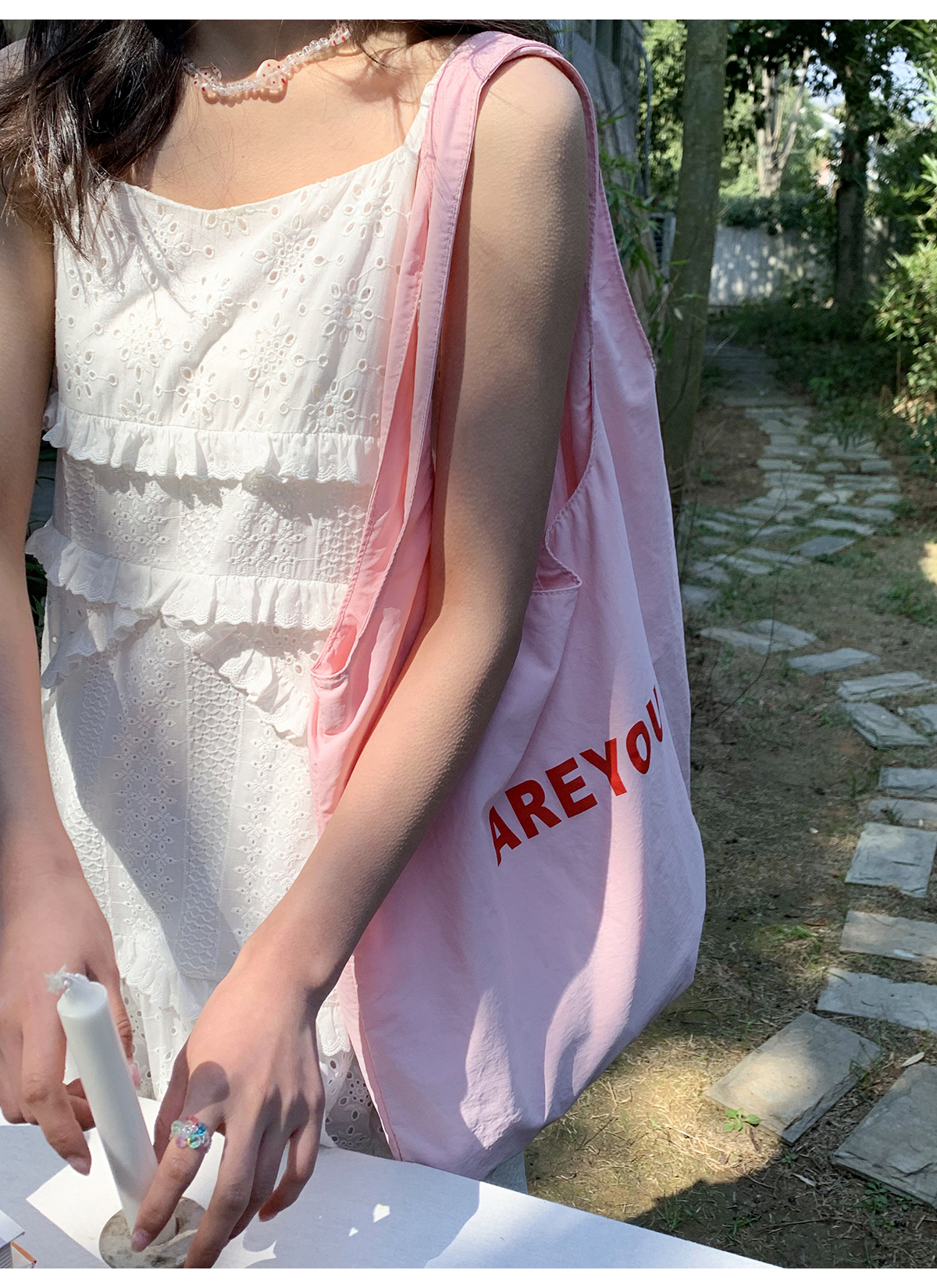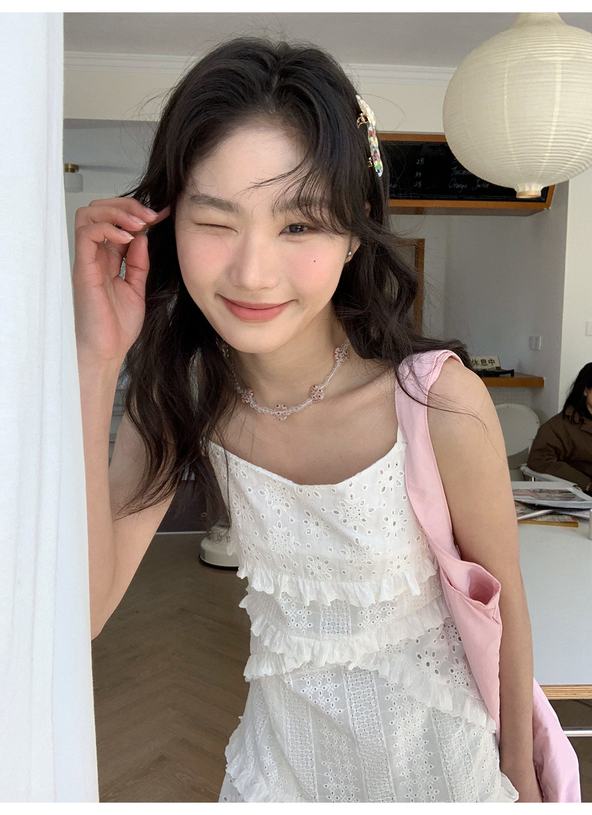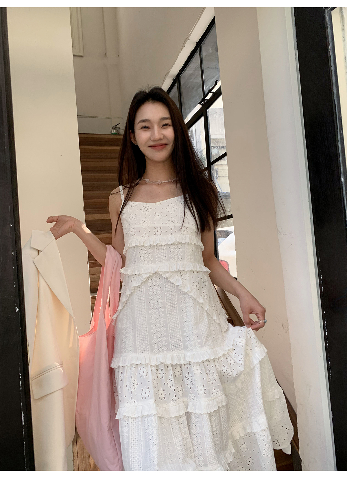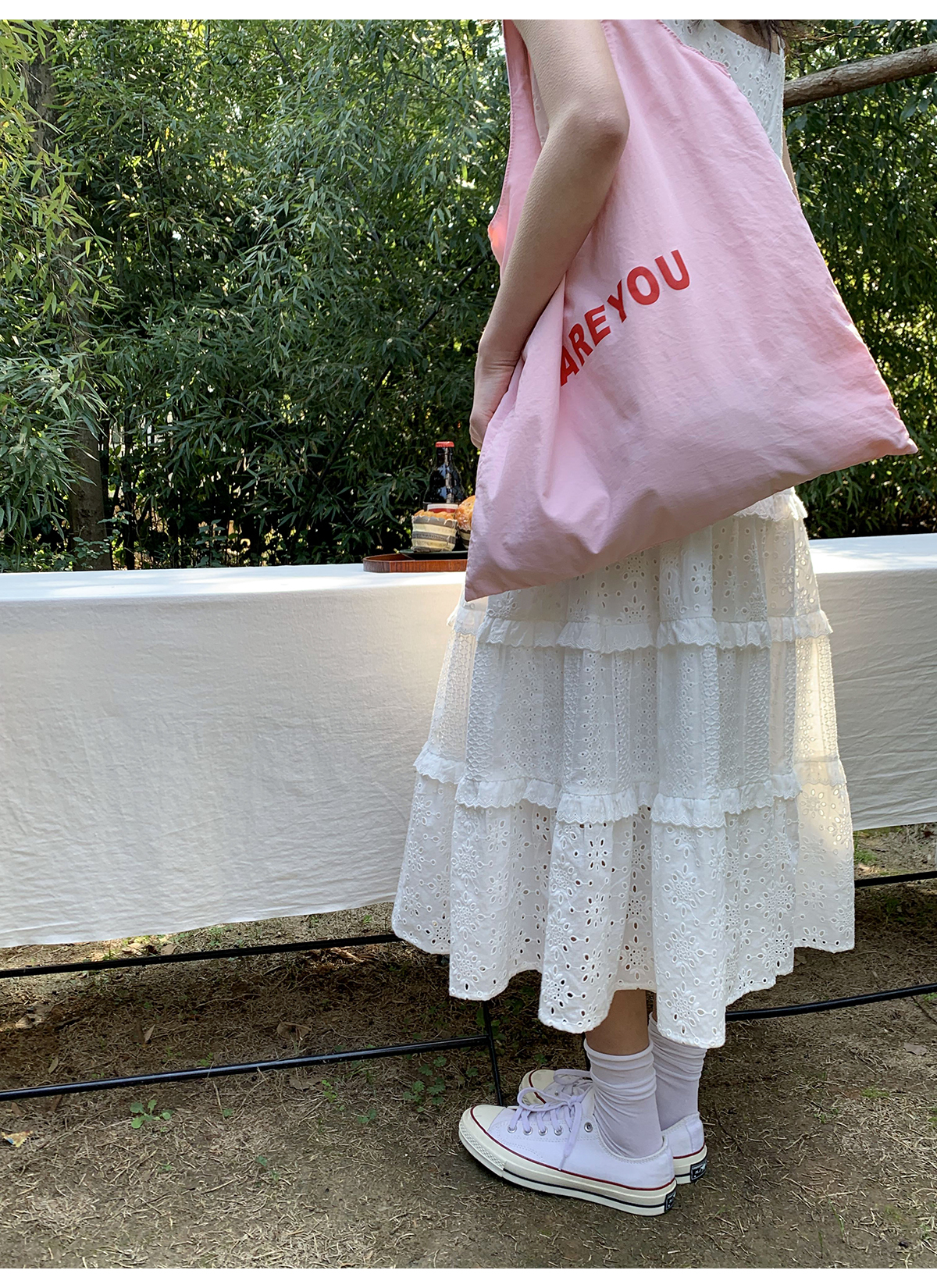你好卡農 木耳花邊白色連衣裙2023女新款夏小個子a字中長版吊帶裙