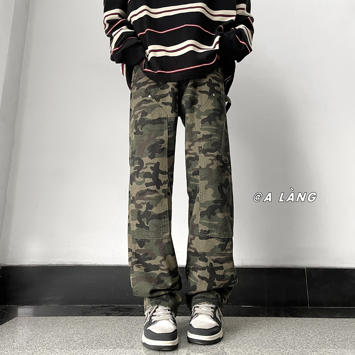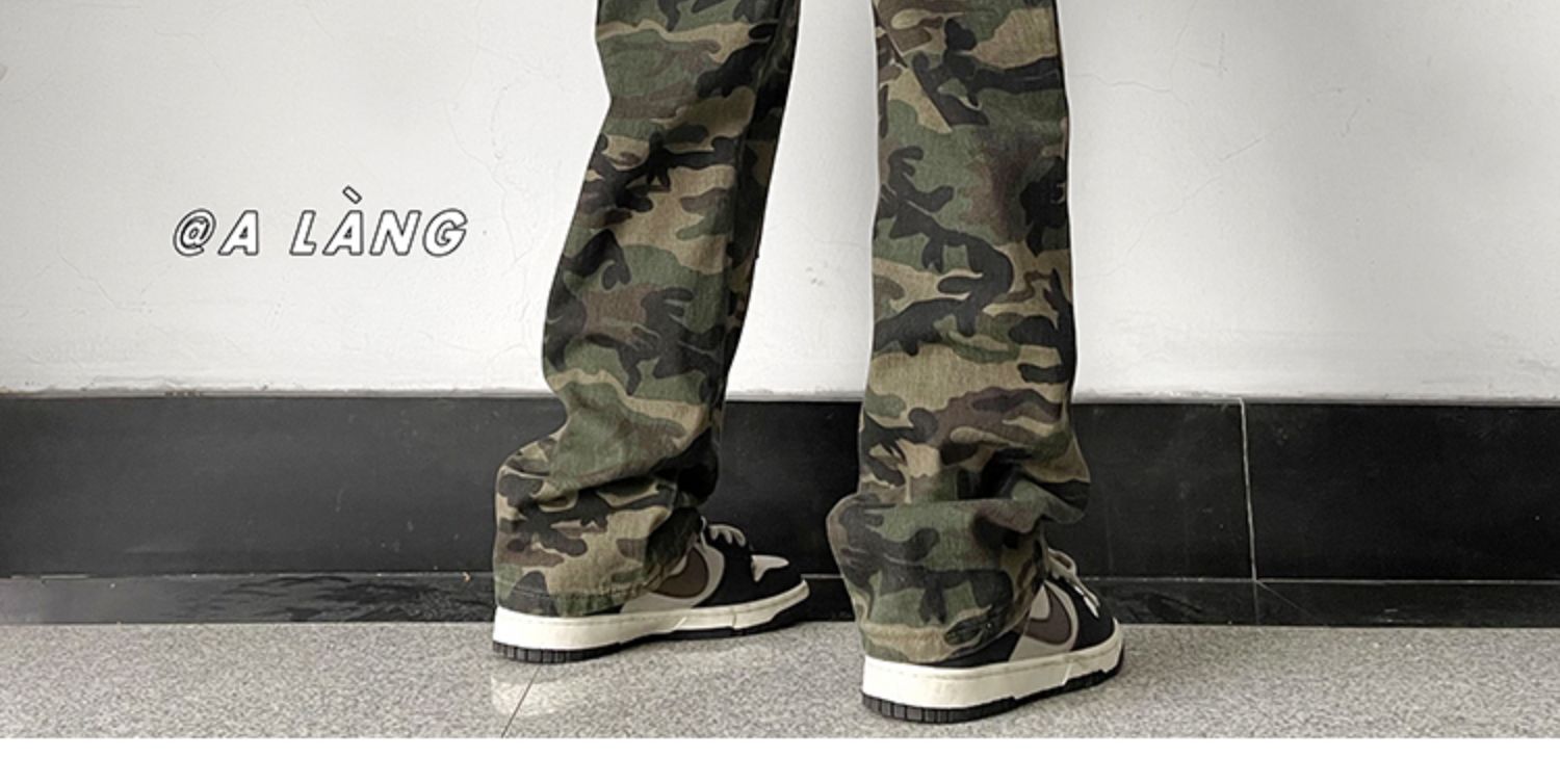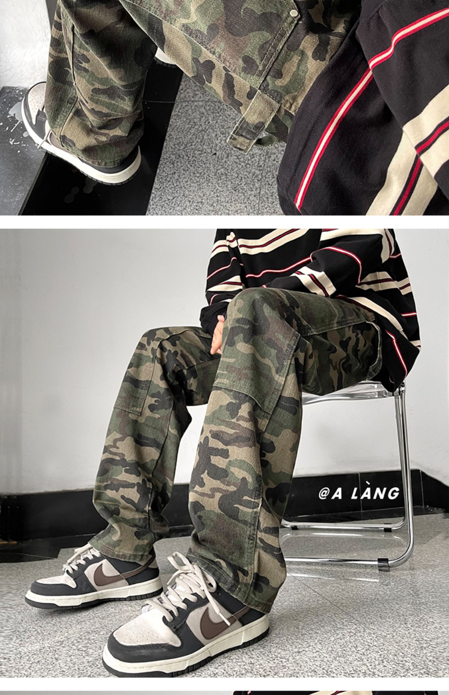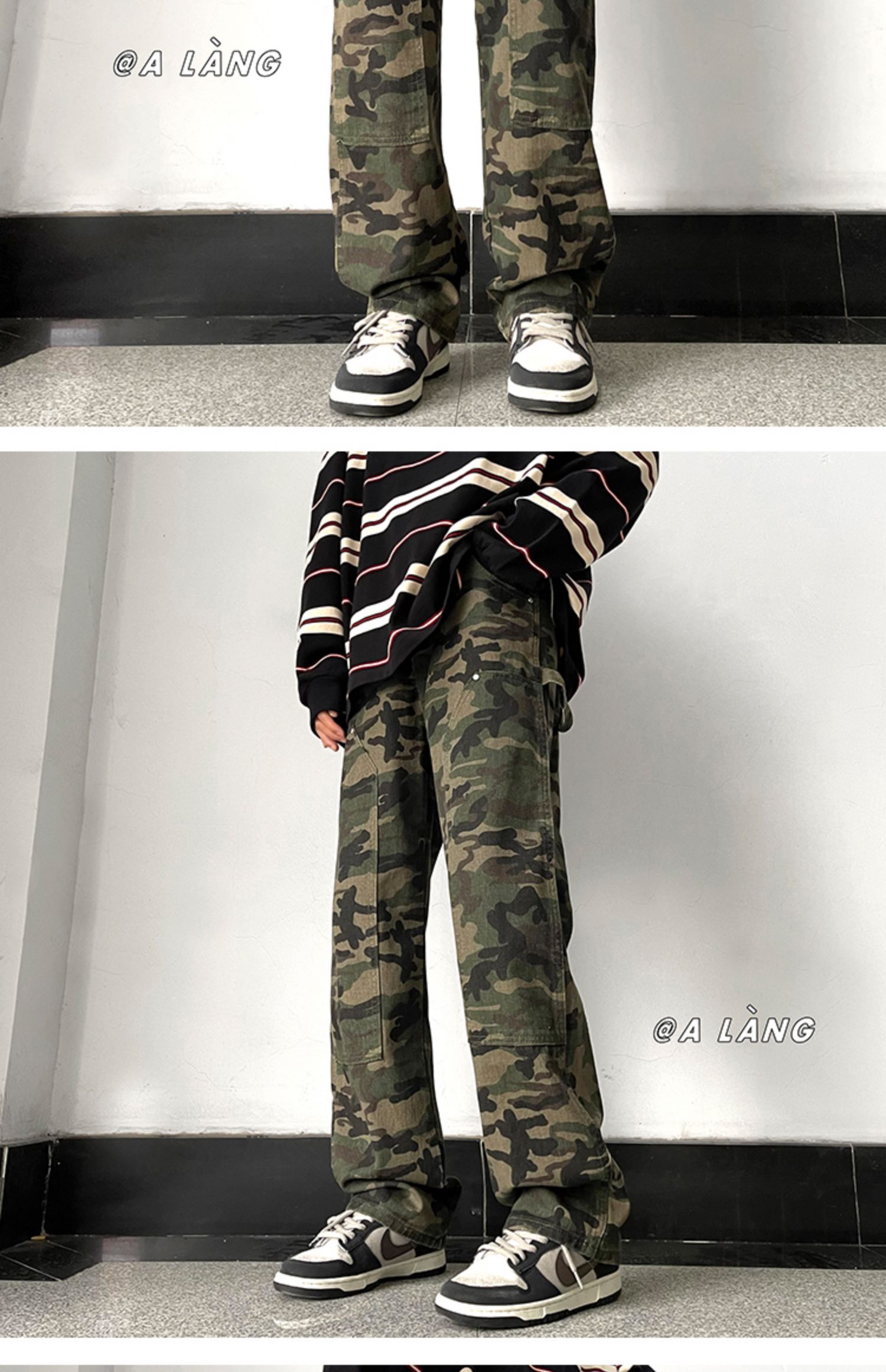 美式復古迷彩褲cleanfit伐木工裝褲直筒修身多口袋vibe褲子微喇叭褲