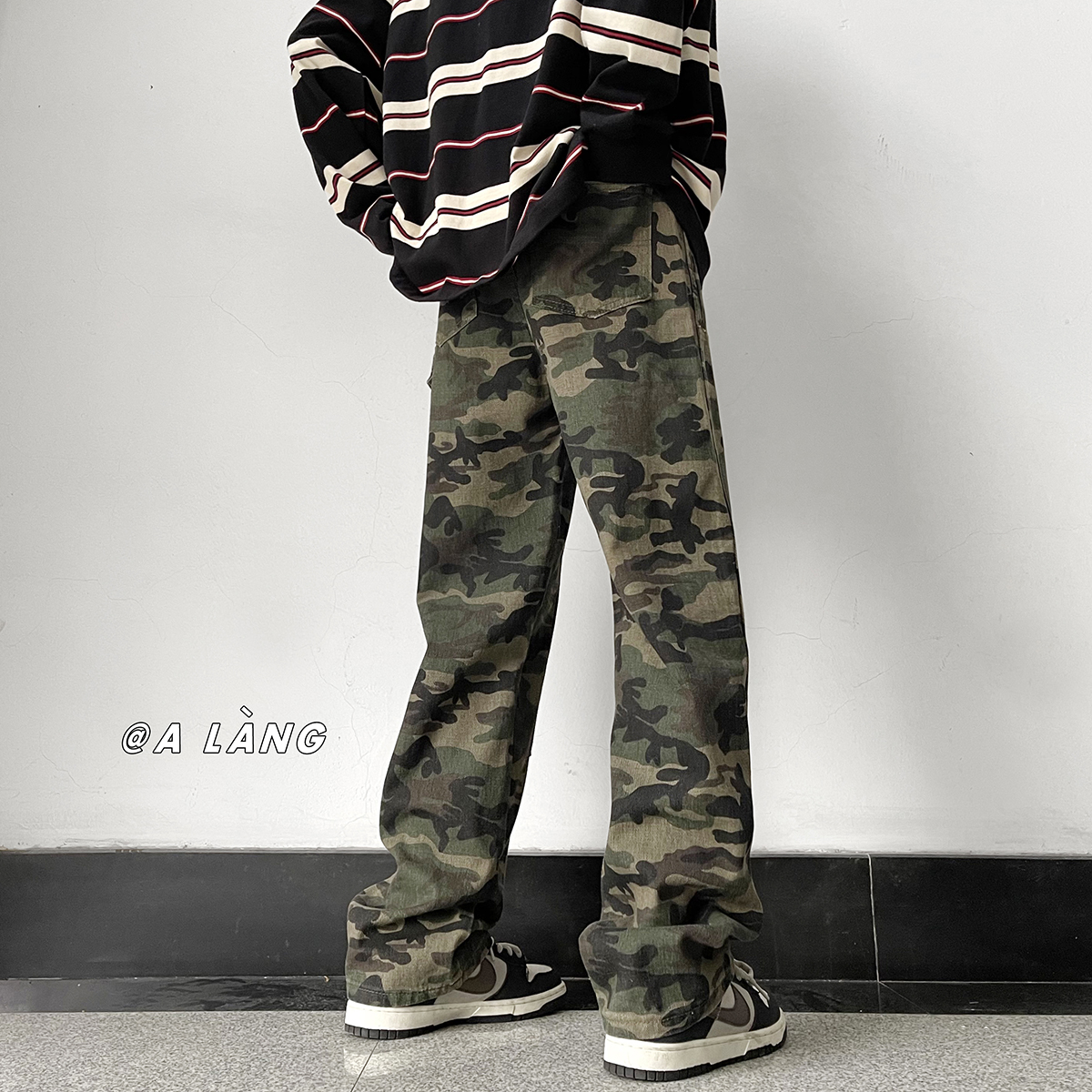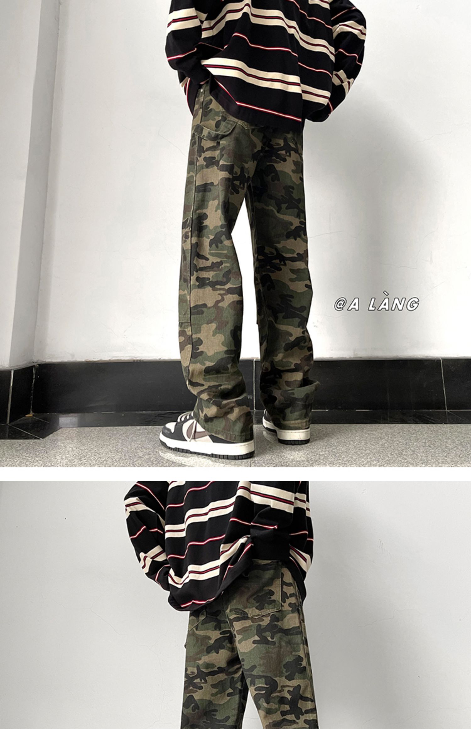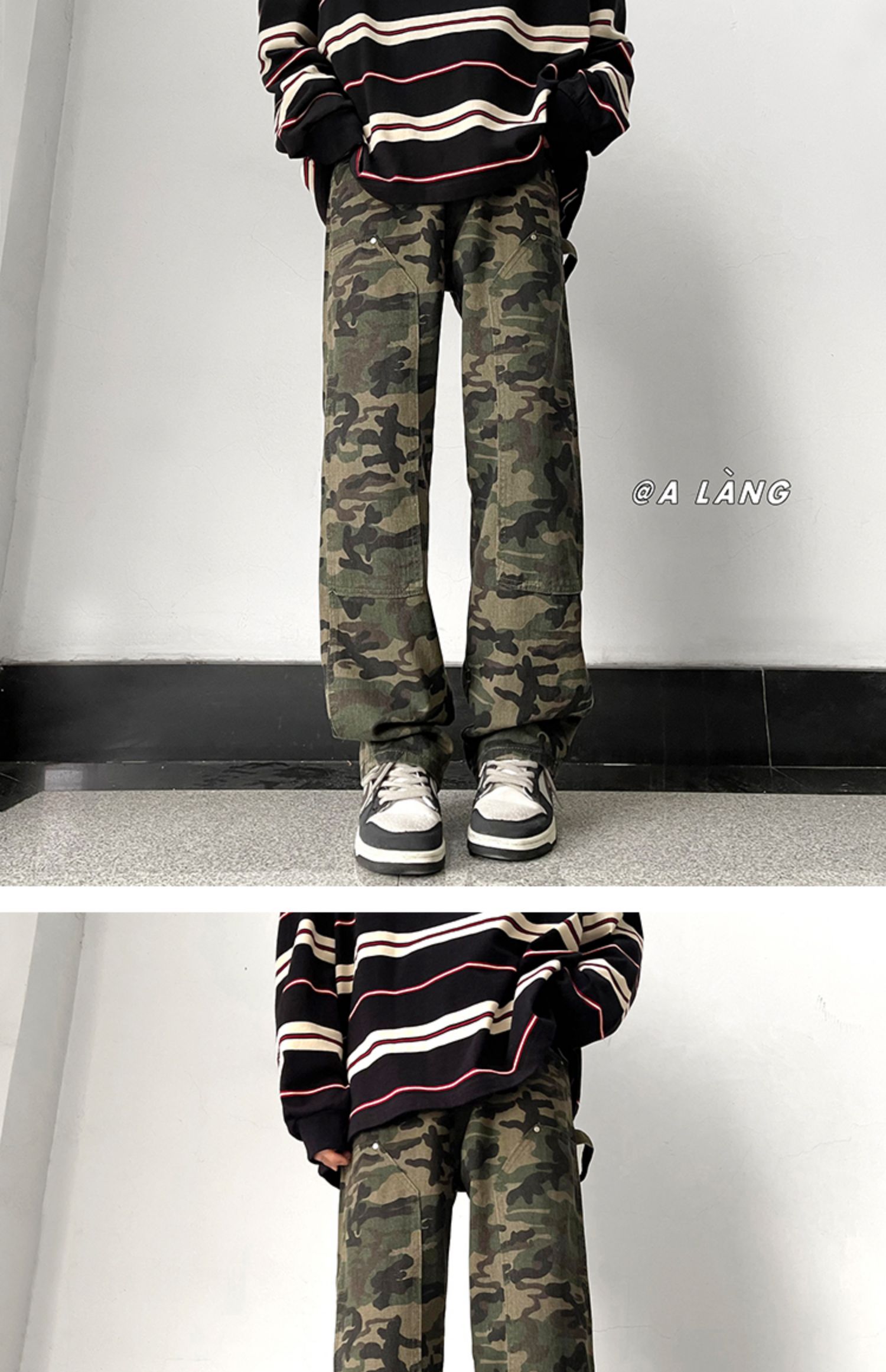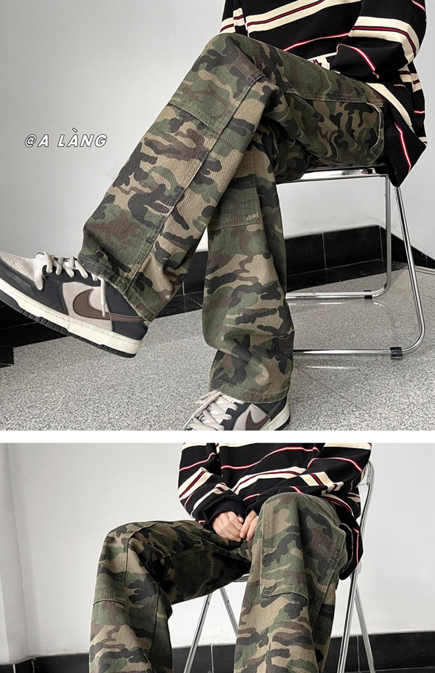 美式復古迷彩褲cleanfit伐木工裝褲直筒修身多口袋vibe褲子微喇叭褲