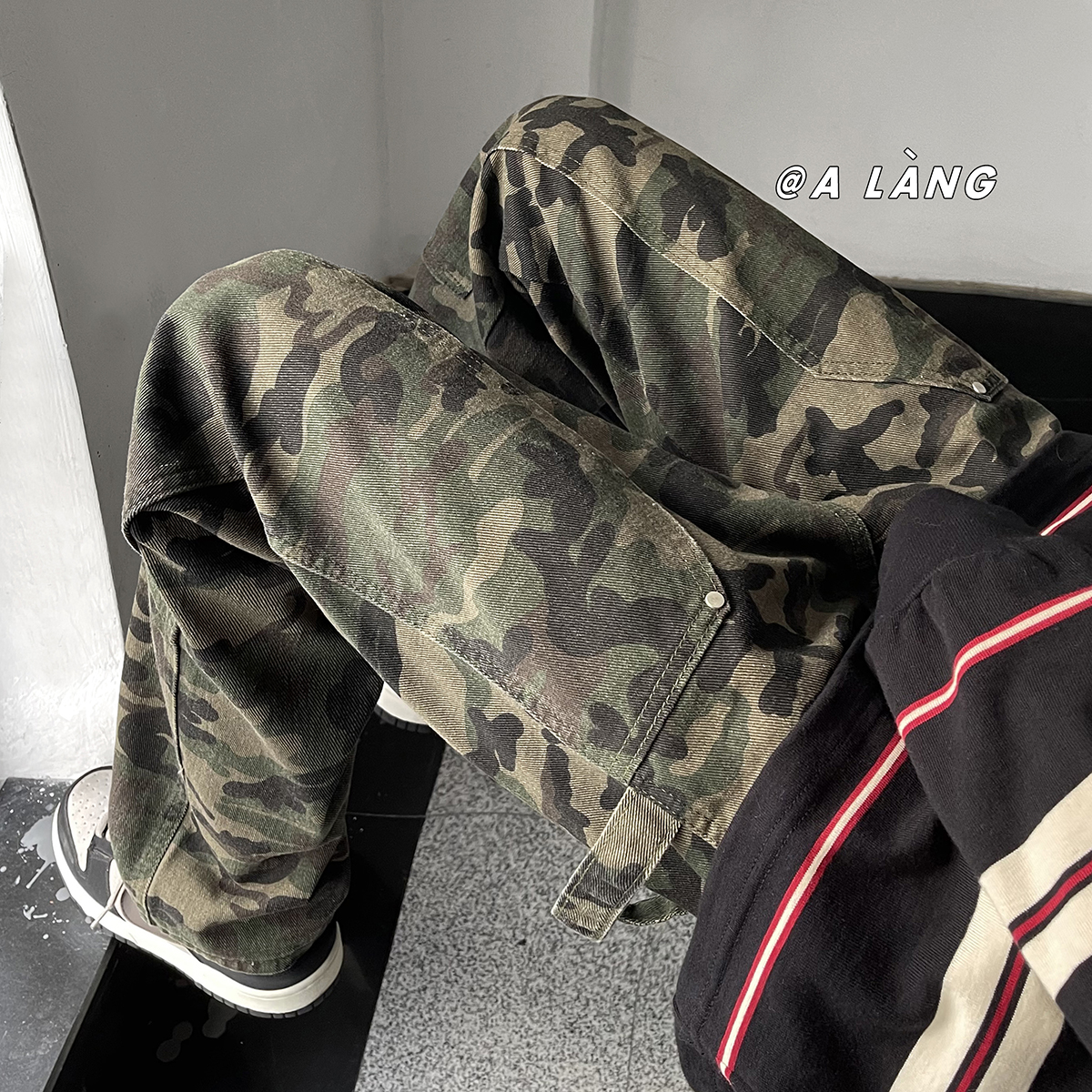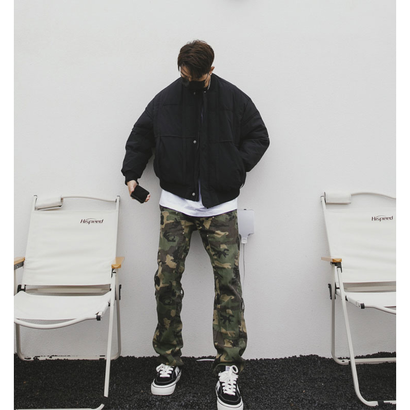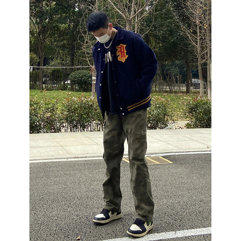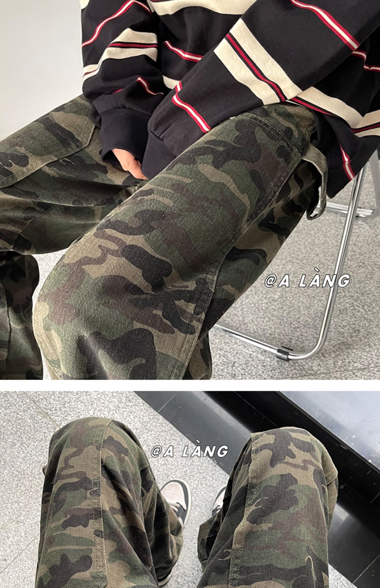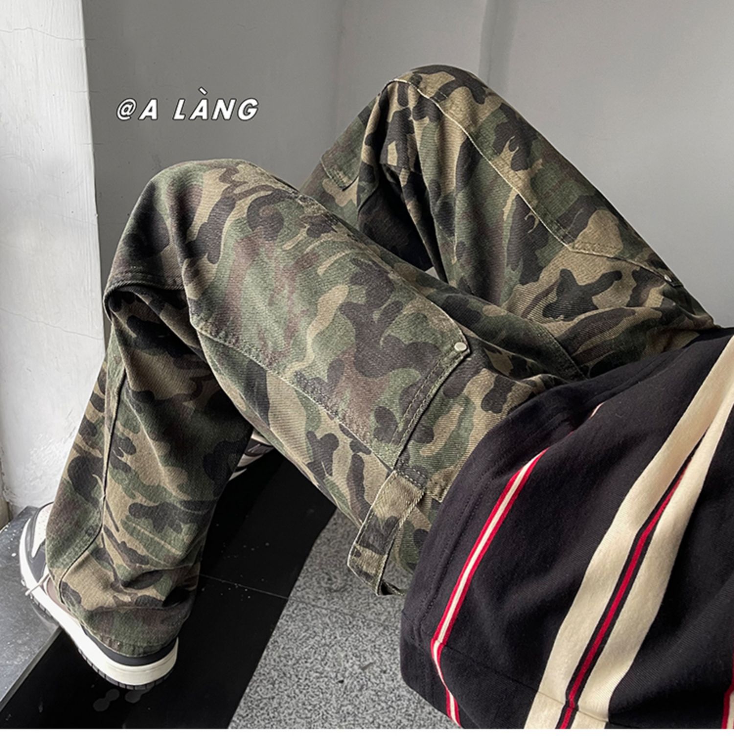 美式復古迷彩褲cleanfit伐木工裝褲直筒修身多口袋vibe褲子微喇叭褲
