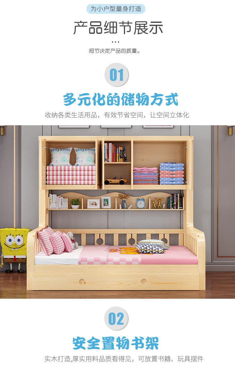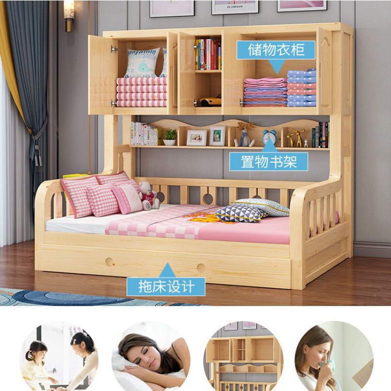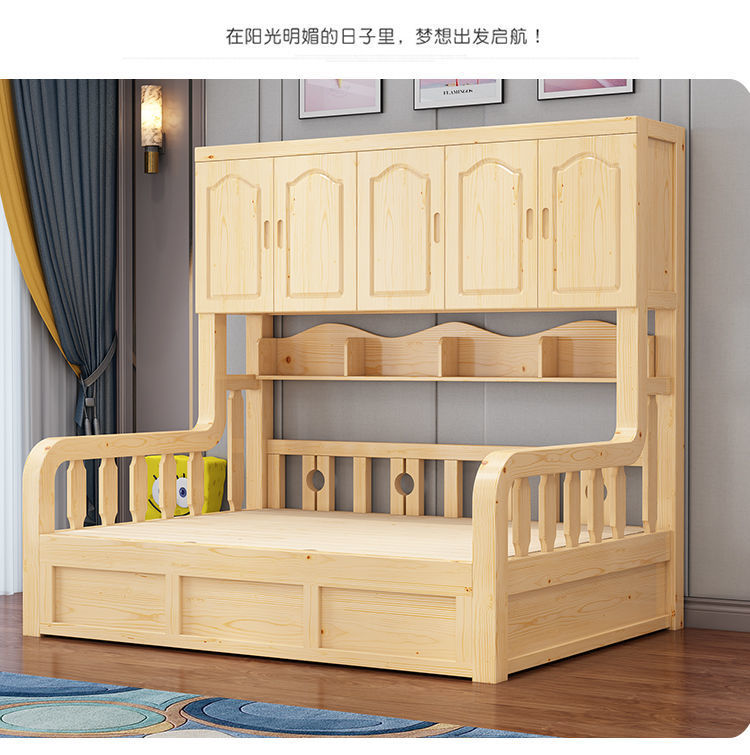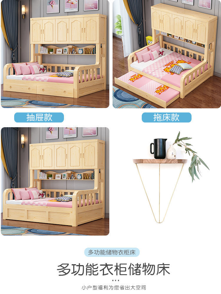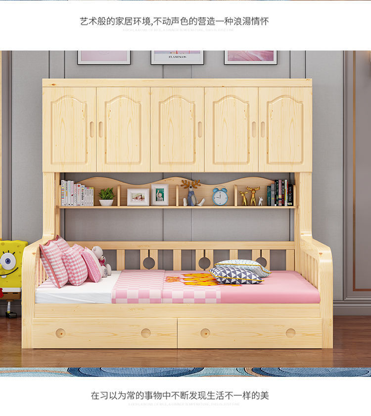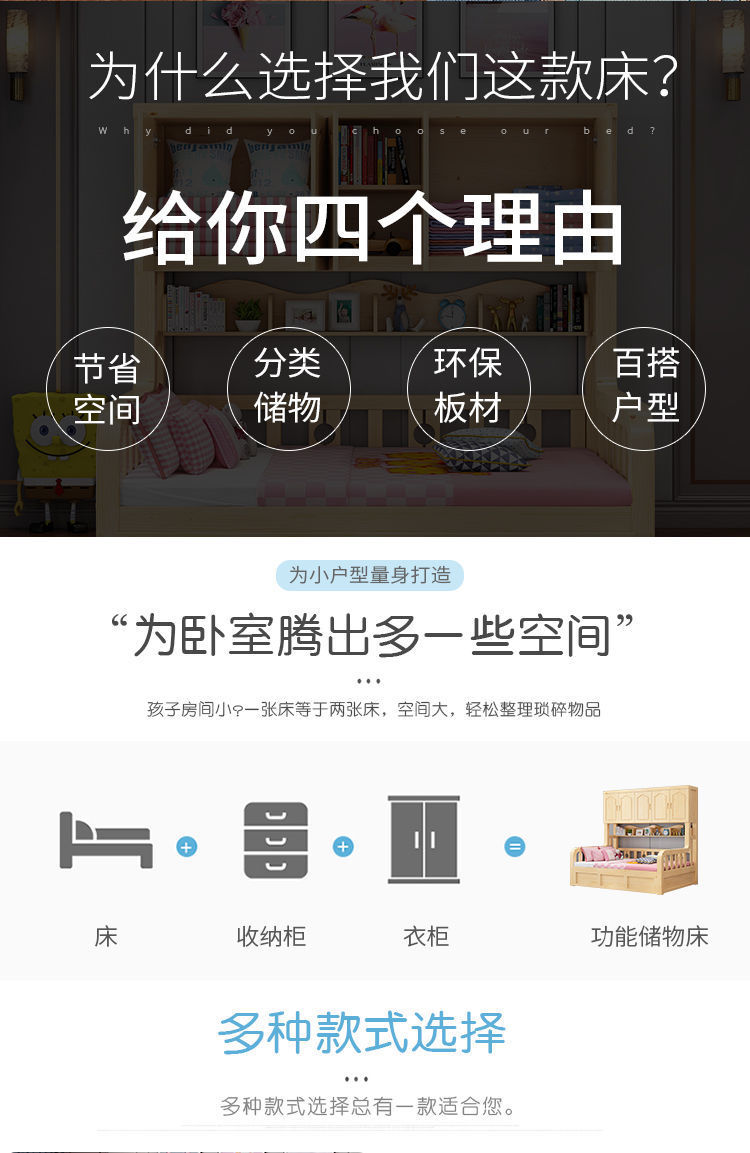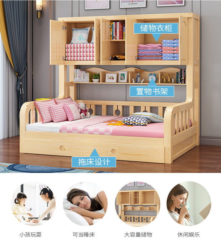 实木衣柜床气压高箱带书架省空间创意多功能组合床柜一体
