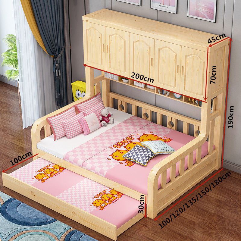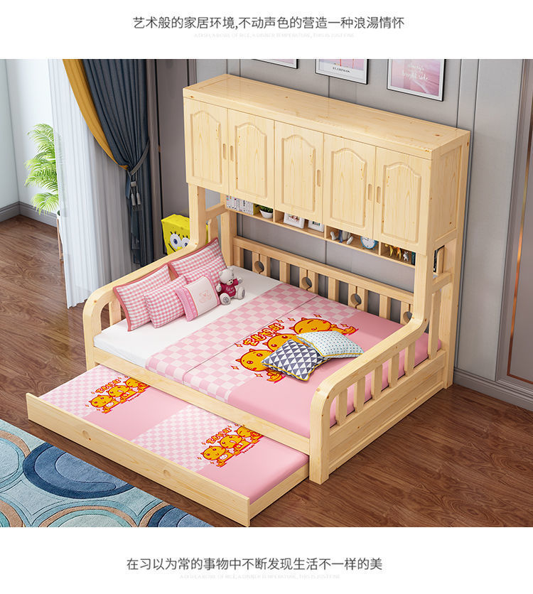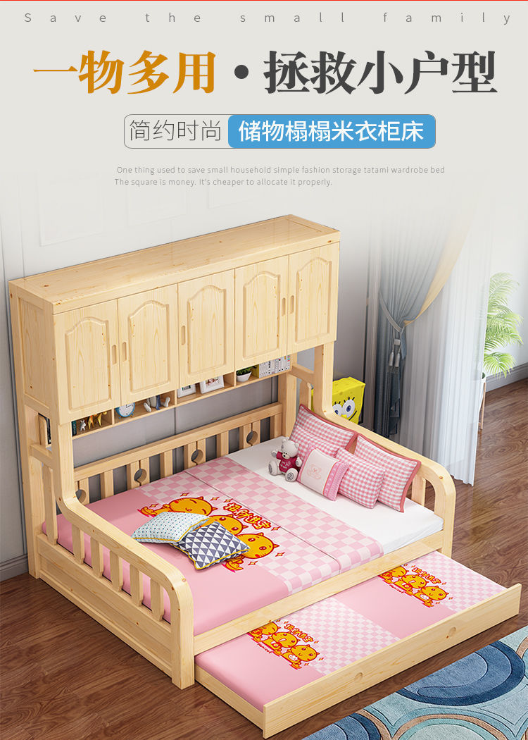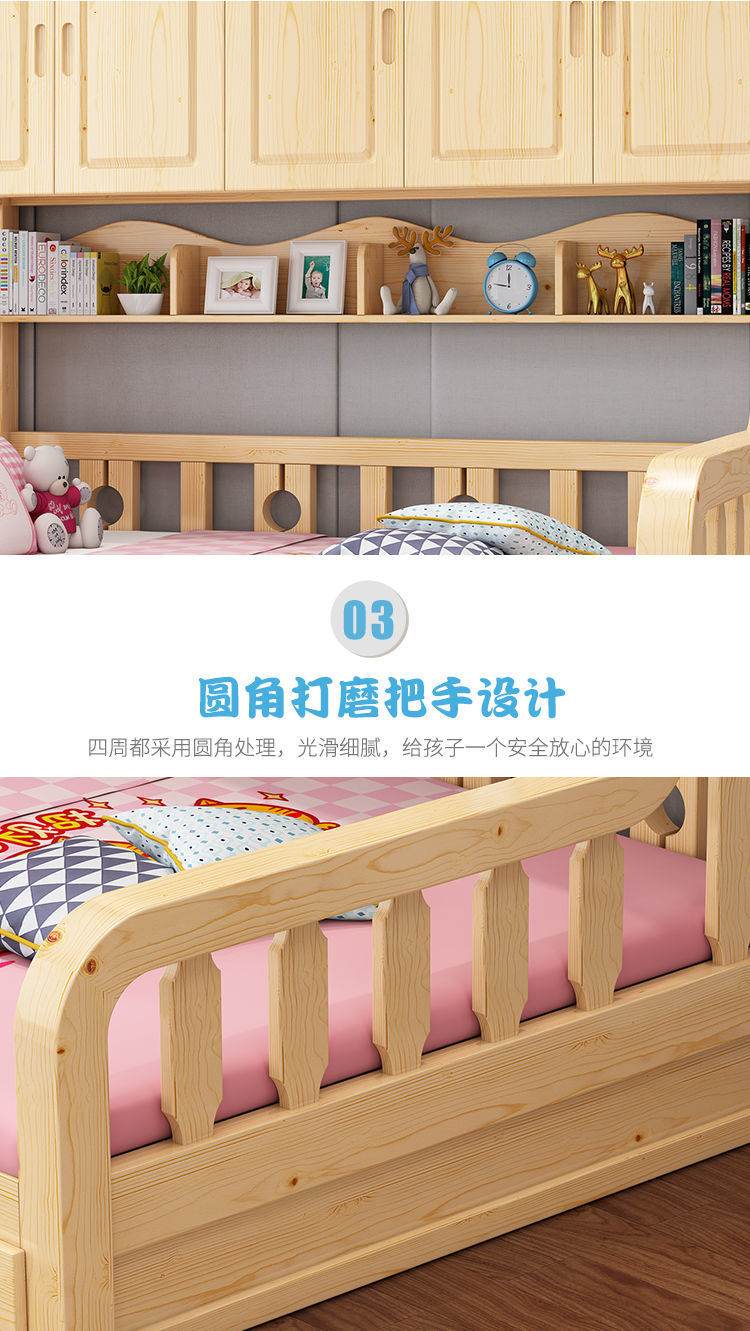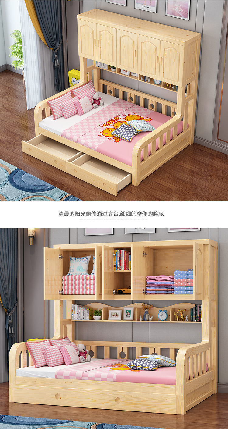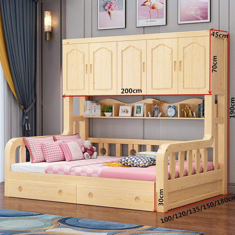 实木衣柜床气压高箱带书架省空间创意多功能组合床柜一体