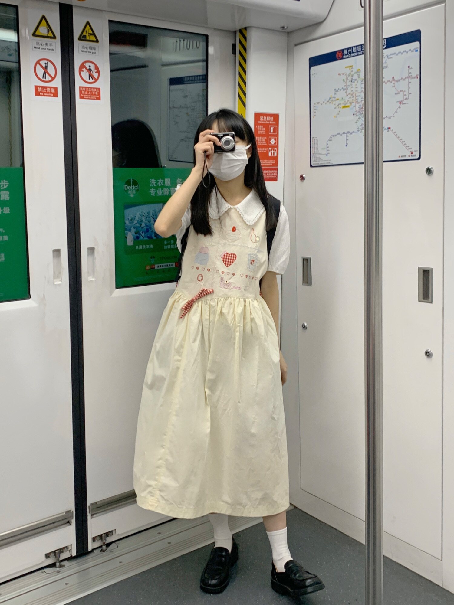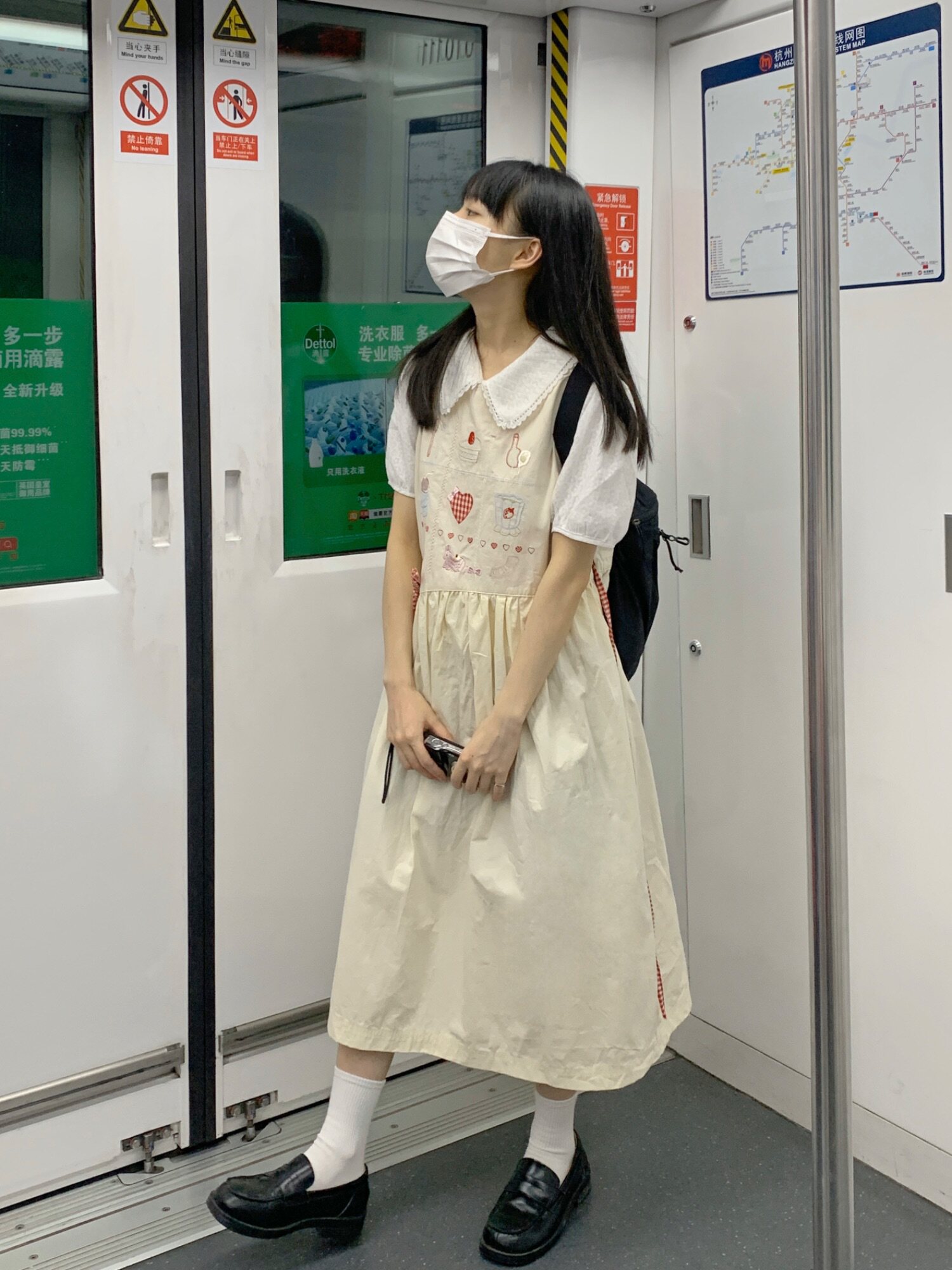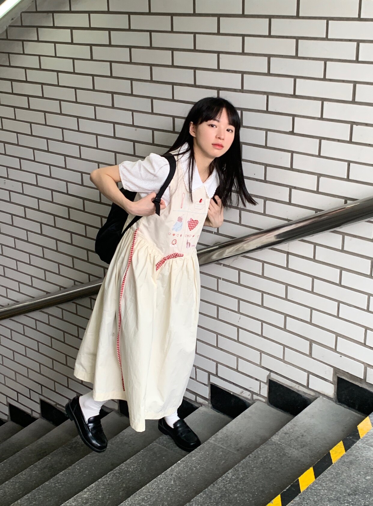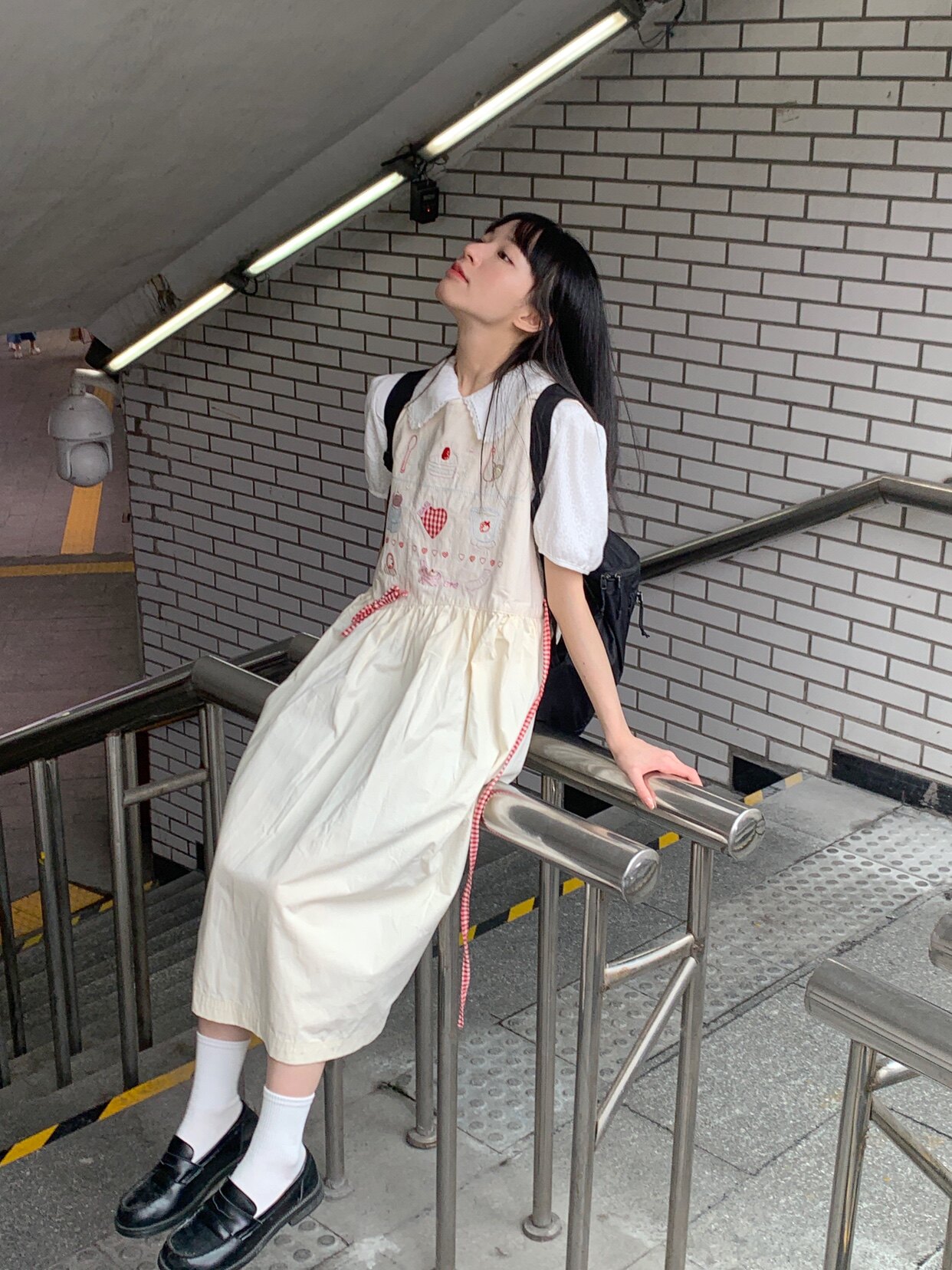 香蕉脫掉了 日系九宮格刺繡洋裝 寬鬆圓領元氣少女無袖背心裙